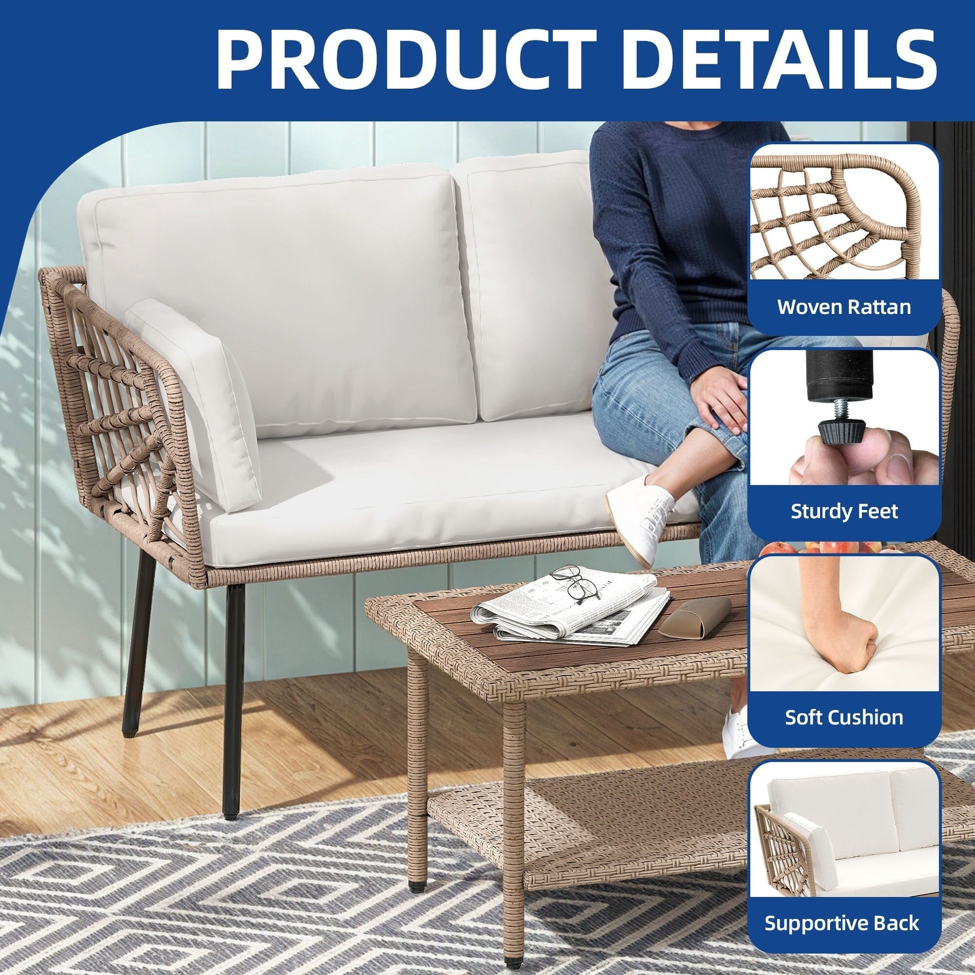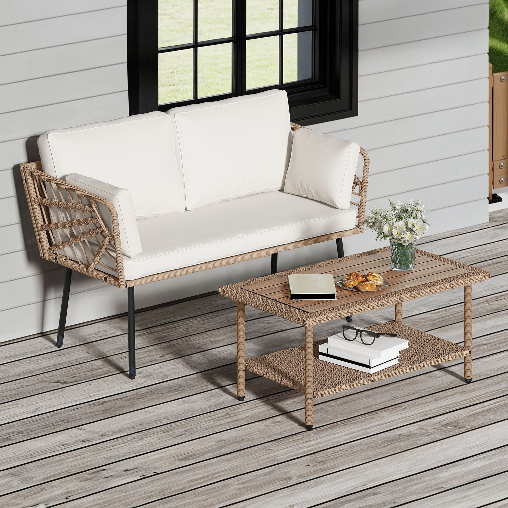 Moasis 2 Pieces Patio Furniture Set,Rattan Wicker Loveseat with Coffee Table