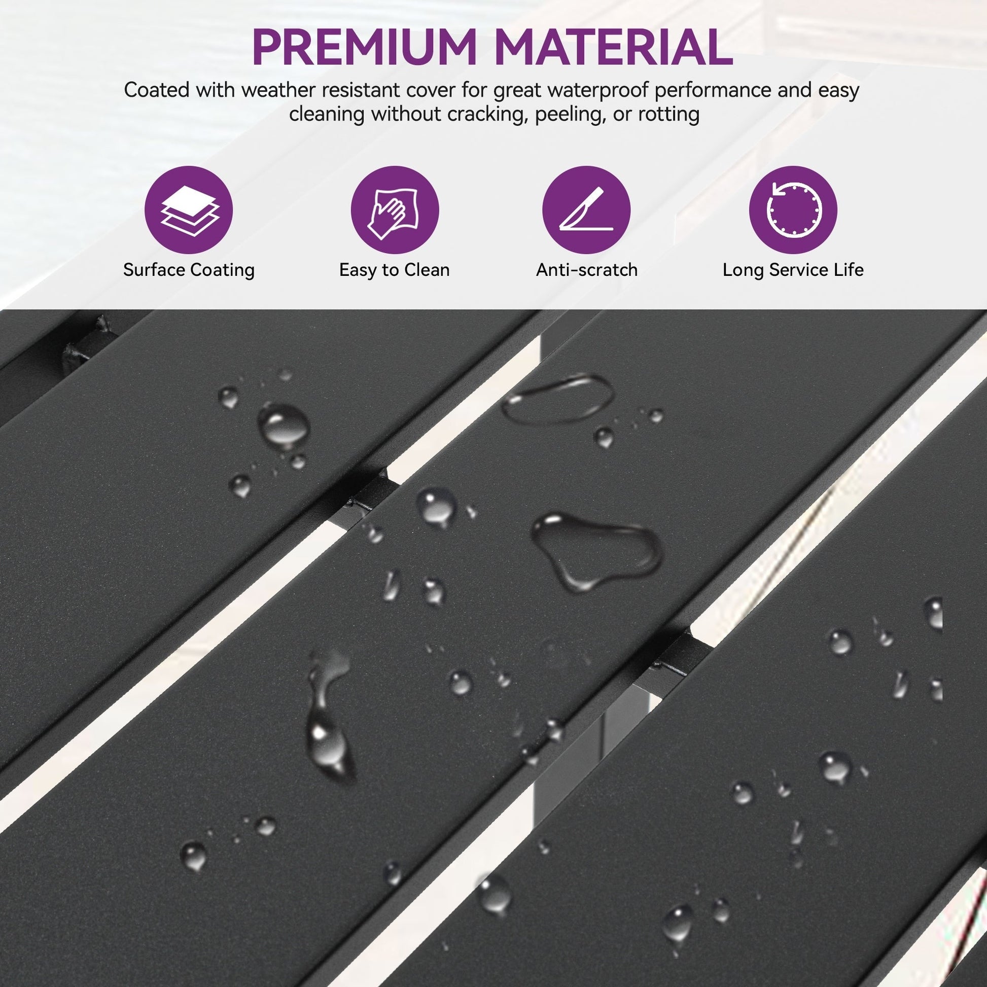- Easy to clean: The tabletop is made of metal slats with a sleek finish, allowing stains to be effortlessly wiped with a cloth.