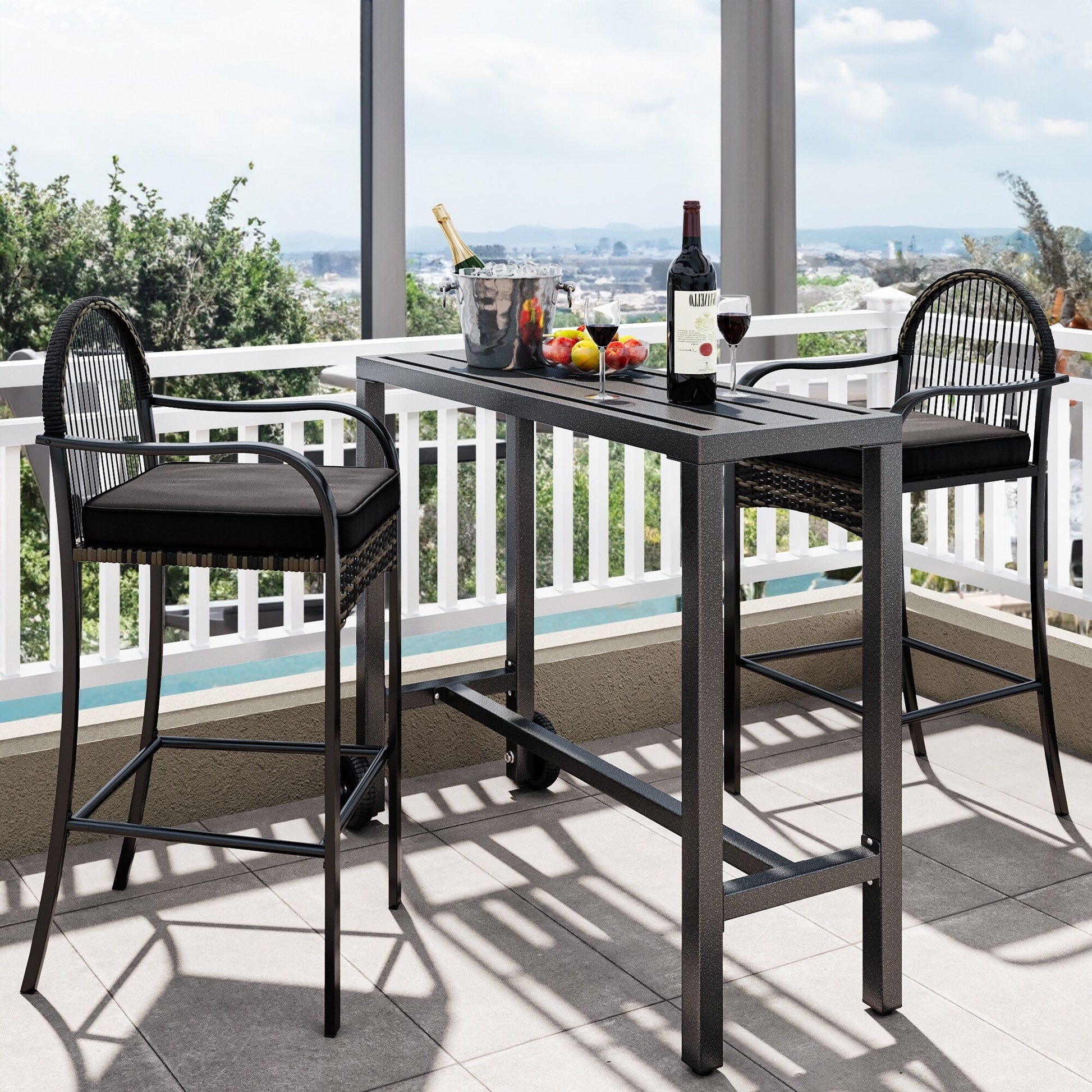 Moasis Patio Metal Counter Table Bar Table with Wheels