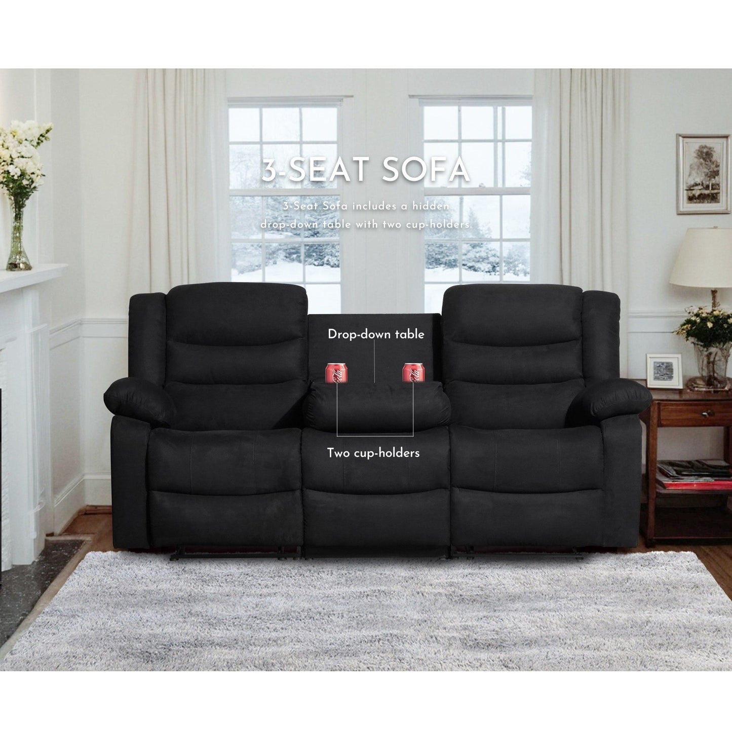 Modern 3-Piece Manual Reclining Living Room Sofa Set with Dropdown Table and Console