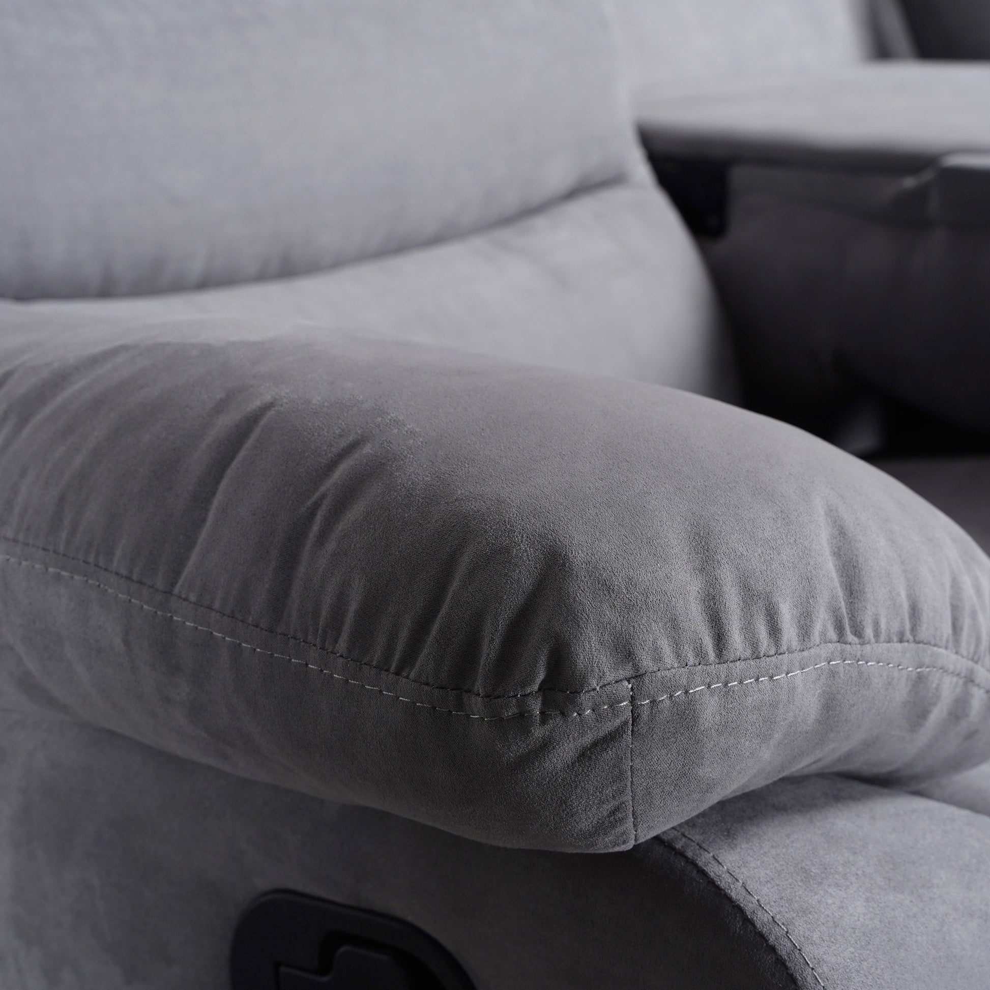 Experience the ultimate indulgence with our manual recliner sofa set, offering exceptional value. This sleek design allows you to unwind and adjust your position for premium relaxation. Crafted with luxurious suede upholstery, the sofa features cozy high-performance cushions filled with supportive innerspring foam. The distinctive stitching adds a touch of elegance to create a space you won't want to leave anytime soon.