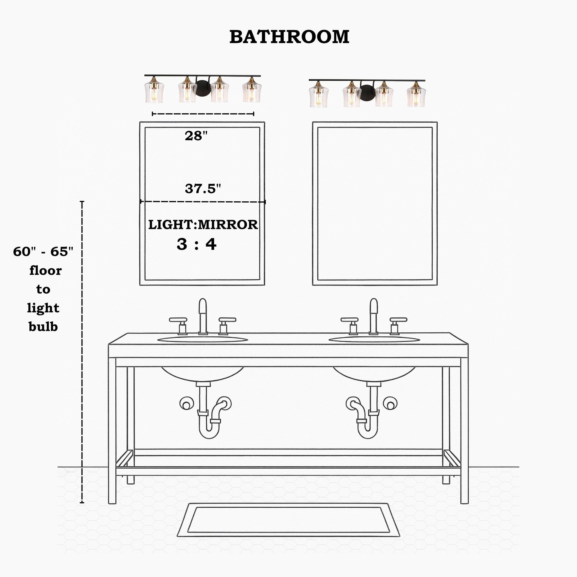 - 4-Light Vanity Light: 28' L x 7' W x 7.5' H