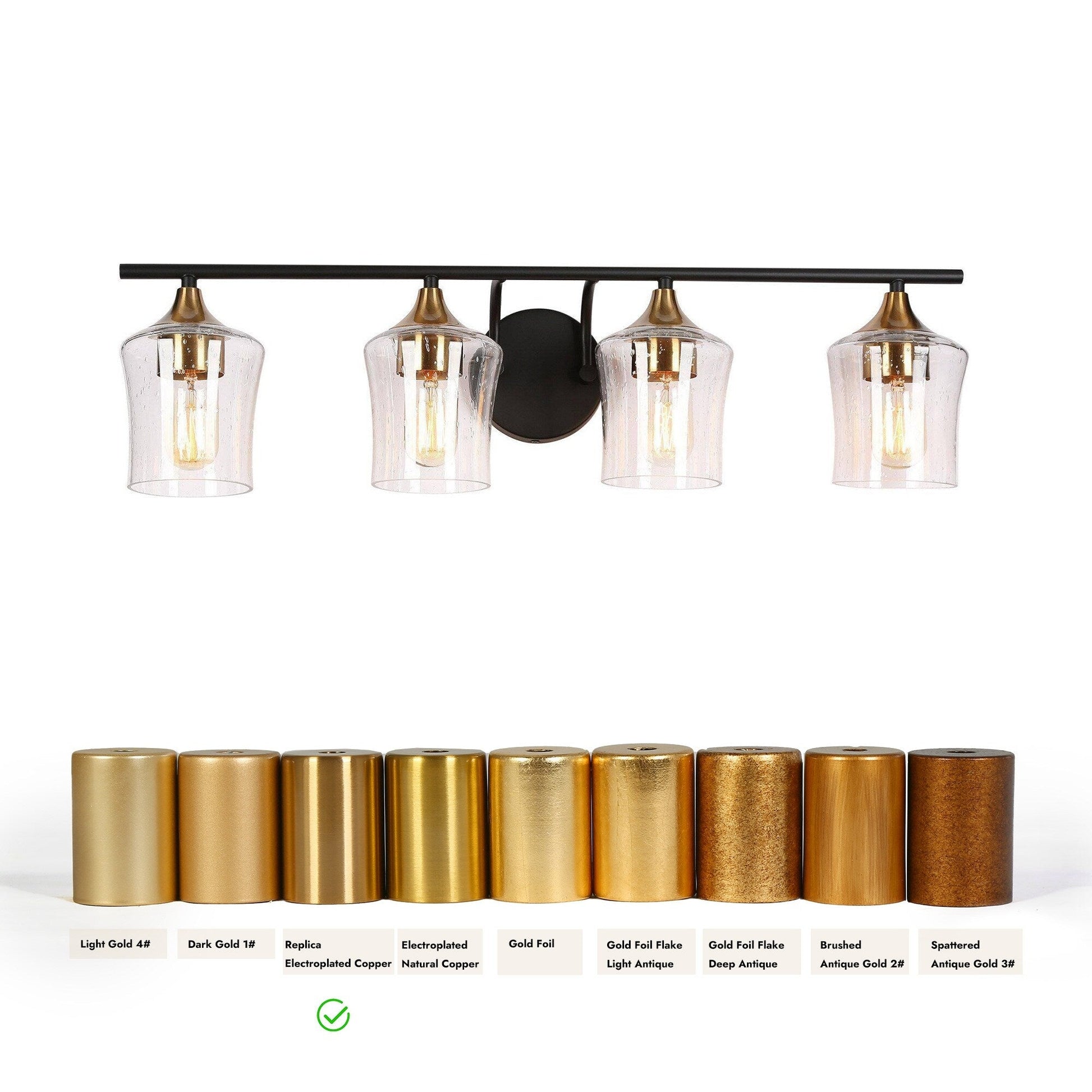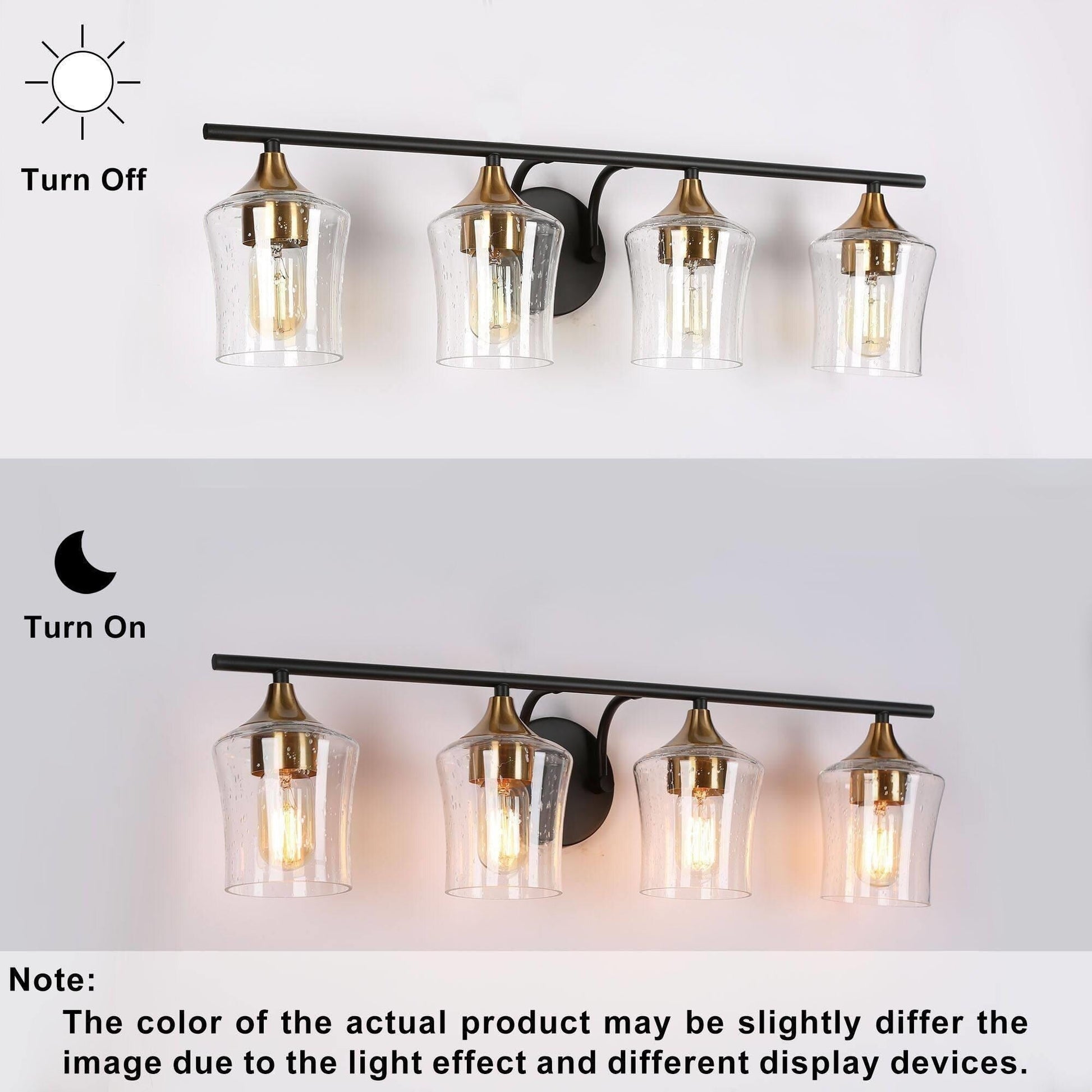 Modern Black Gold 2/3/4-Light Linear Bathroom Vanity Lights with Seeded Glass