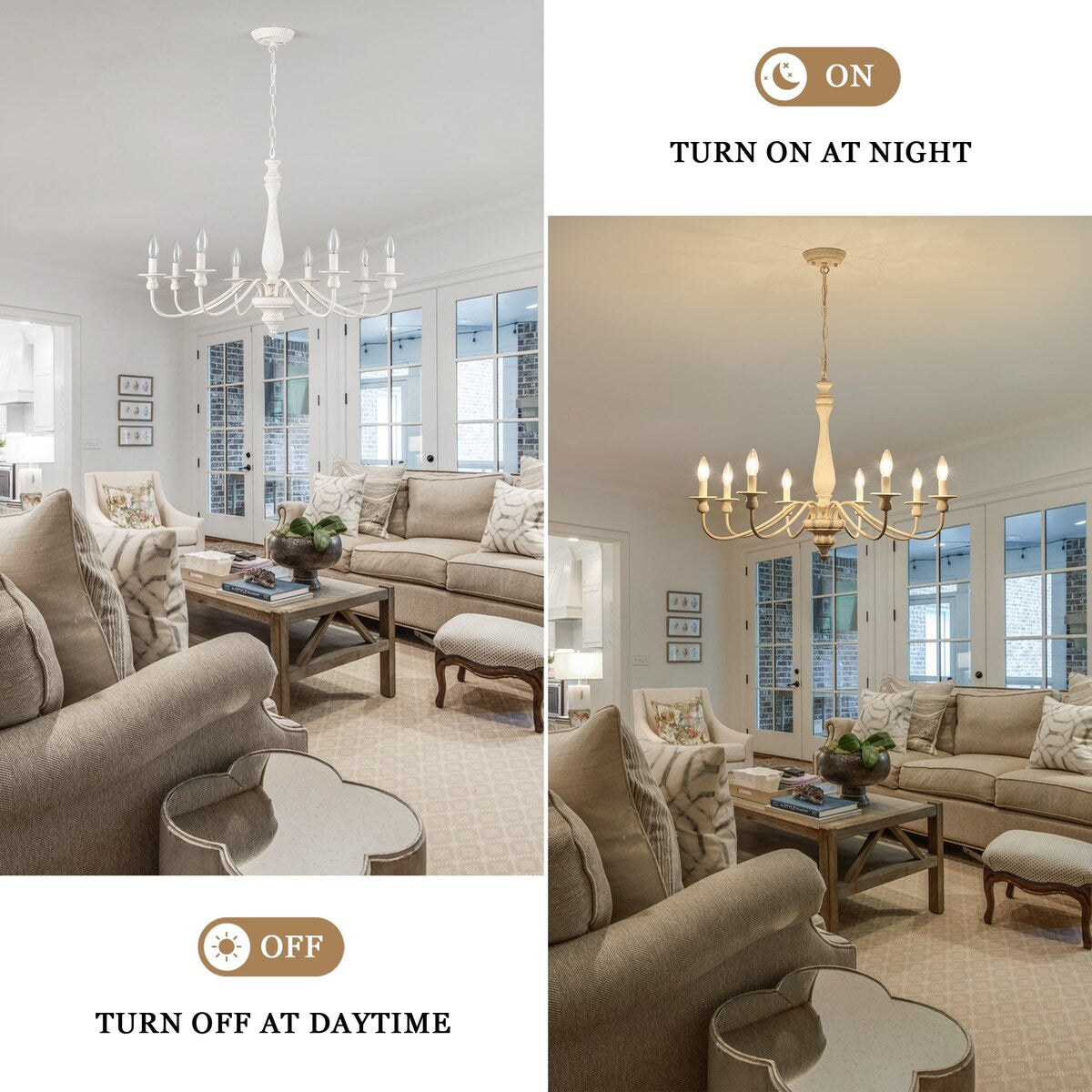 Illuminate your space with timeless charm using this Candle Style Chandelier. Featuring a classic design with eight lights, this fixture blends traditional aesthetics with versatile functionality. Crafted with high-quality metal and wood, it exudes durability and elegance. The adjustable length allows for customized hanging, while smart dimming capabilities provide convenient control over ambiance. Ideal for both residential and non-residential use, this chandelier is a perfect blend of style and practicality. Please note: bulbs are not included.