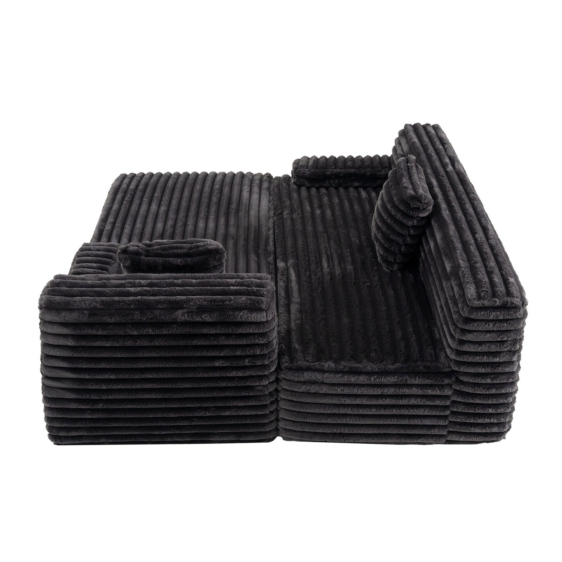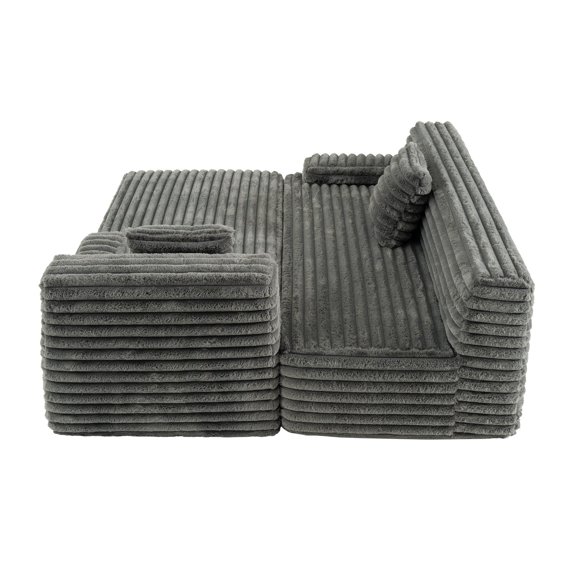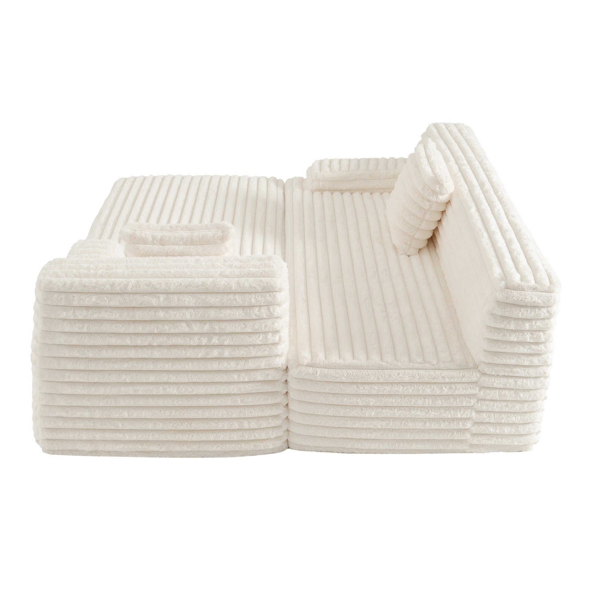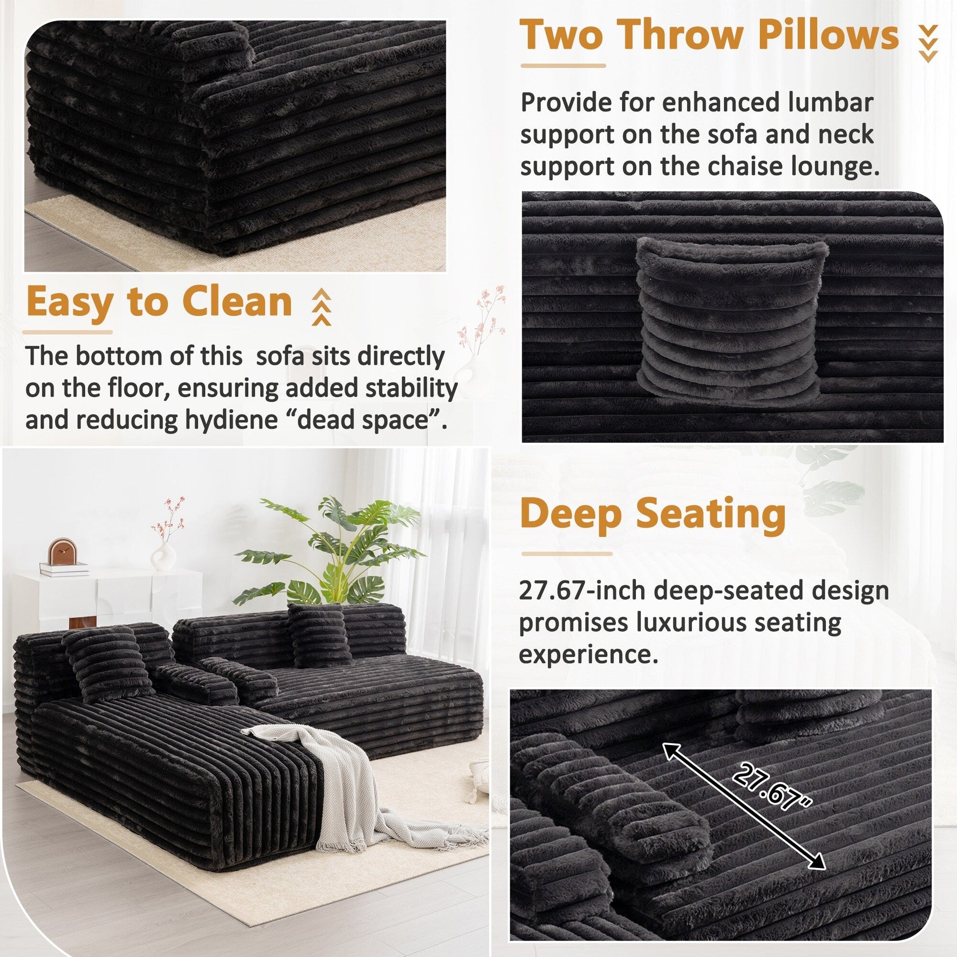 - This modular cloud-style sofa includes two separate pieces for customizable layoutsâL-shape, straight, or bed-like setups. Upholstered in ultra-soft faux rabbit fur and paired with removable pillows, it offers plush comfort, easy cleaning, and adaptability for any room or occasion.
