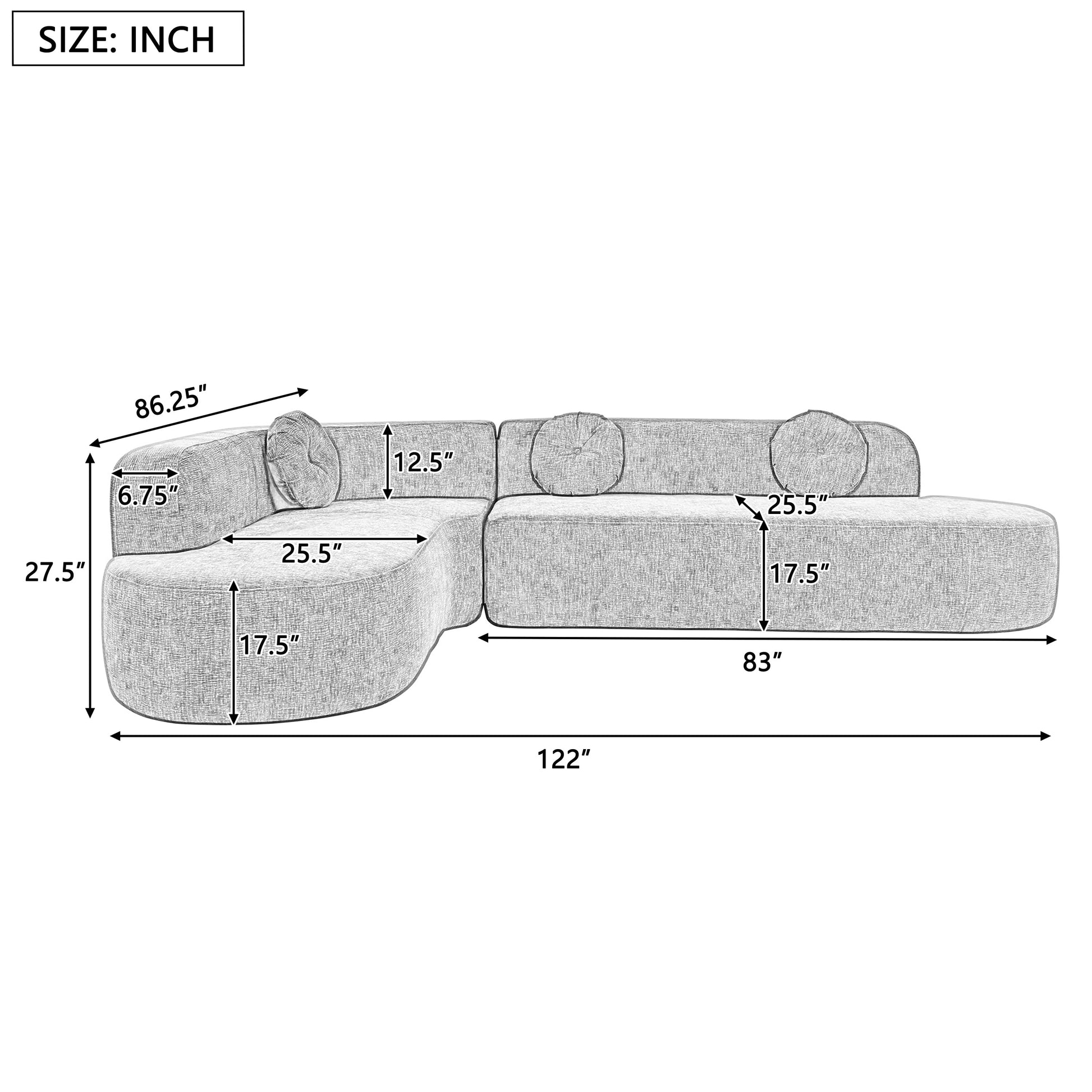 Modern Oversized Curved 4-Seater Sectional Sofa with 3 Round Pillows for Living Room