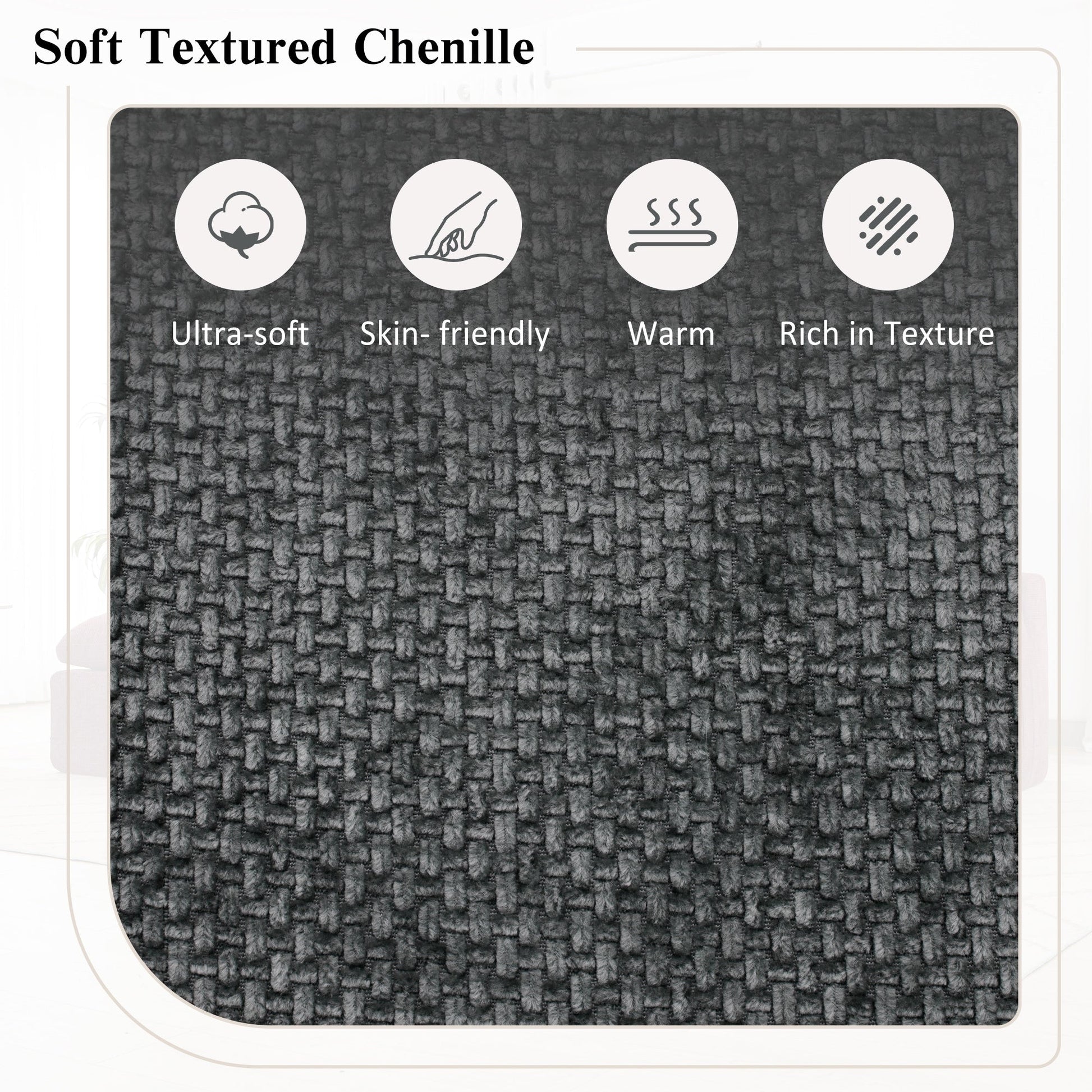 - Chenille Upholstery: Soft, durable fabric with subtle sheen and textured feel.