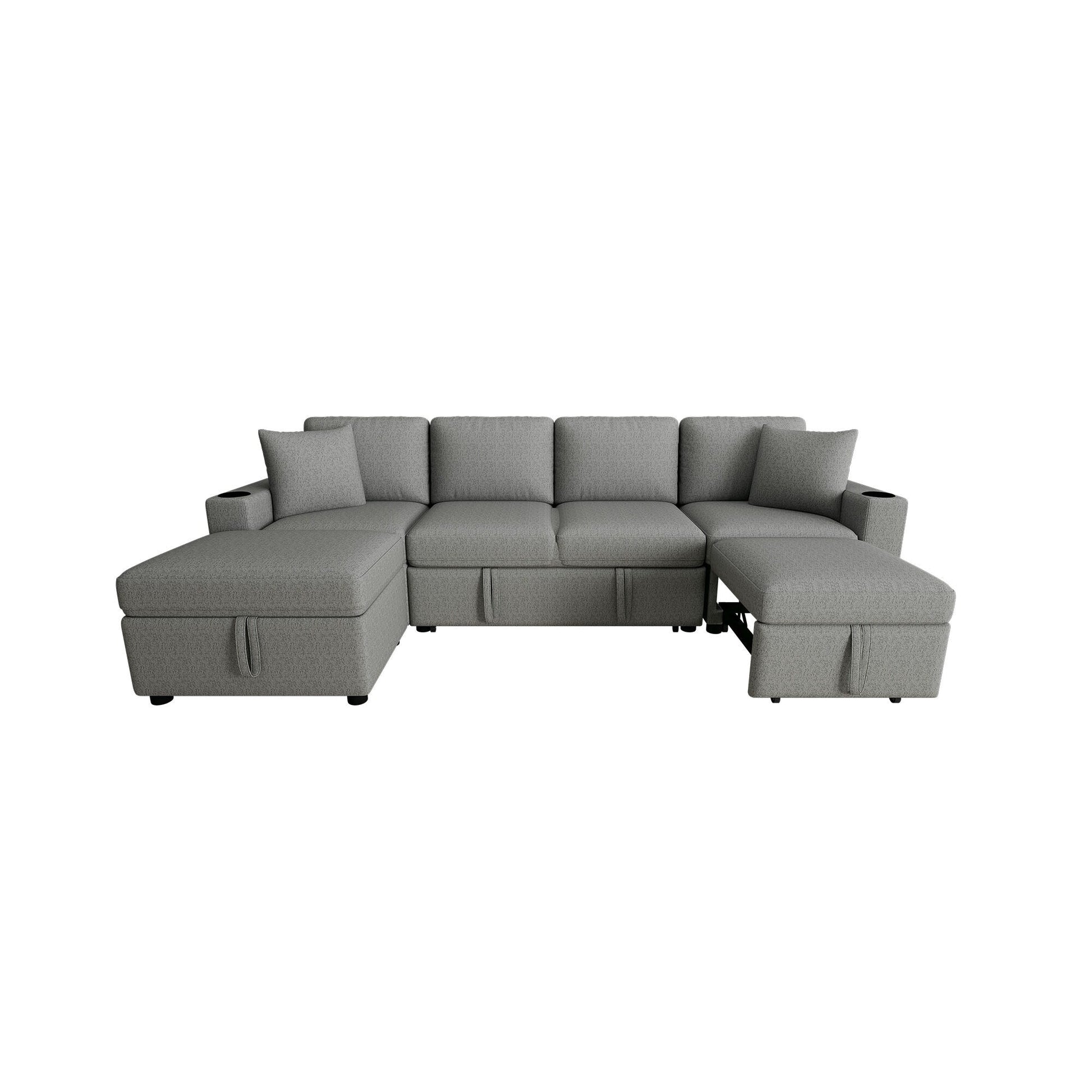 - This modular pull-out sofa combines flexible seating, a convertible sleeper, and hidden storage in one streamlined design. Featuring built-in USB ports, dual cup holders, and plush chenille upholstery, it offers adaptable comfort for modern living spaces.