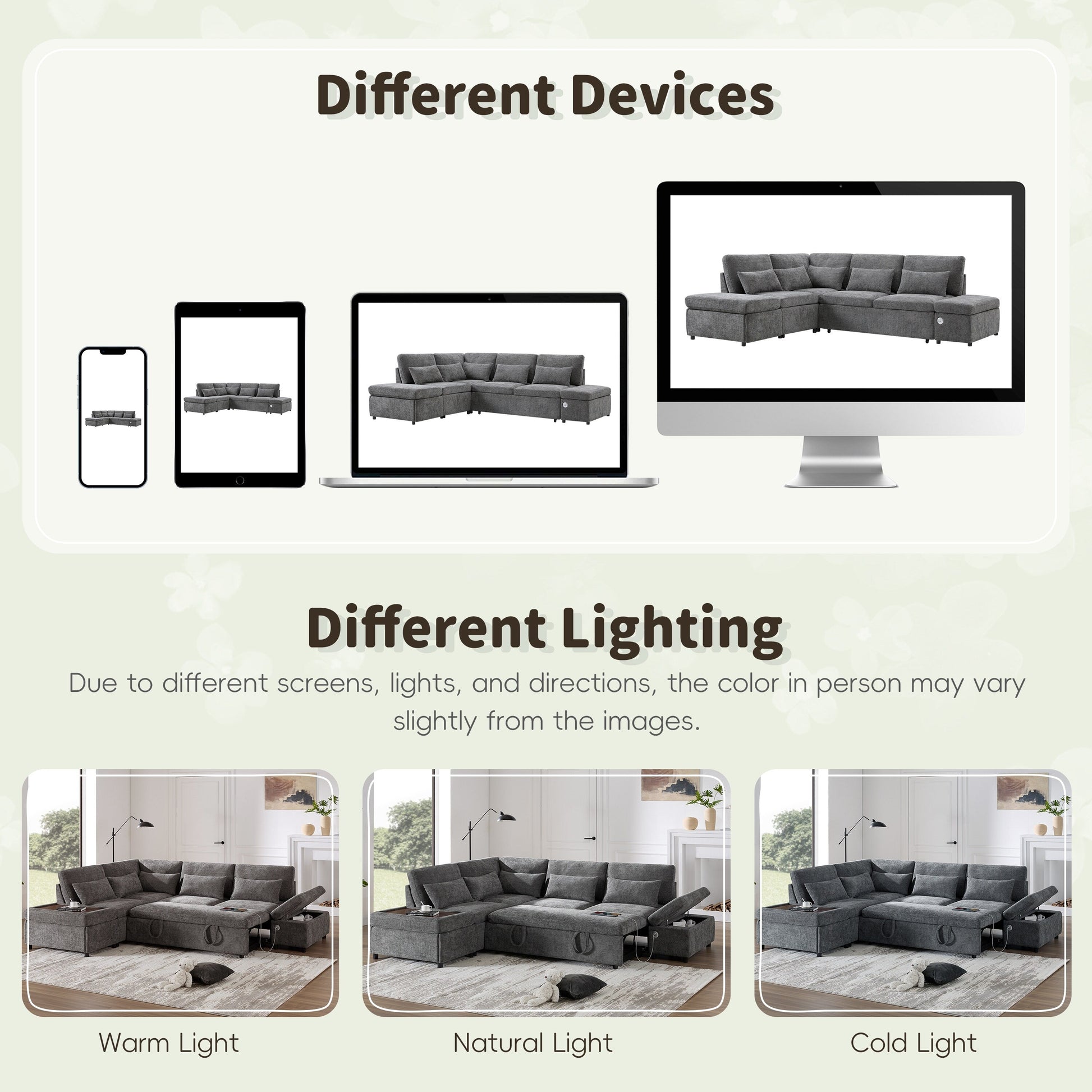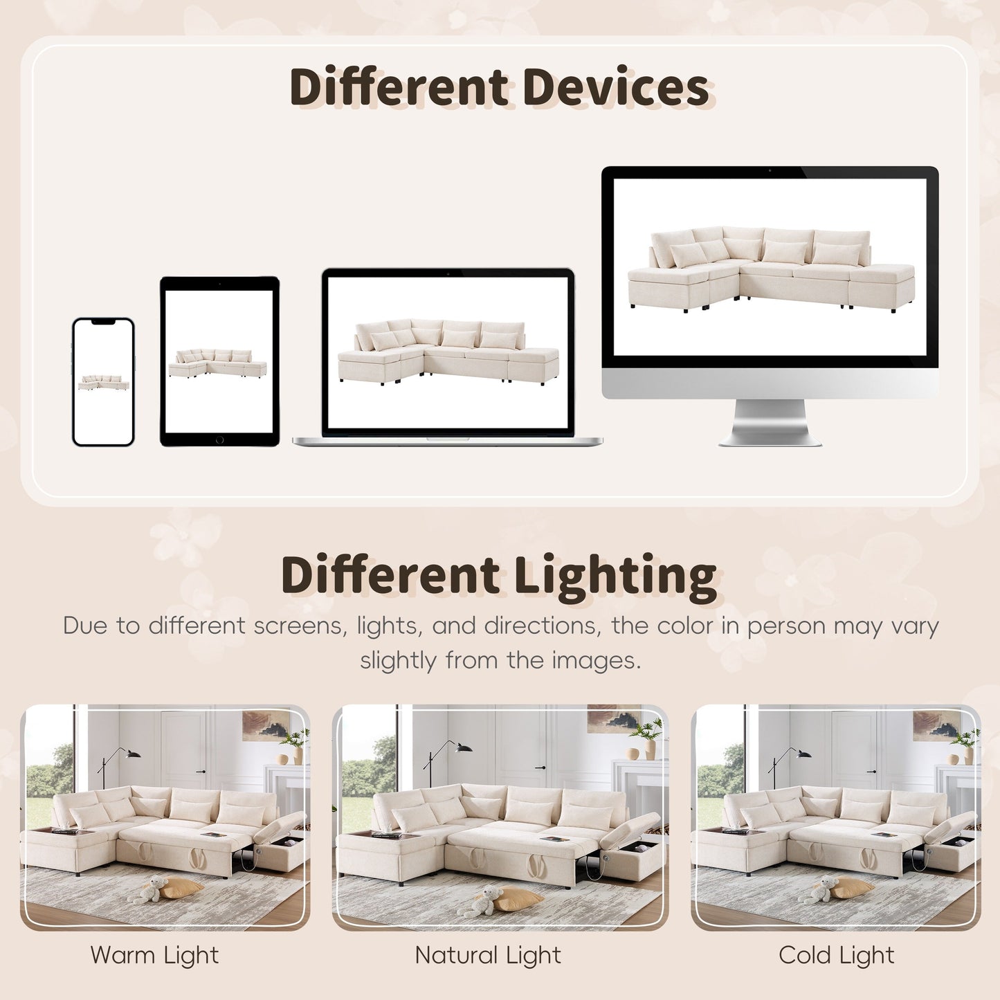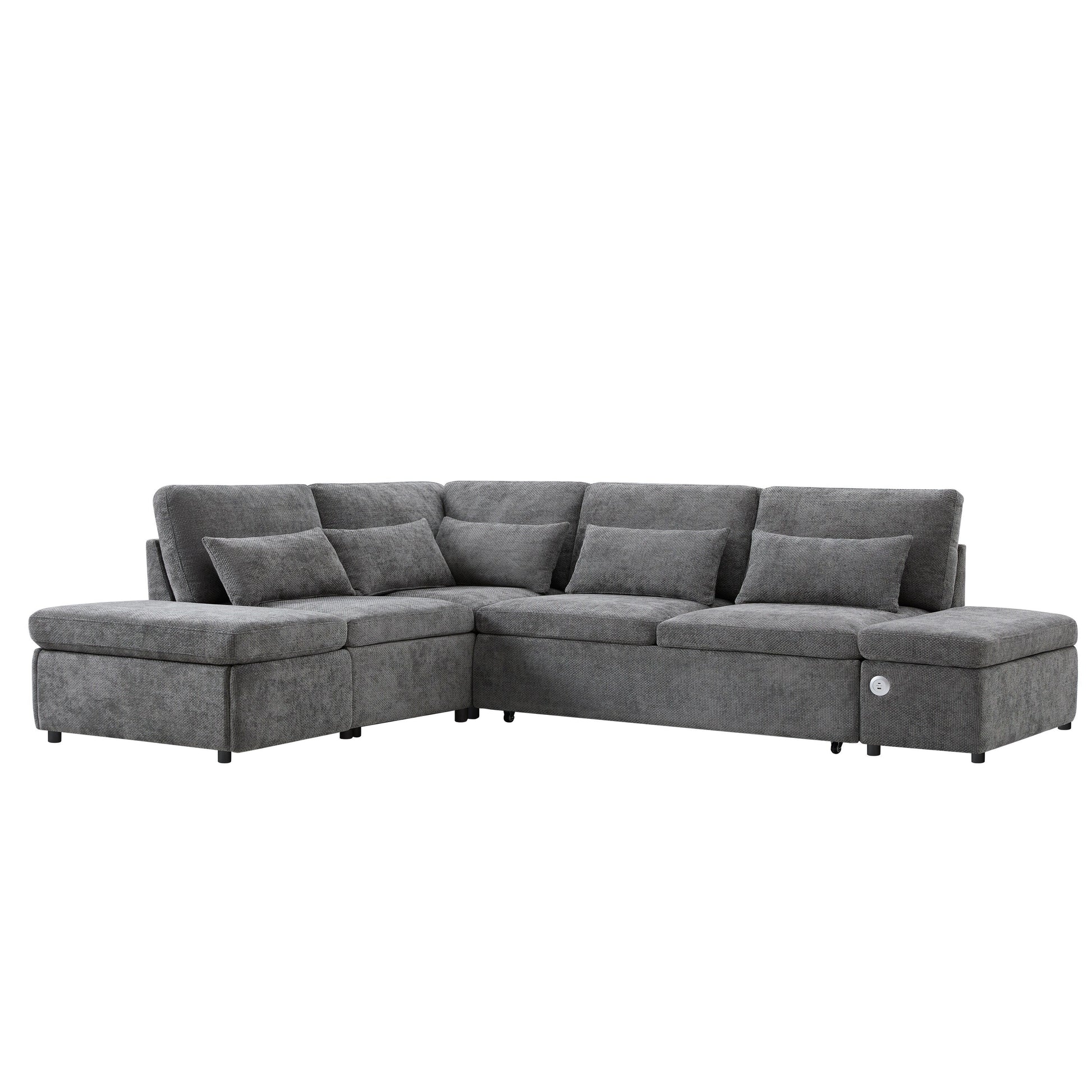 Modular Pull-Out Sectional Sofa Bed with Adjustable Charging Armrest and Storage Ottoman for Living Room Apartment