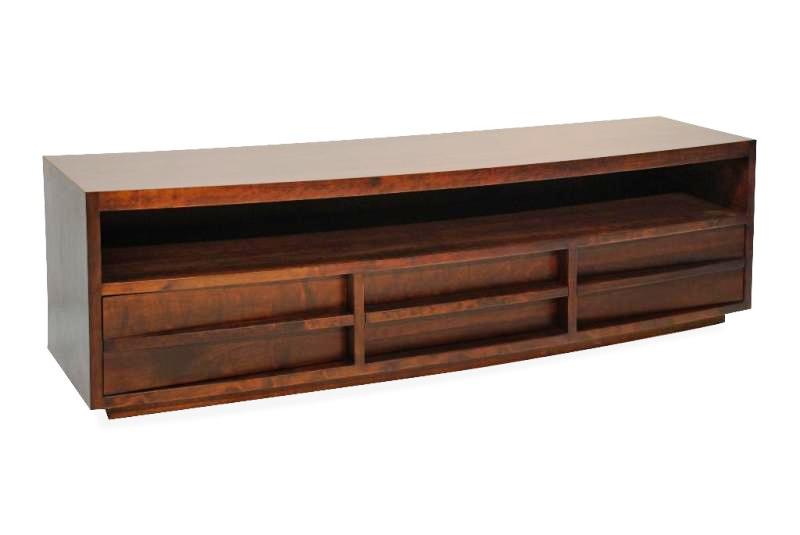 Le meuble TV Moon est le meuble idéal pour un salon contemporain. Sa forme arrondie et sa finition chaleureuse en noyer foncé se fondent dans tous les intérieurs. Ce meuble TV dispose d'un espace ouvert pour décodeurs et de trois tiroirs.
