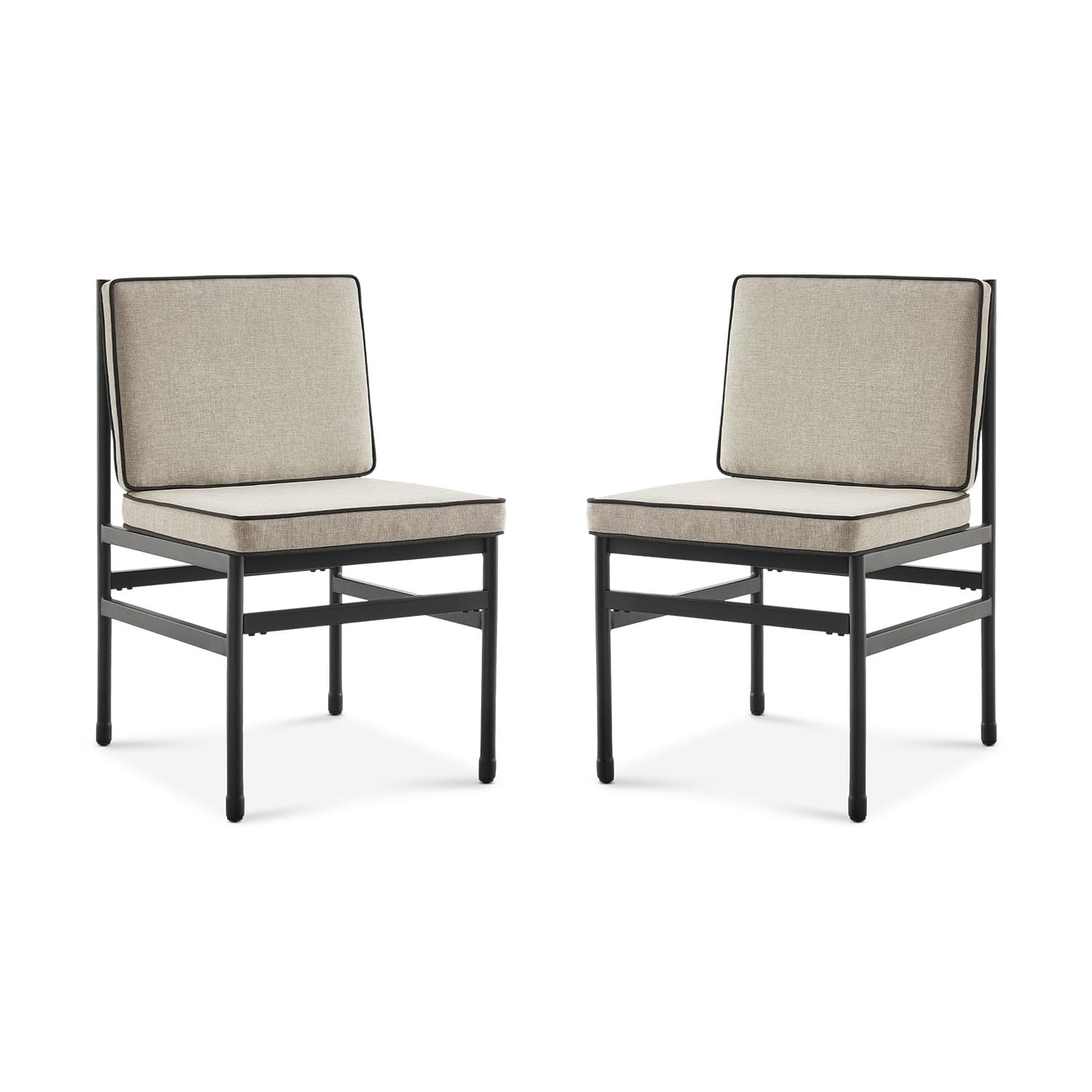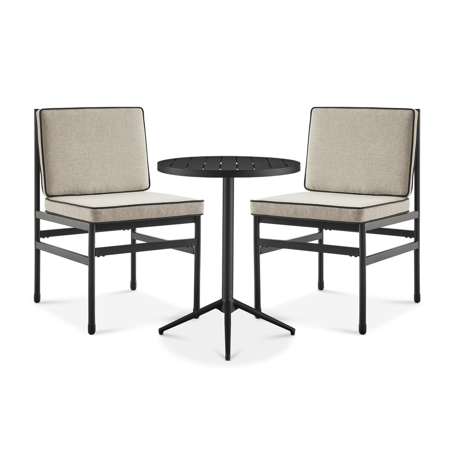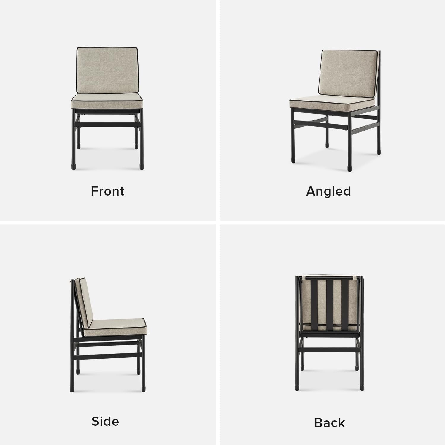 Get Summer ready and bask in the sun in style with the Odelia Patio Outdoor Set. Inspired by the charm of the French countryside and neoclassical style, this set features eye-catching contrast piping upholstery set against a sophisticated dark steel frame adorned with sleek lines, elegant curves and accented with gold knobs. Crafted for maximum comfort, the set boasts plush, high-quality foam seats and is designed to withstand all weather conditions with its rust-resistant steel frame and removable spill and stain resistant upholstery covers, ensuring durability beyond just the summer season. Rigorously tested with BIFMA certification and engineered with PFAS free material for safety and durability. The complete 4-piece set includes a loveseat, two armchairs, and a coffee table, perfect for hosting summer gatherings, or mix and match the armchairs with a table or the loveseat with a table for a cozy setup in smaller outdoor spaces.?