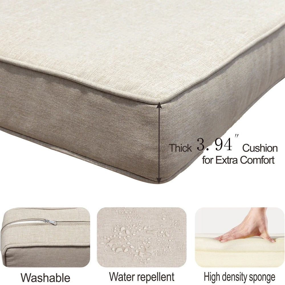 - Seat cushion:22.64 inches wide x 21.65 inches deep x 3.94 inches thick