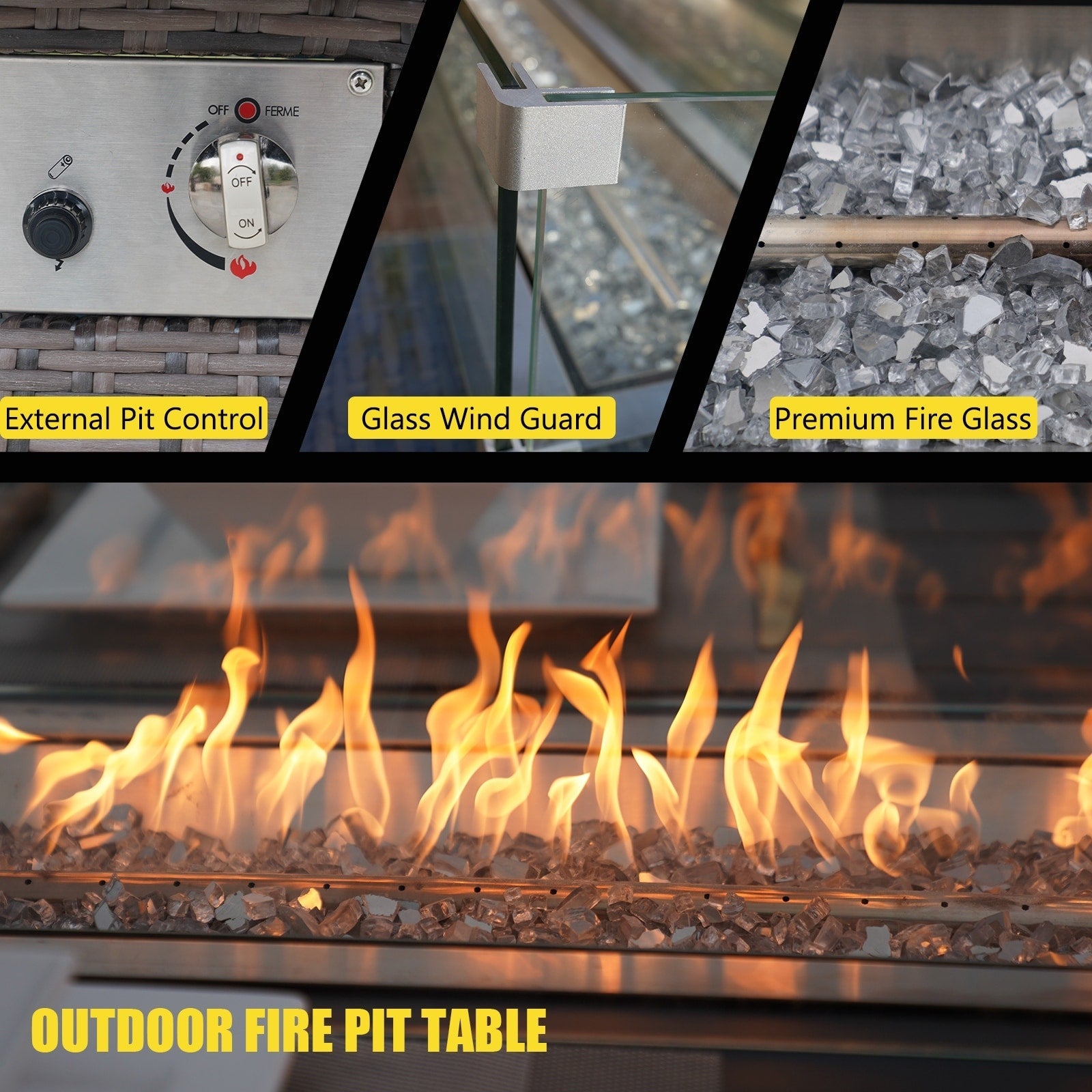 - Firepit table with tempered glass