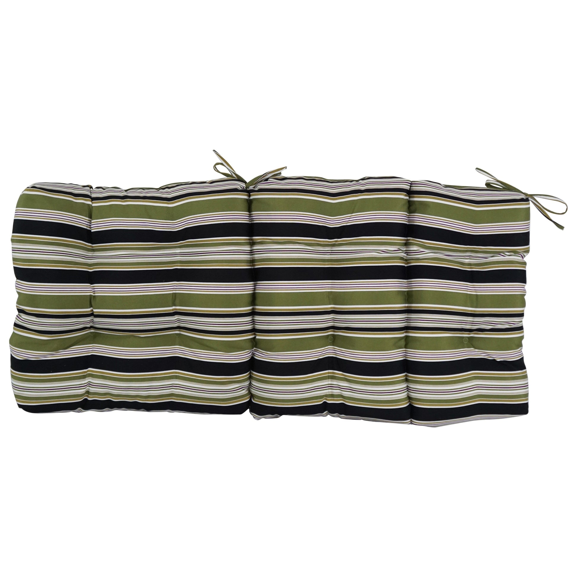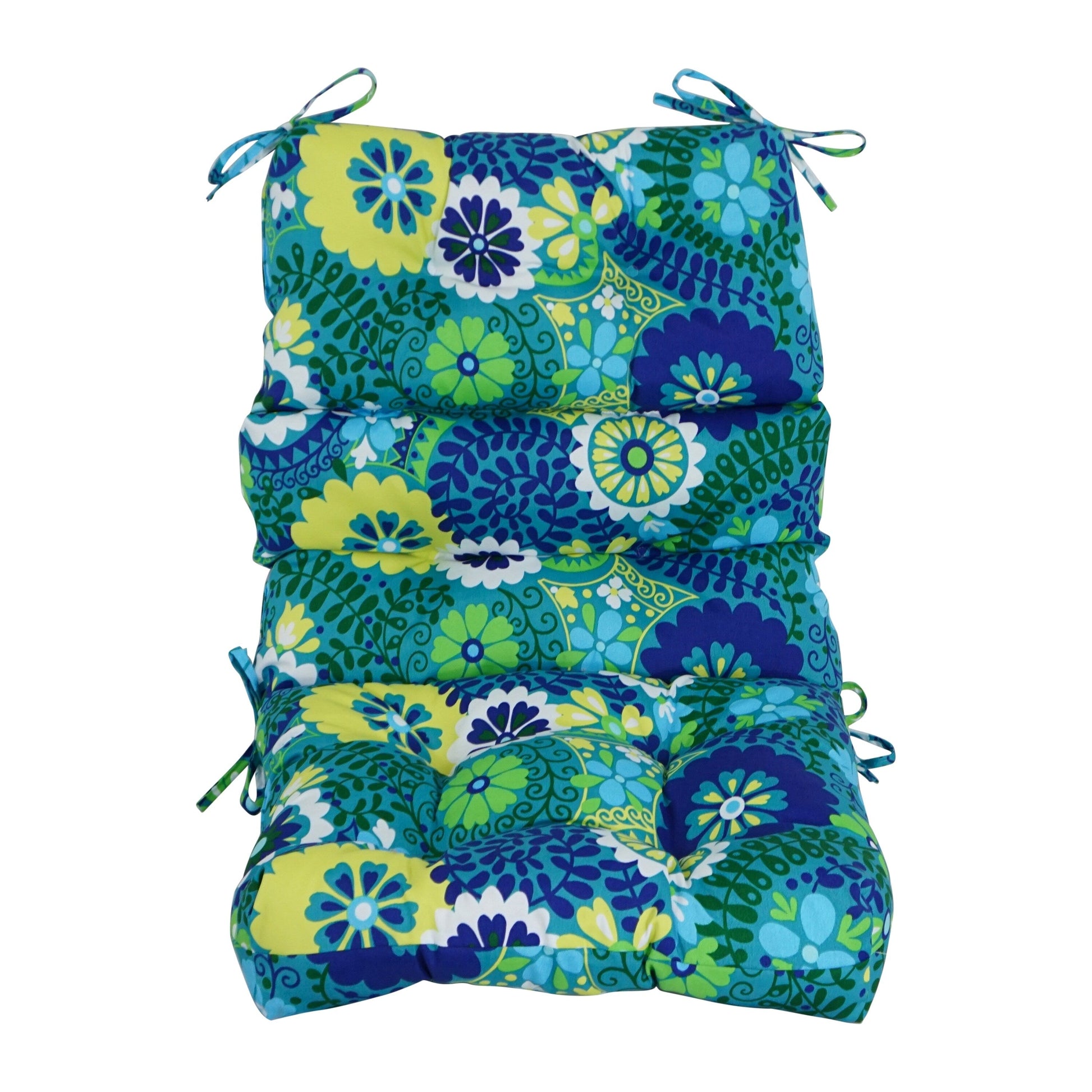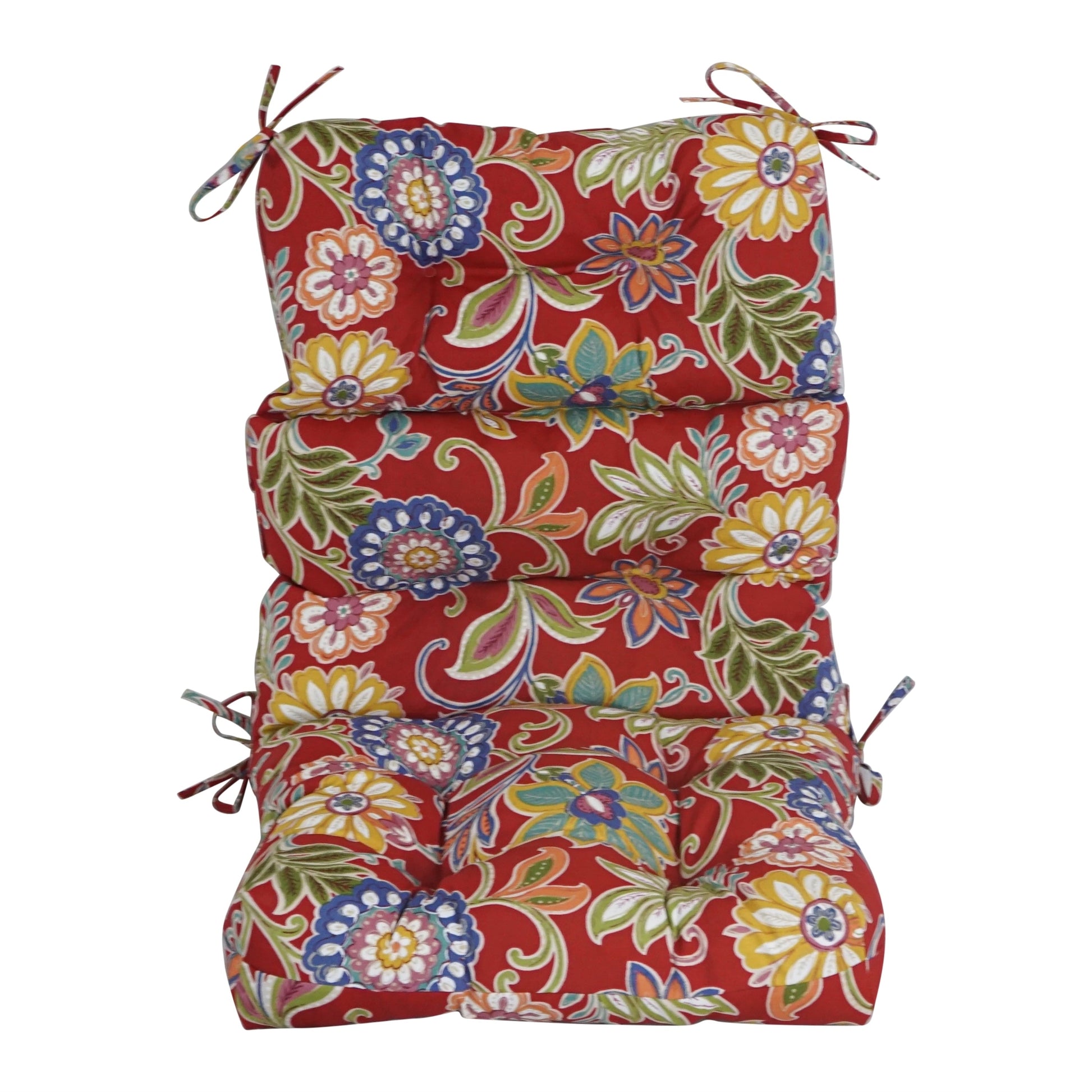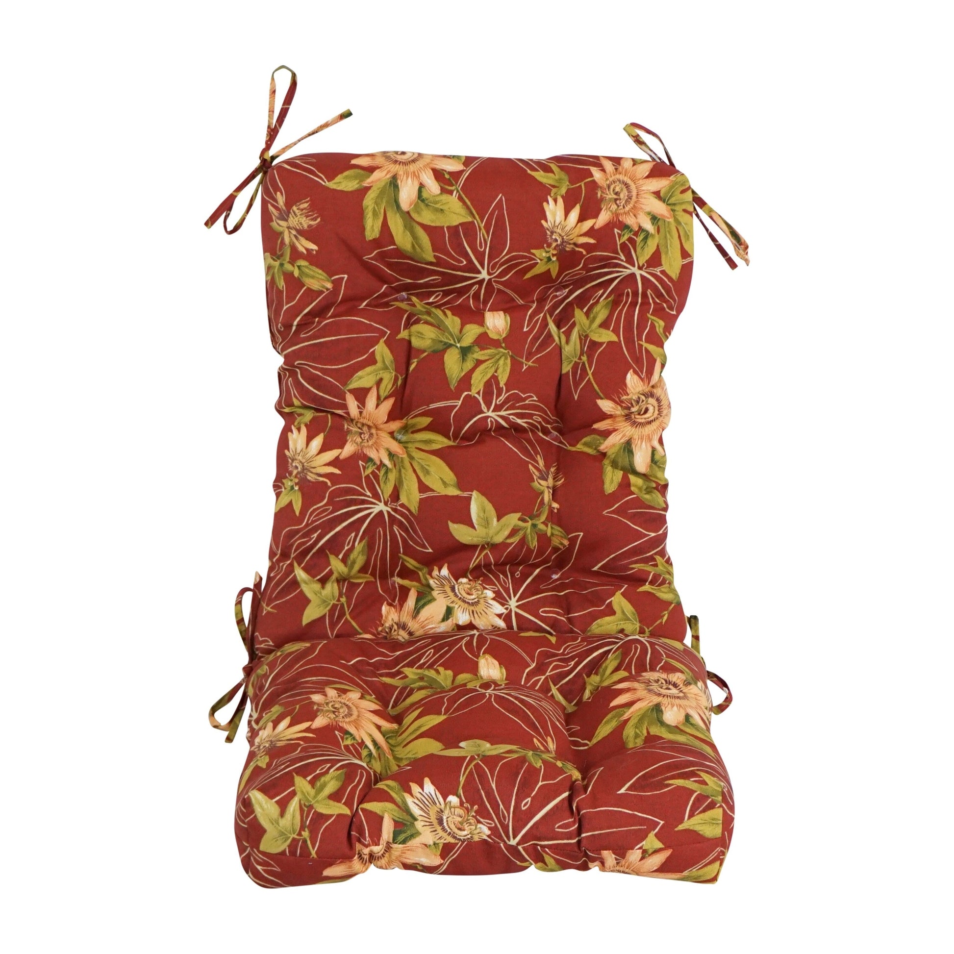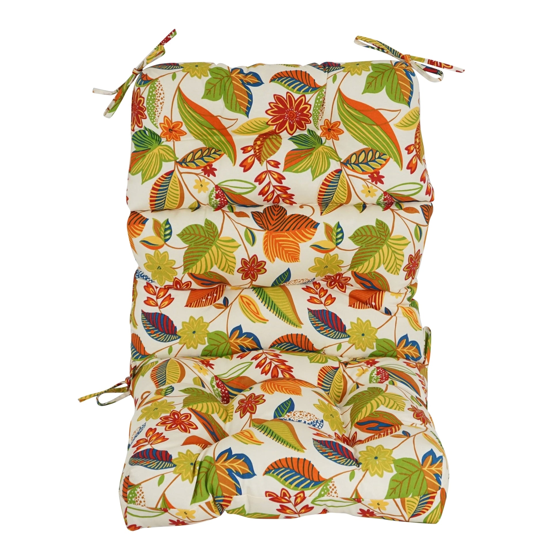 Add a touch of comfort and splash of color to your outdoor patio furnishings with this seat/back chair cushion. Crafted of durable, UV-resistant, and fade-resistant spun polyester outdoor fabric, these cushions include a classic tufted design for ample cushioned loft. This cushion can be easily secured to chairs using the attached fabric ties and is available is three sizes to allow a snug fit to a variety of patio and garden chairs. Available in a wide variety of fabric patterns ranging from the timeless to the trendy, it is easy to select an color option that is a perfect match for your existing outdoor style.