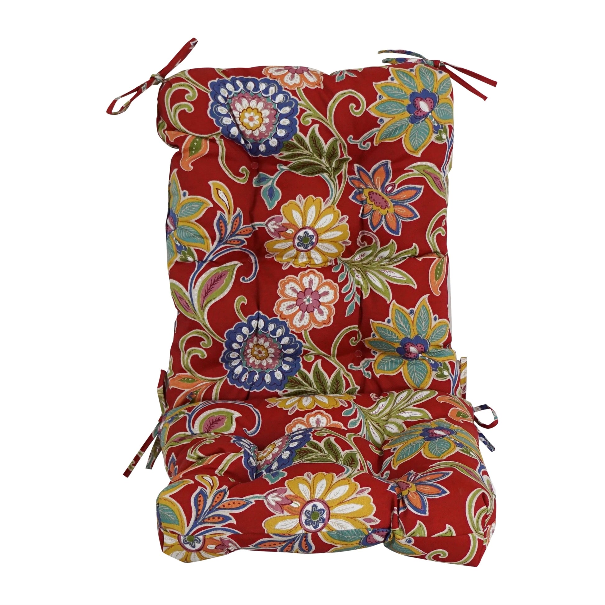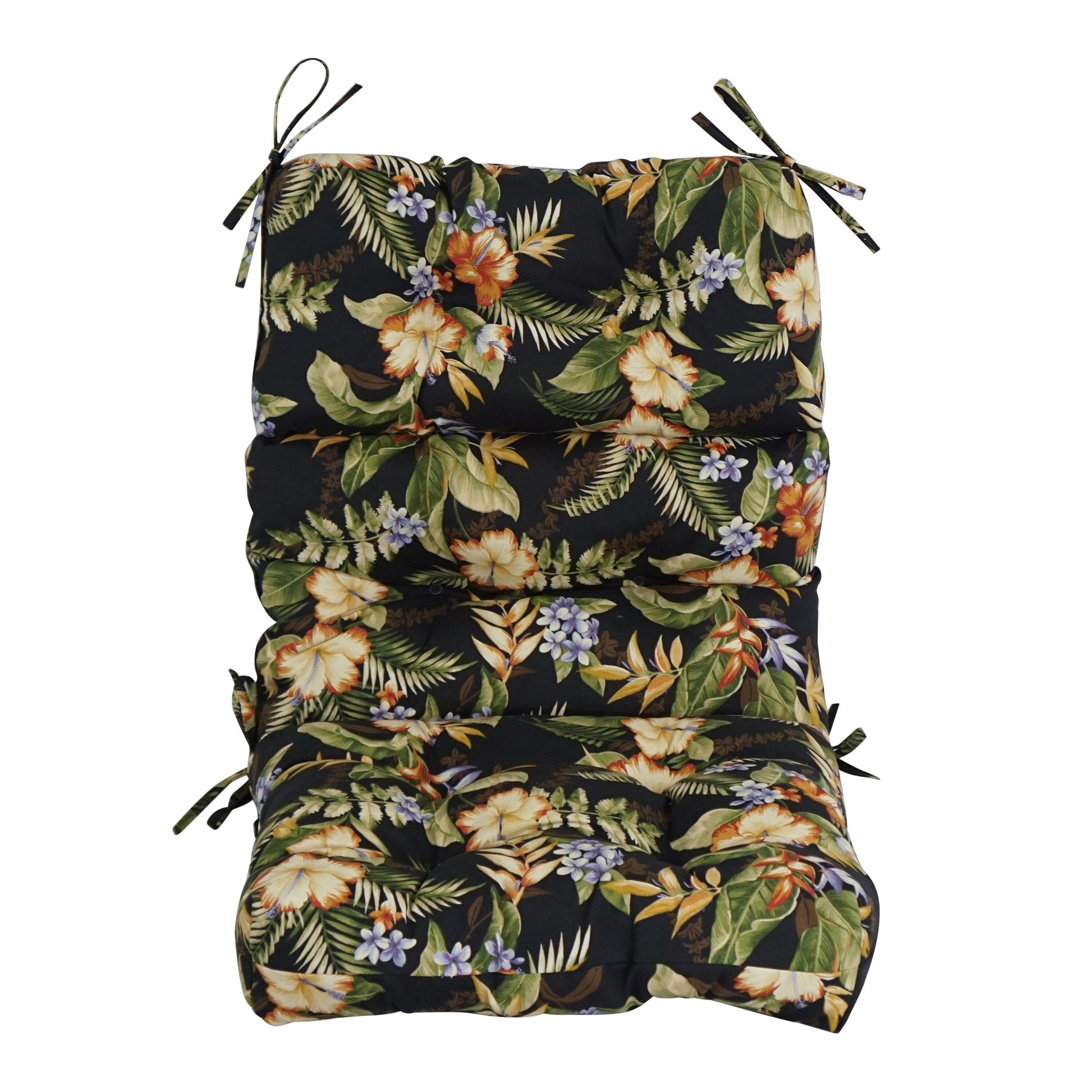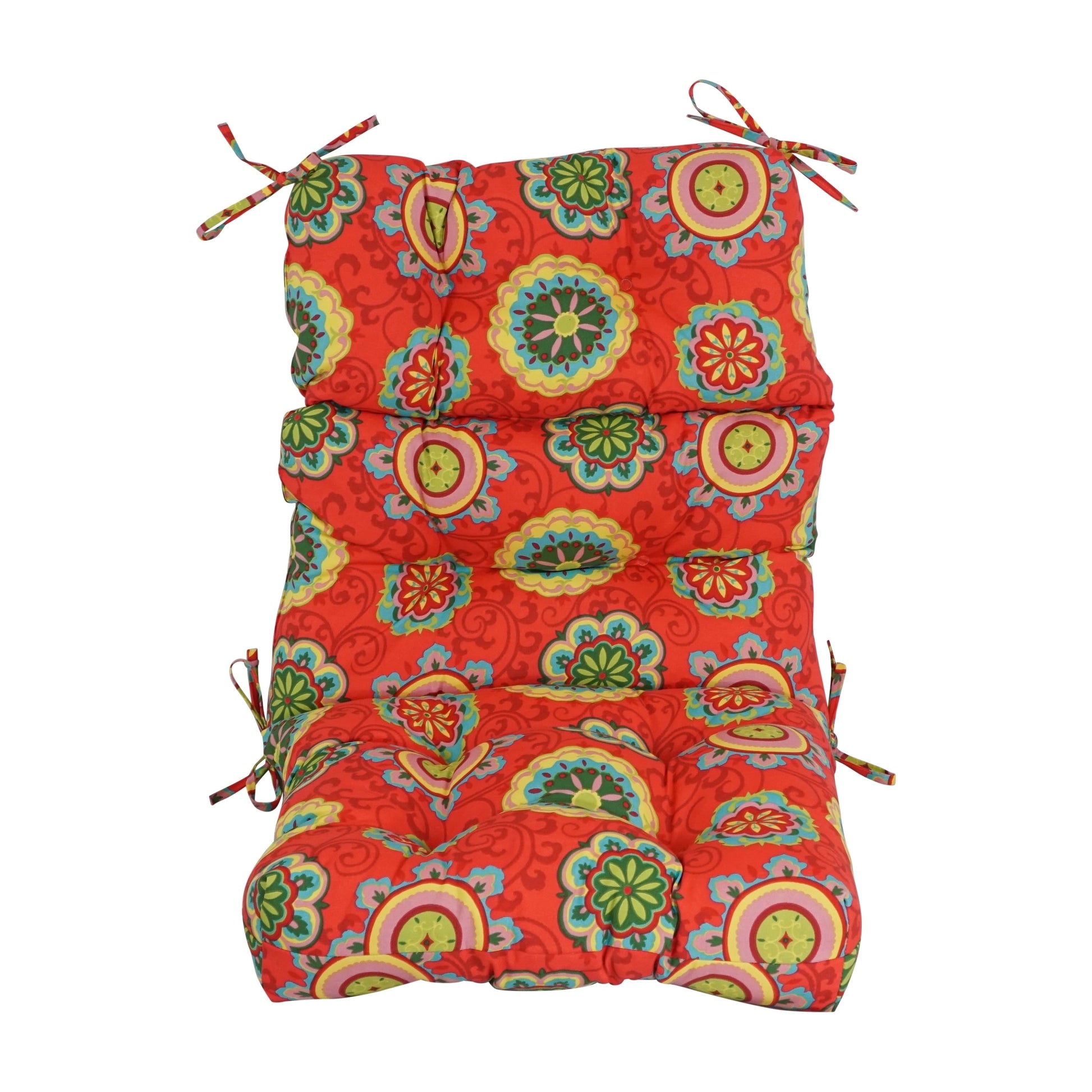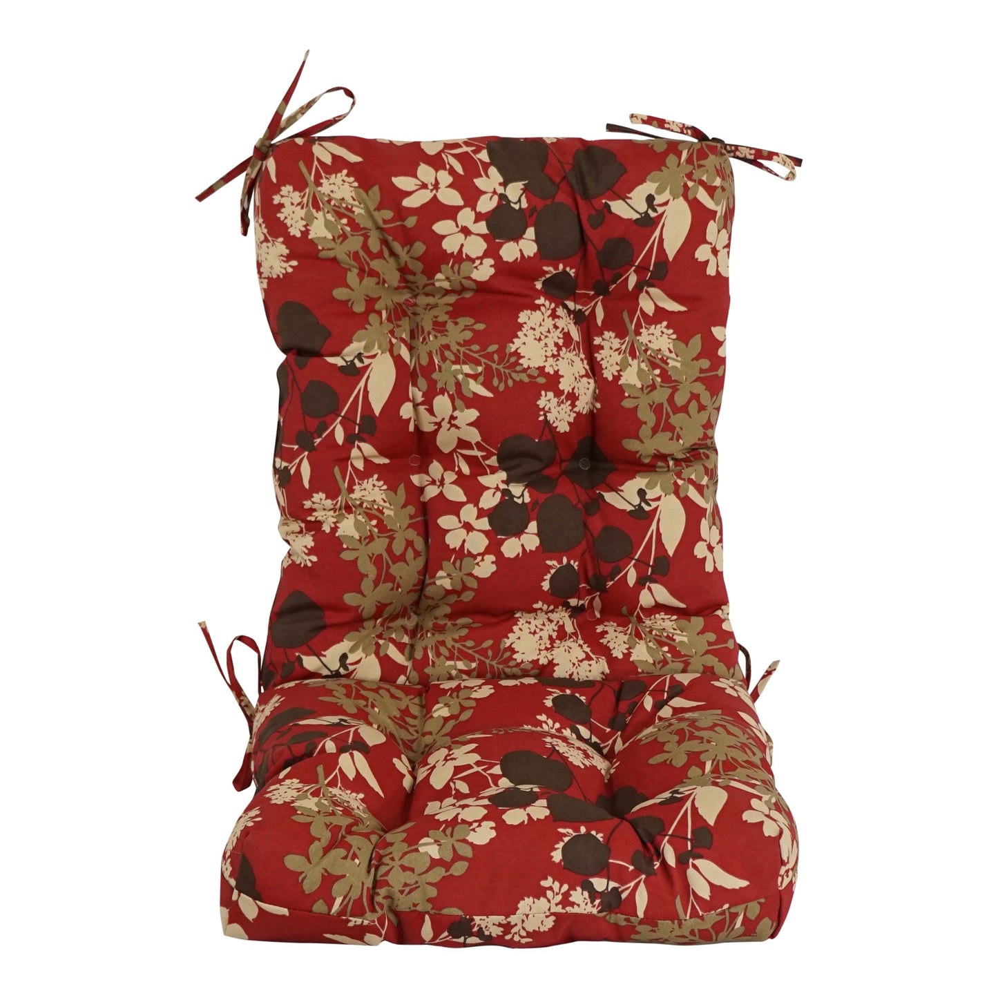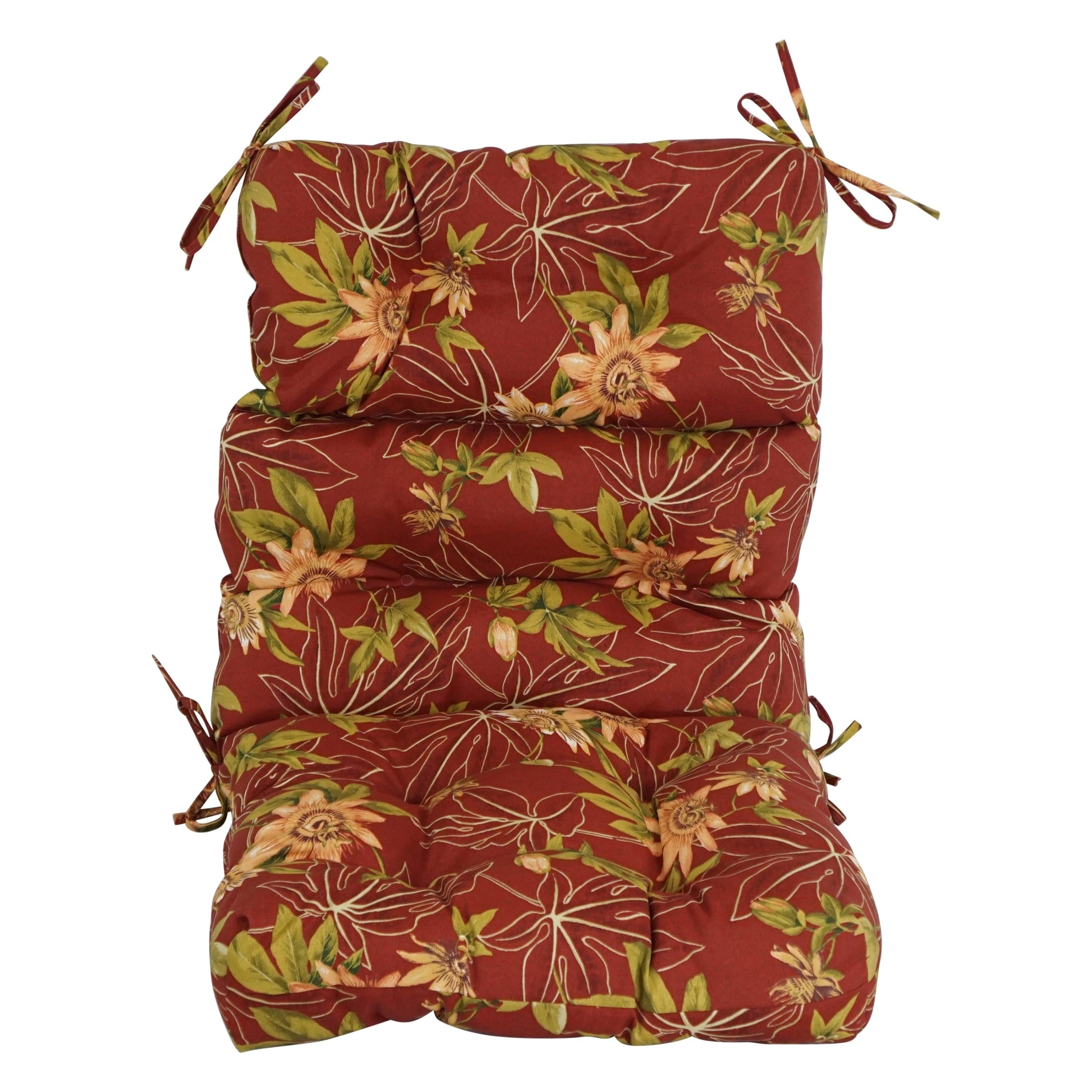 Add a touch of comfort and splash of color to your outdoor patio furnishings with this seat/back chair cushion. Crafted of durable, UV-resistant, and fade-resistant spun polyester outdoor fabric, these cushions include a classic tufted design for ample cushioned loft. This cushion can be easily secured to chairs using the attached fabric ties and is available is three sizes to allow a snug fit to a variety of patio and garden chairs. Available in a wide variety of fabric patterns ranging from the timeless to the trendy, it is easy to select an color option that is a perfect match for your existing outdoor style.