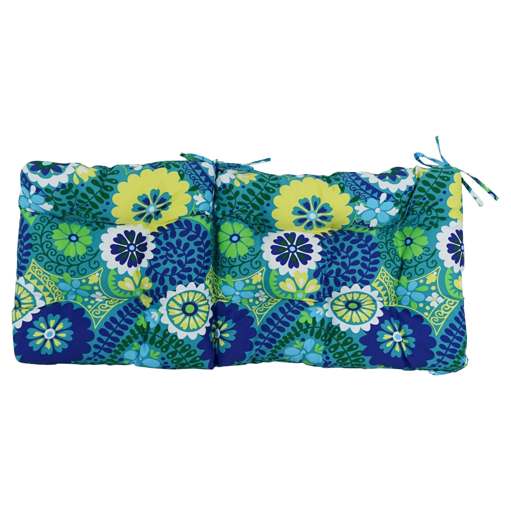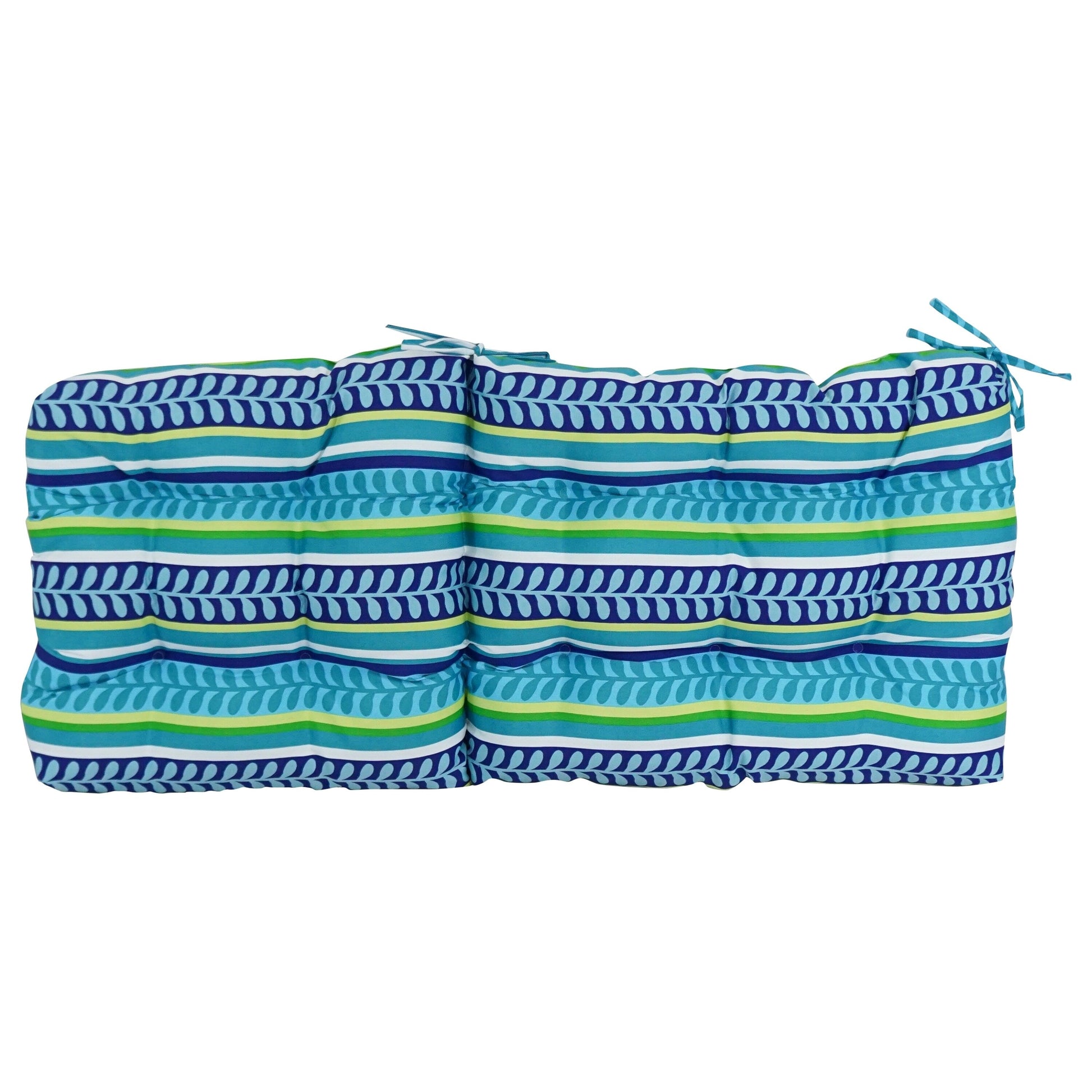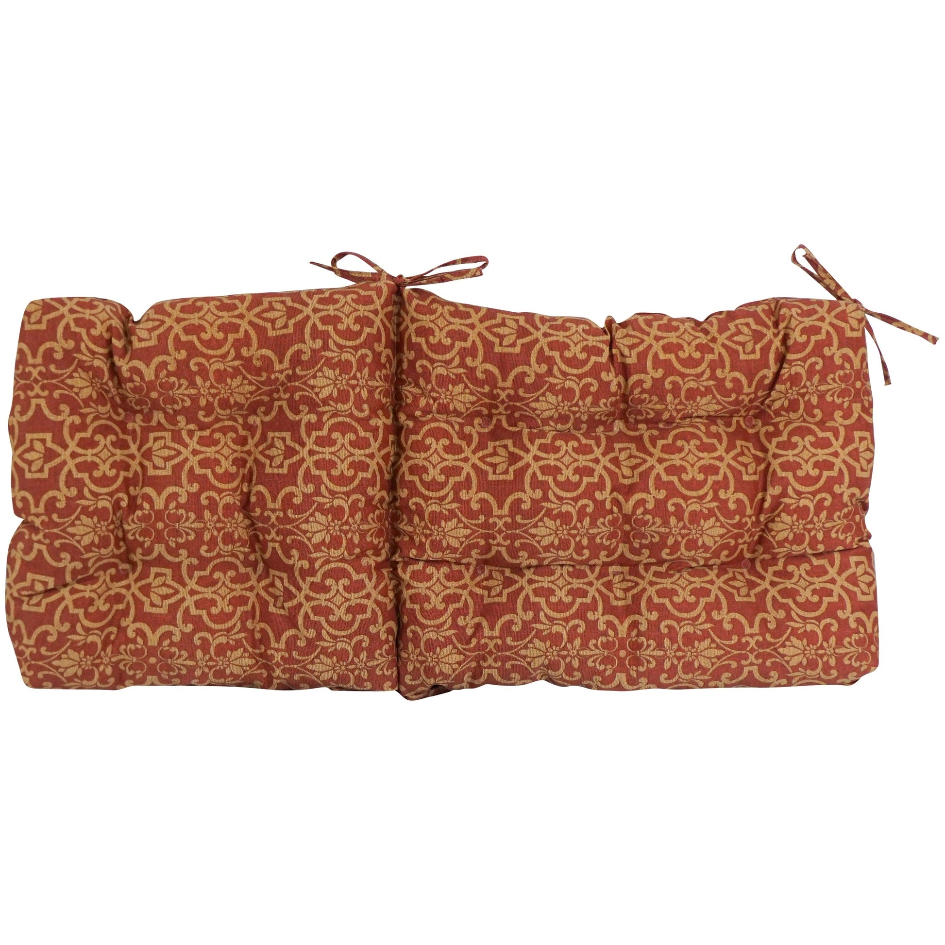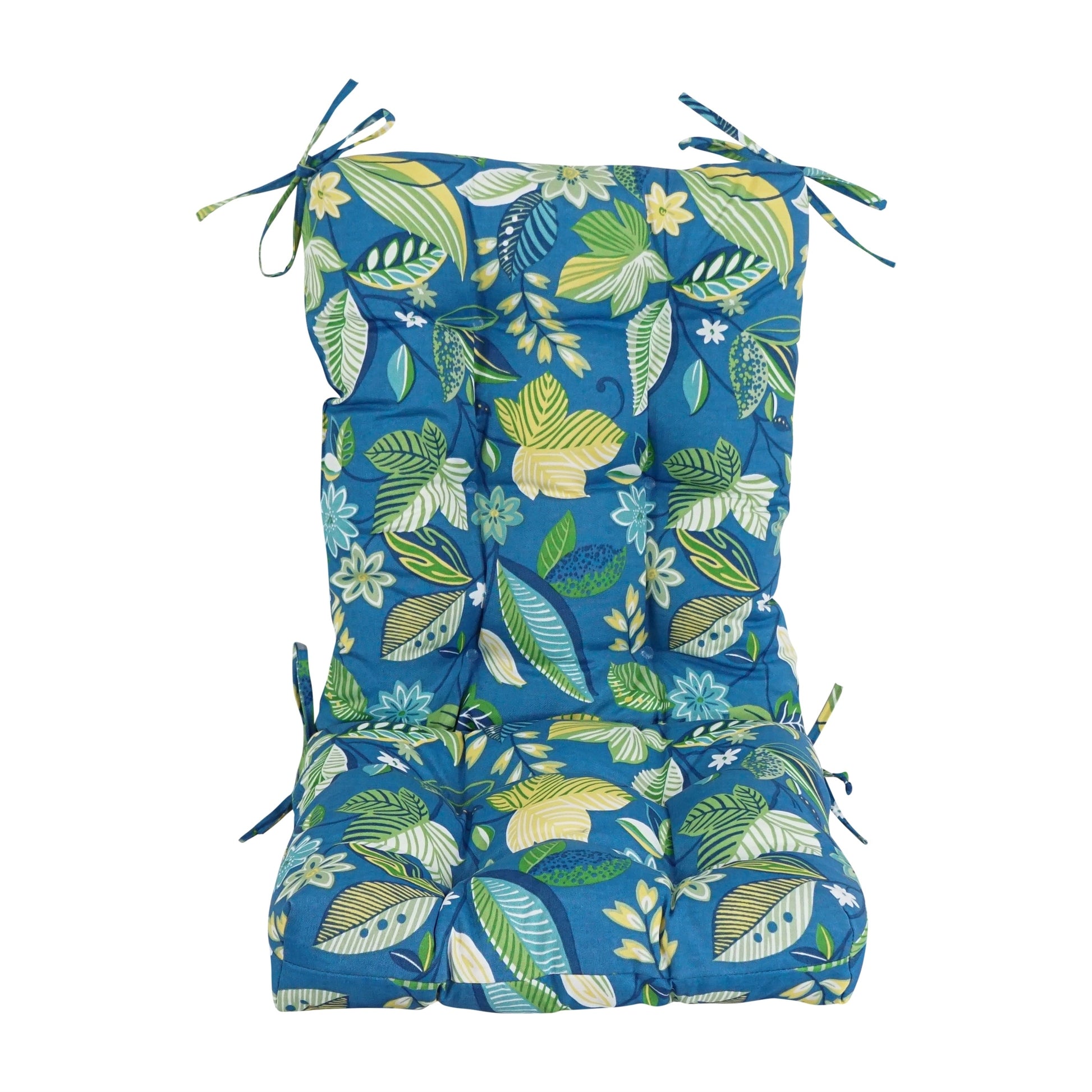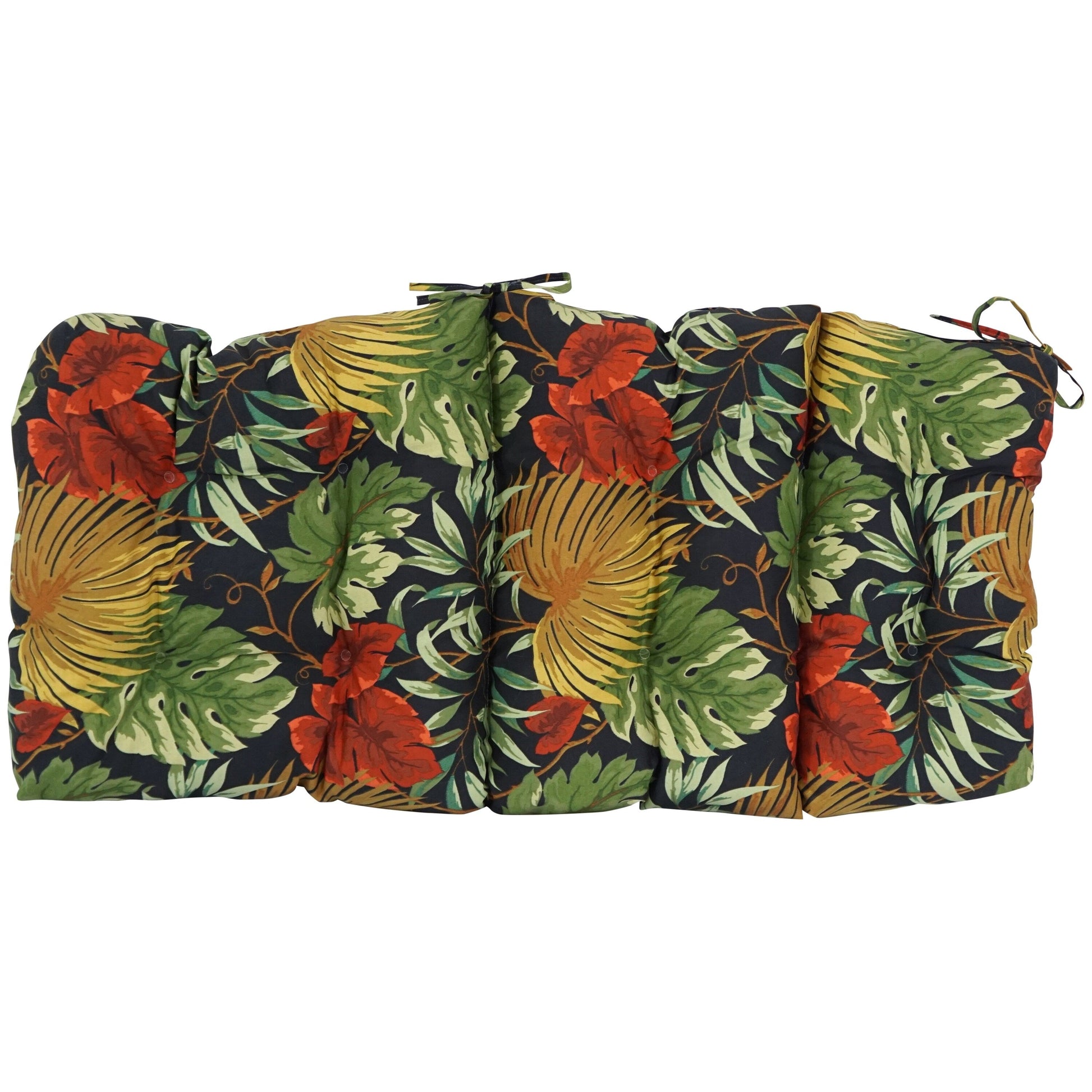 Add a touch of comfort and splash of color to your outdoor patio furnishings with this seat/back chair cushion. Crafted of durable, UV-resistant, and fade-resistant spun polyester outdoor fabric, these cushions include a classic tufted design for ample cushioned loft. This cushion can be easily secured to chairs using the attached fabric ties and is available is three sizes to allow a snug fit to a variety of patio and garden chairs. Available in a wide variety of fabric patterns ranging from the timeless to the trendy, it is easy to select an color option that is a perfect match for your existing outdoor style.