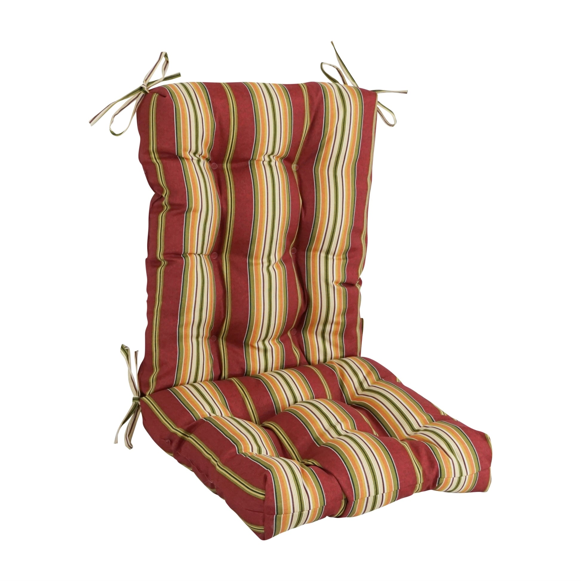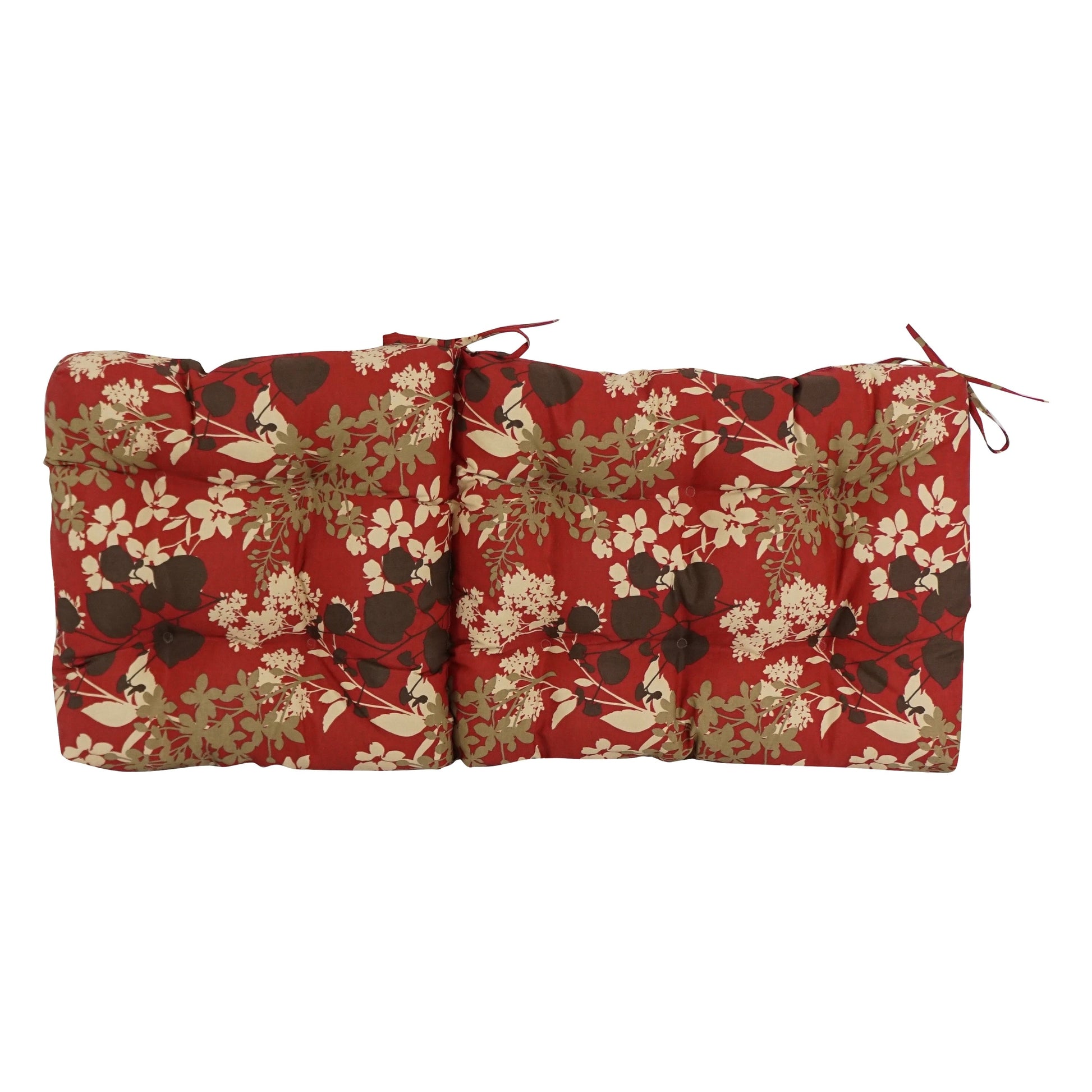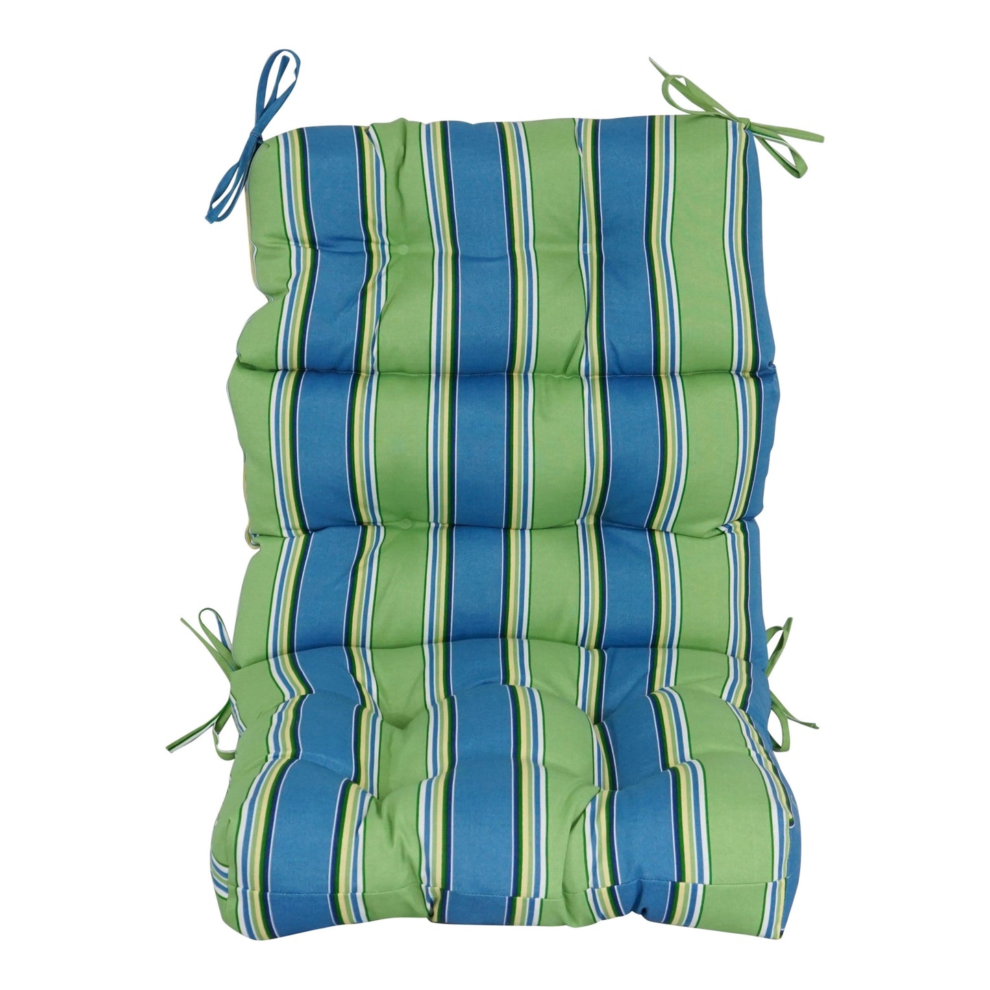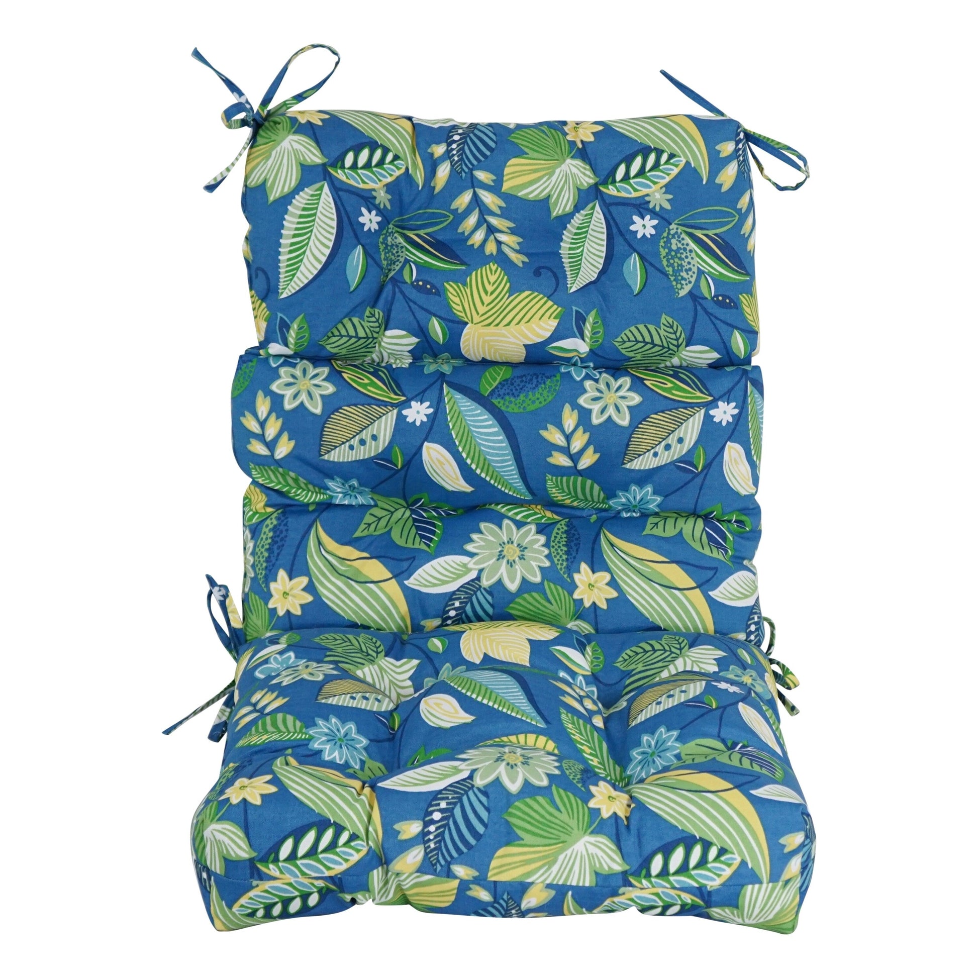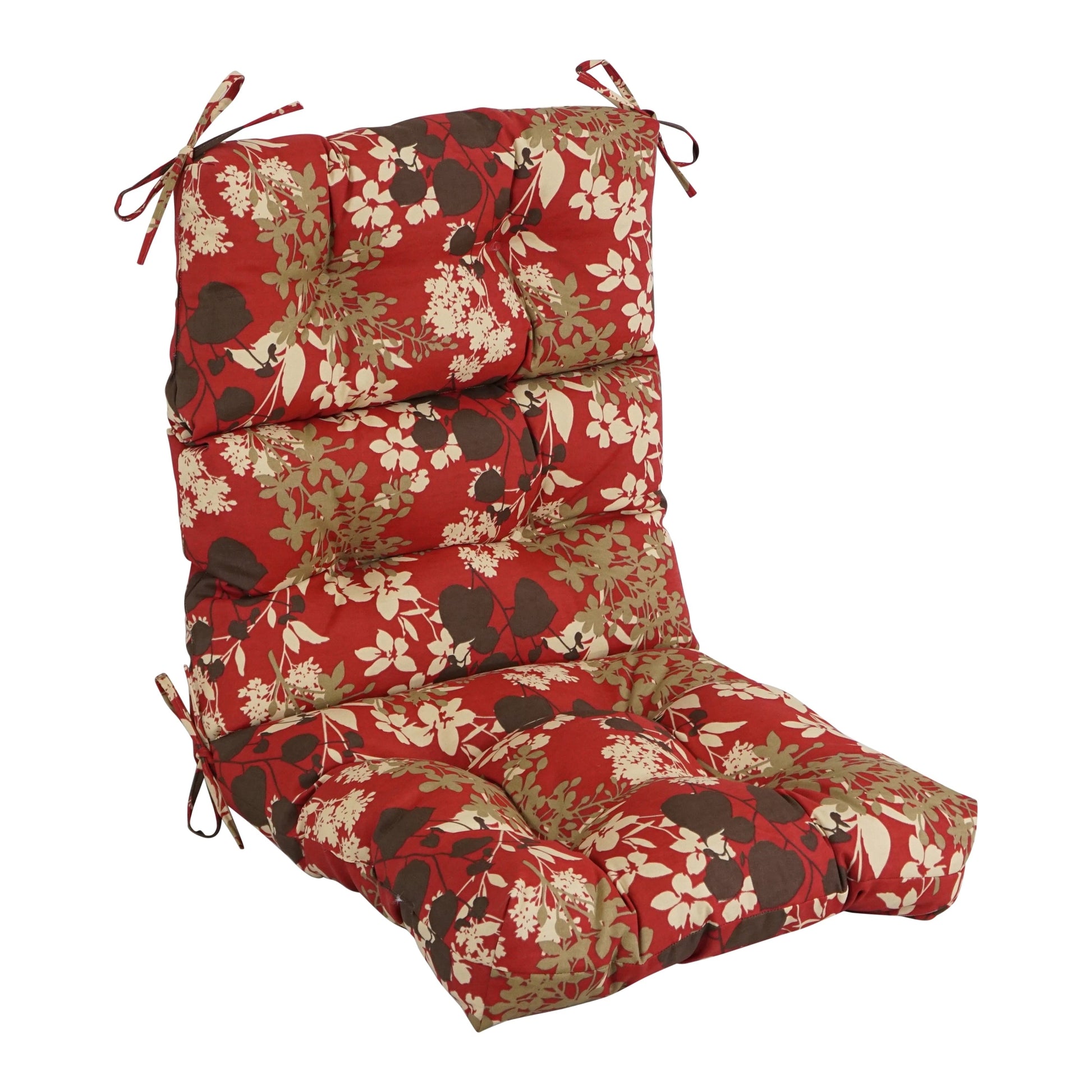 Add a touch of comfort and splash of color to your outdoor patio furnishings with this seat/back chair cushion. Crafted of durable, UV-resistant, and fade-resistant spun polyester outdoor fabric, these cushions include a classic tufted design for ample cushioned loft. This cushion can be easily secured to chairs using the attached fabric ties and is available is three sizes to allow a snug fit to a variety of patio and garden chairs. Available in a wide variety of fabric patterns ranging from the timeless to the trendy, it is easy to select an color option that is a perfect match for your existing outdoor style.