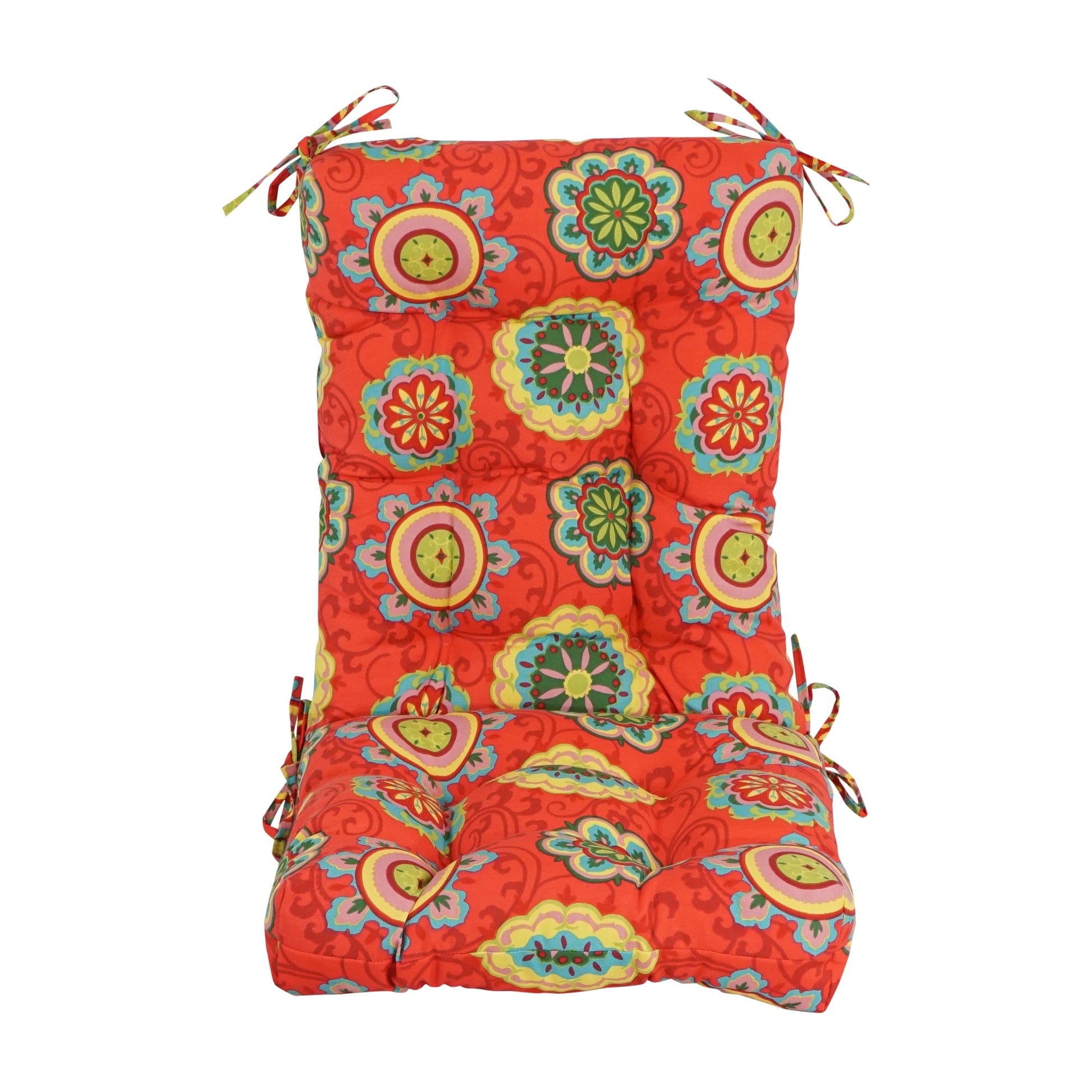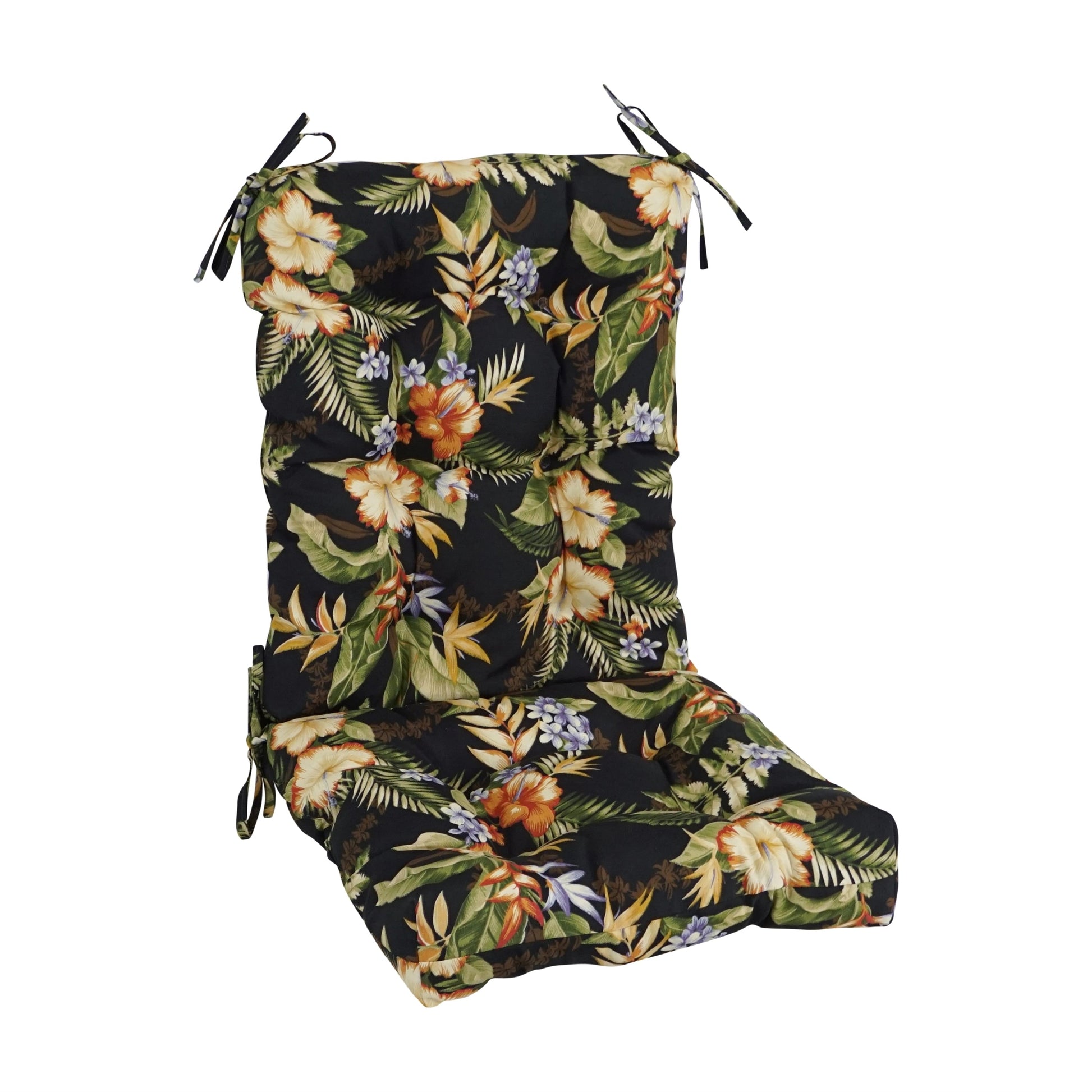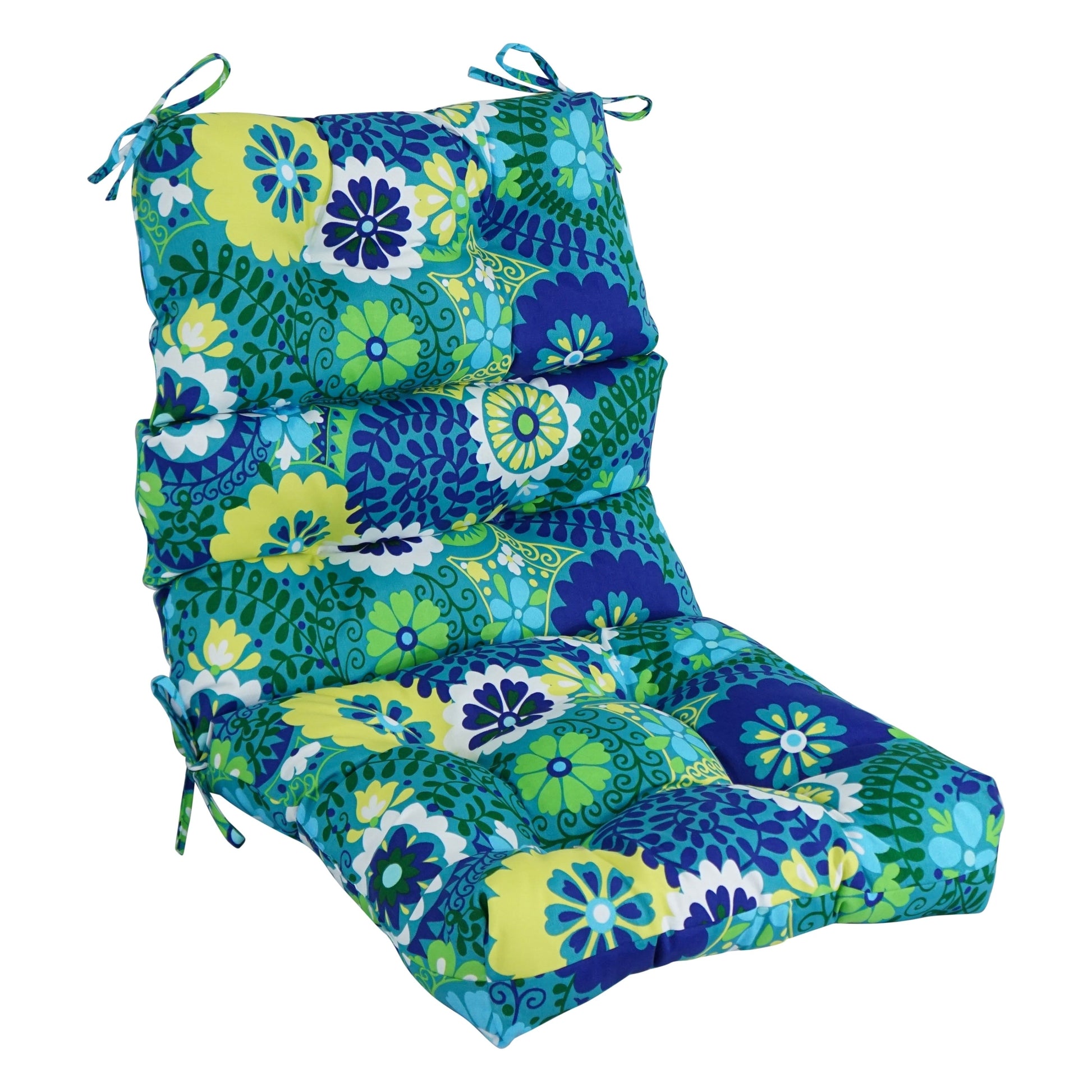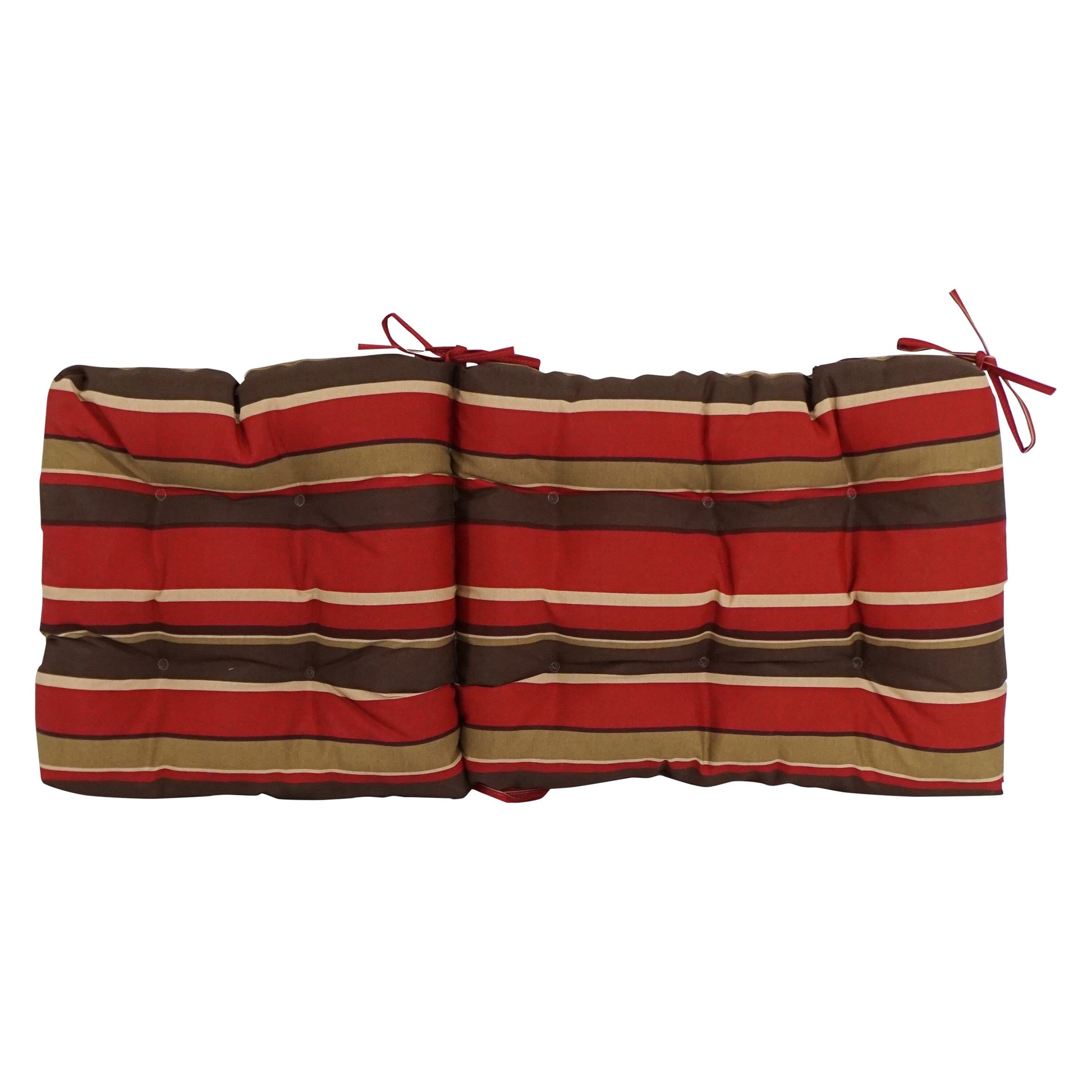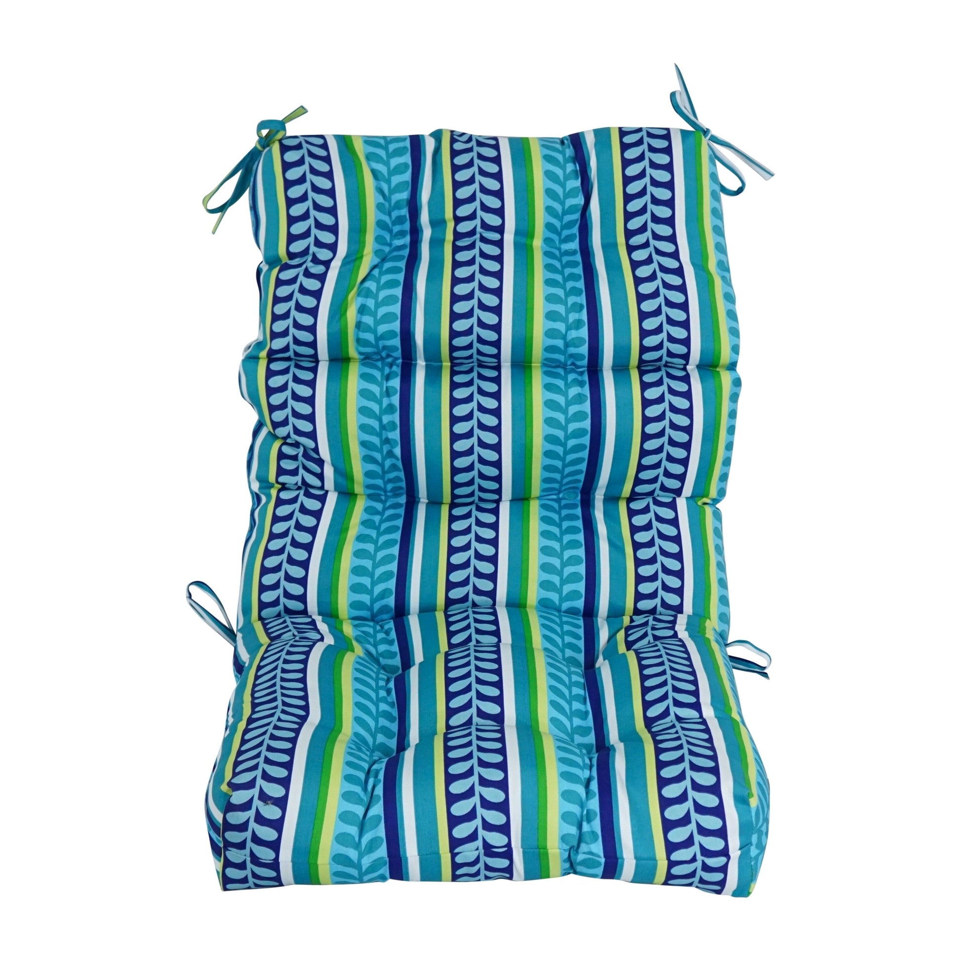 Add a touch of comfort and splash of color to your outdoor patio furnishings with this seat/back chair cushion. Crafted of durable, UV-resistant, and fade-resistant spun polyester outdoor fabric, these cushions include a classic tufted design for ample cushioned loft. This cushion can be easily secured to chairs using the attached fabric ties and is available is three sizes to allow a snug fit to a variety of patio and garden chairs. Available in a wide variety of fabric patterns ranging from the timeless to the trendy, it is easy to select an color option that is a perfect match for your existing outdoor style.