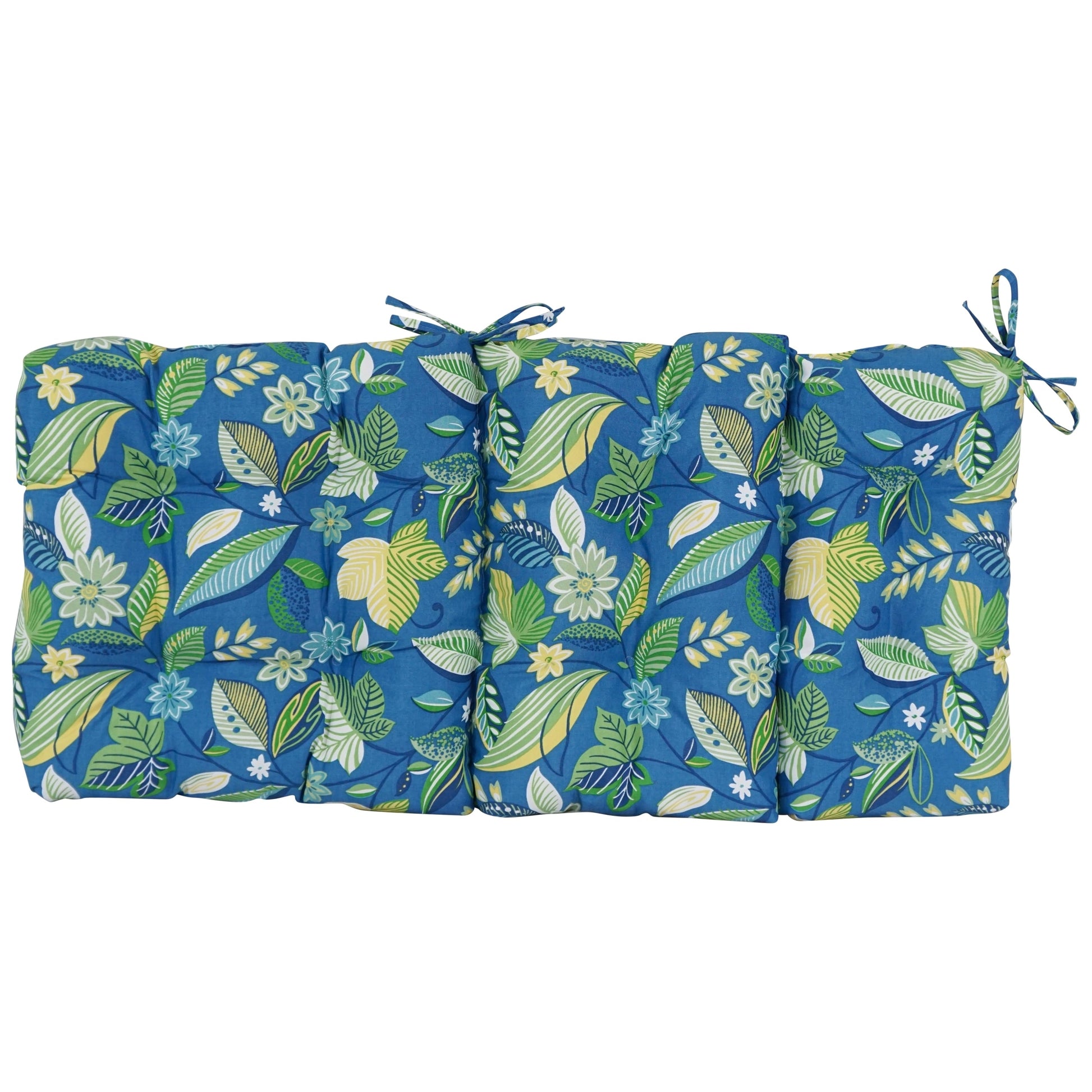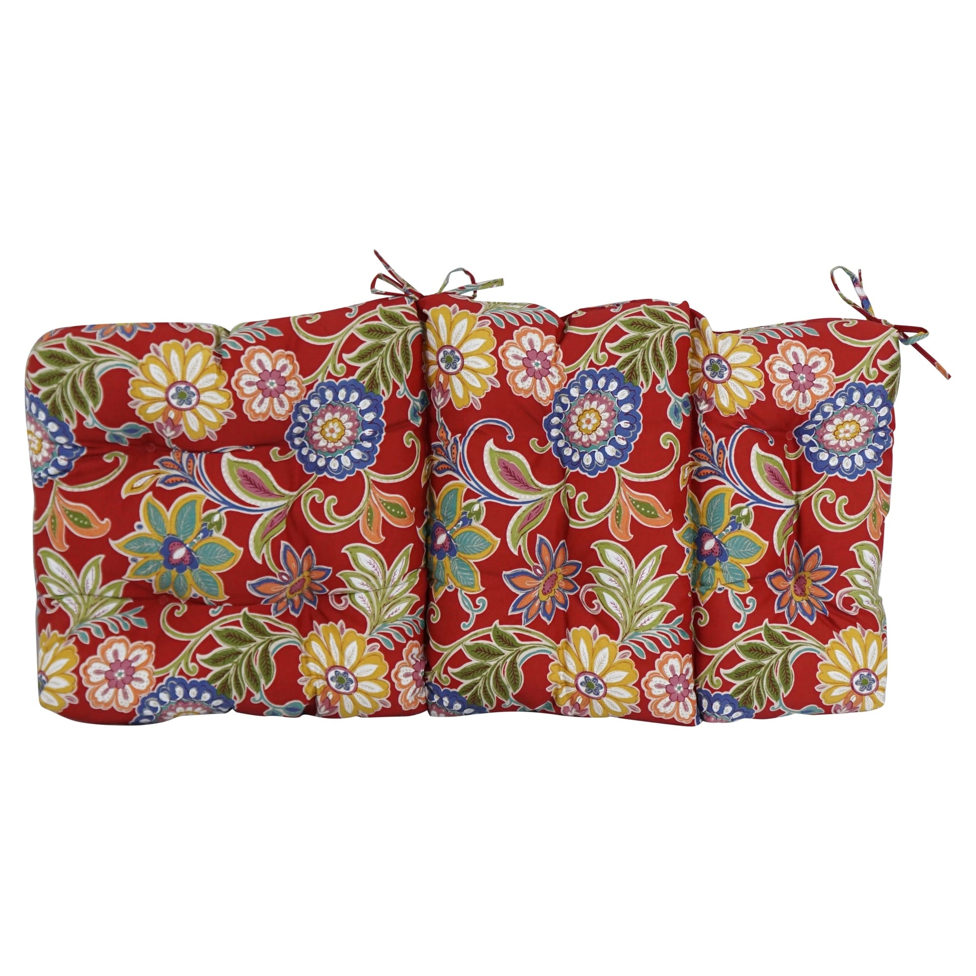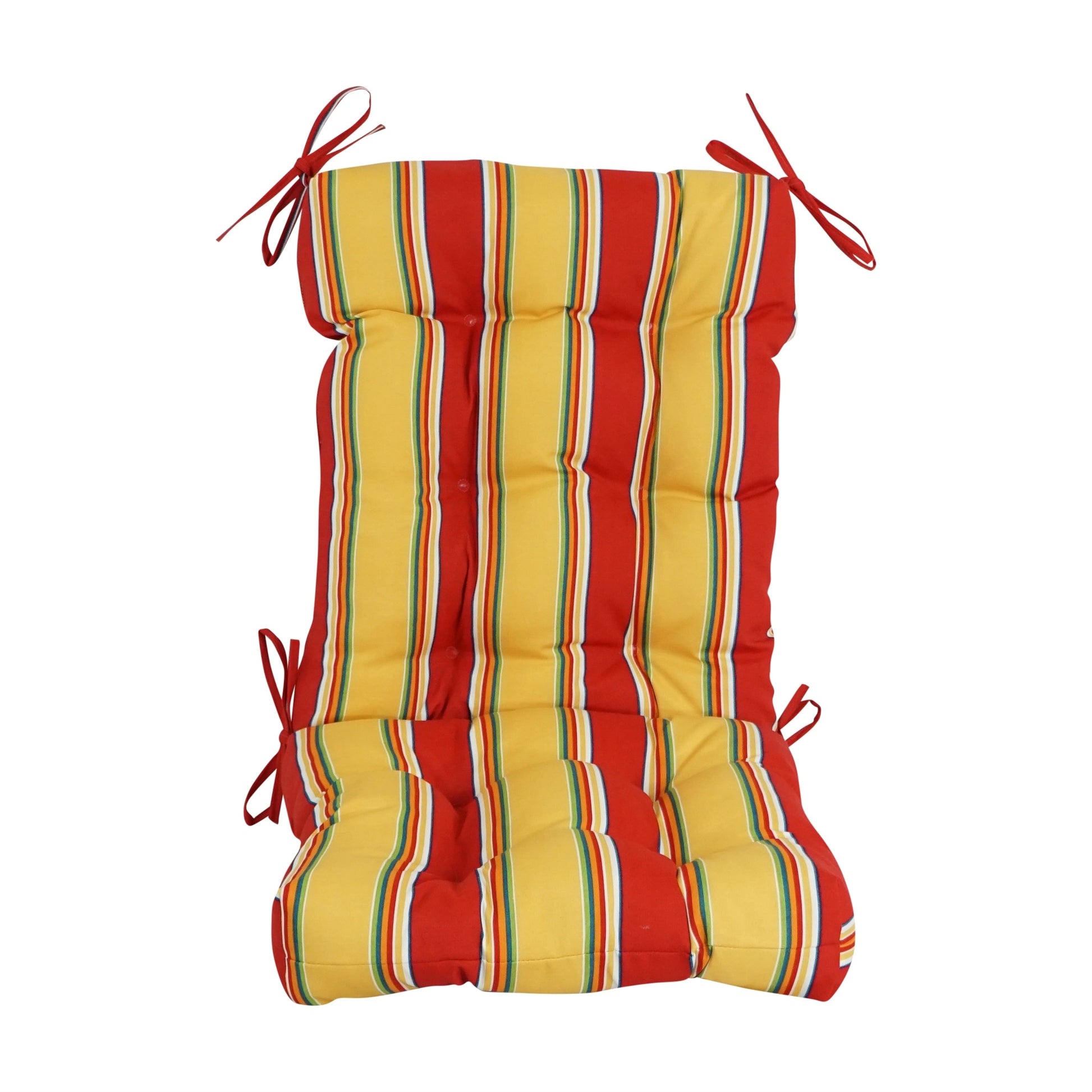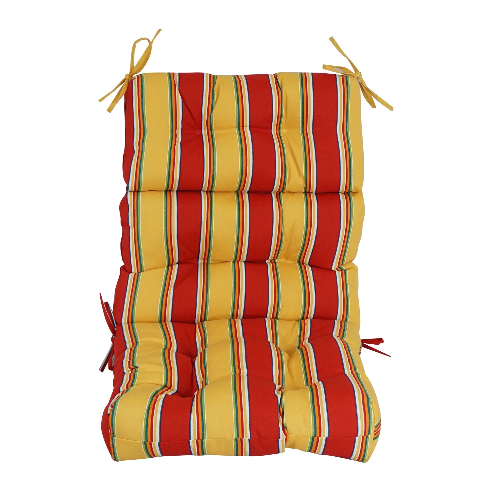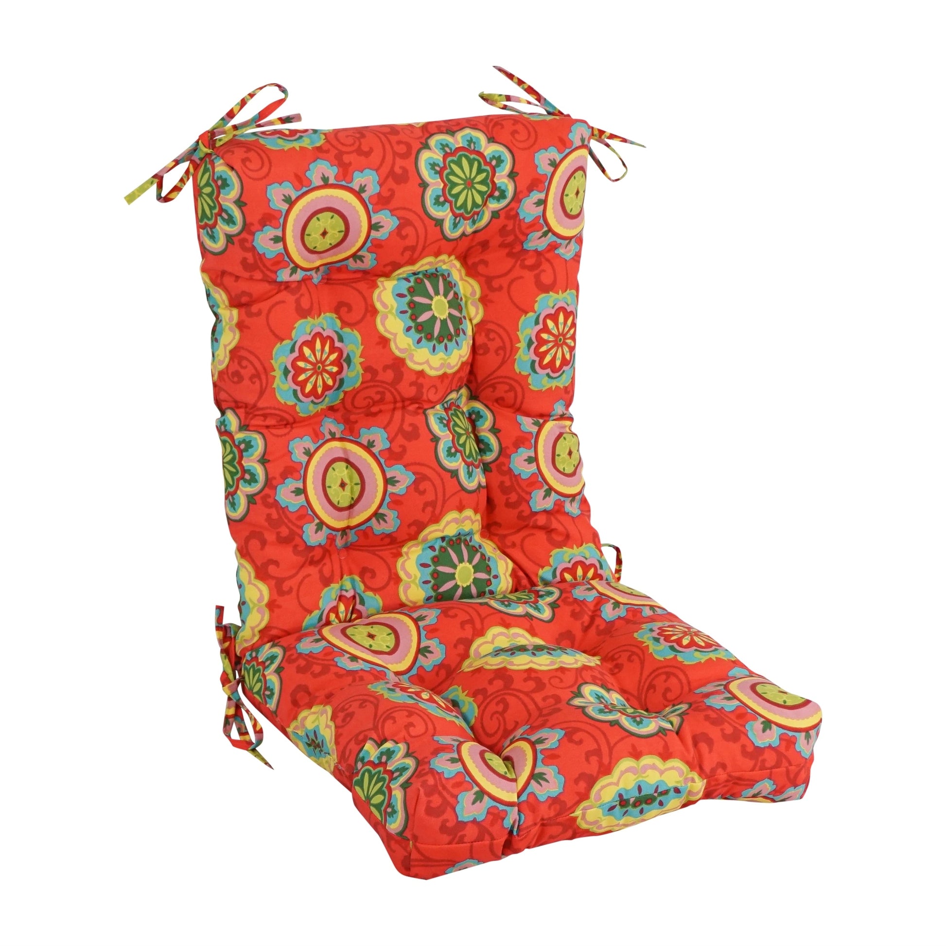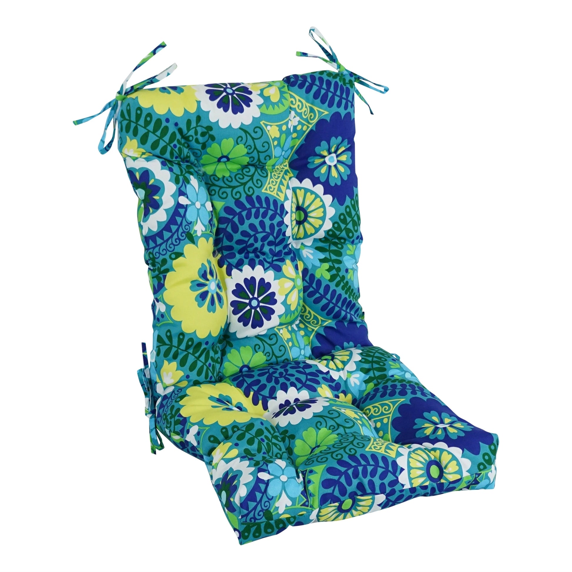 Add a touch of comfort and splash of color to your outdoor patio furnishings with this seat/back chair cushion. Crafted of durable, UV-resistant, and fade-resistant spun polyester outdoor fabric, these cushions include a classic tufted design for ample cushioned loft. This cushion can be easily secured to chairs using the attached fabric ties and is available is three sizes to allow a snug fit to a variety of patio and garden chairs. Available in a wide variety of fabric patterns ranging from the timeless to the trendy, it is easy to select an color option that is a perfect match for your existing outdoor style.