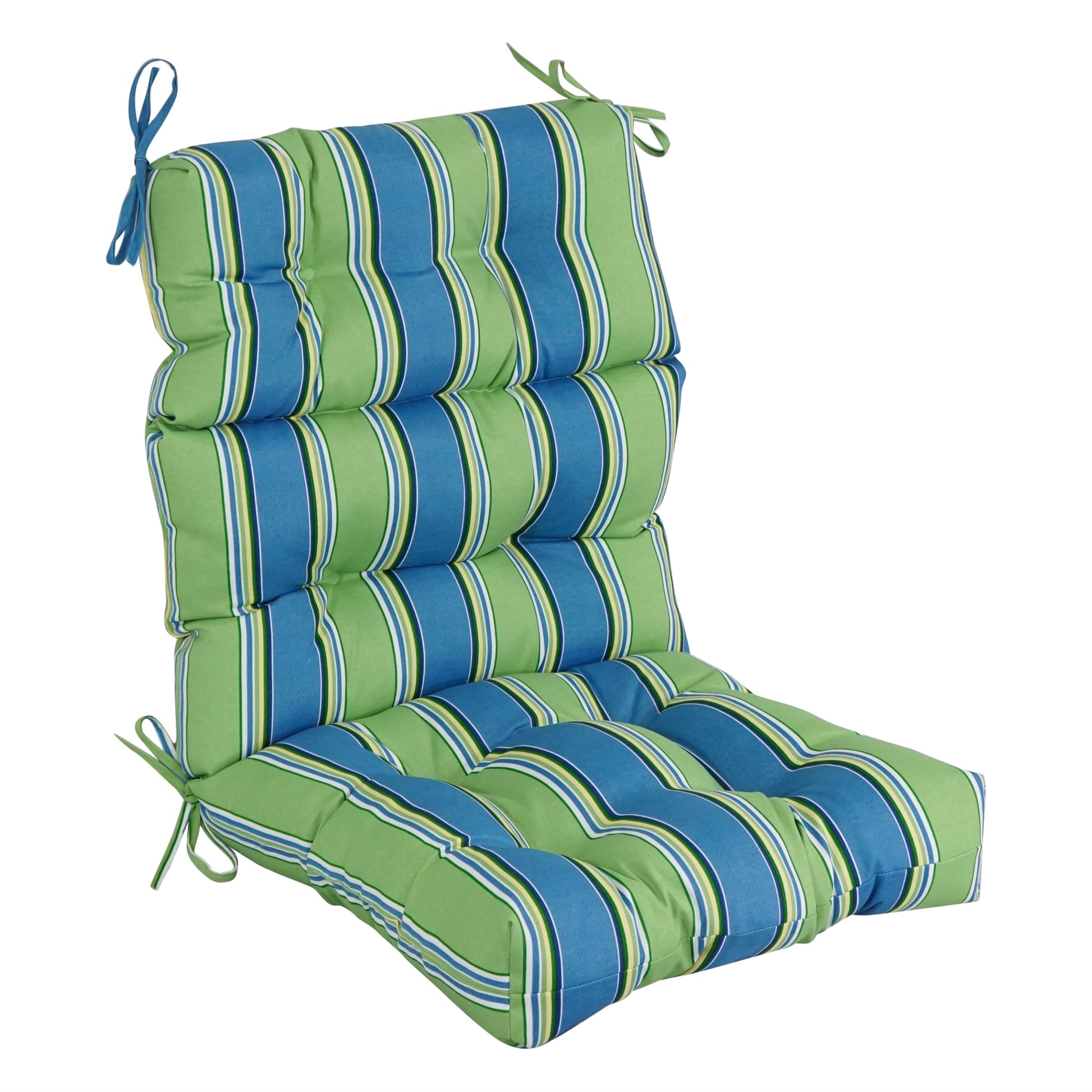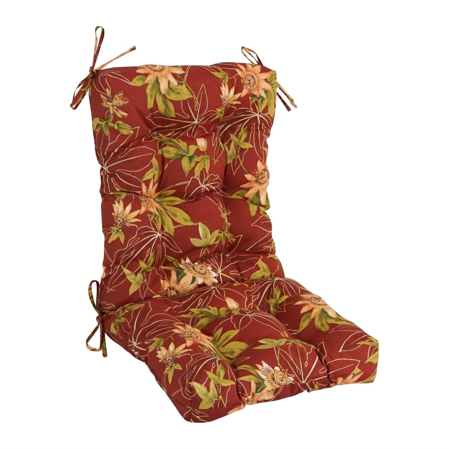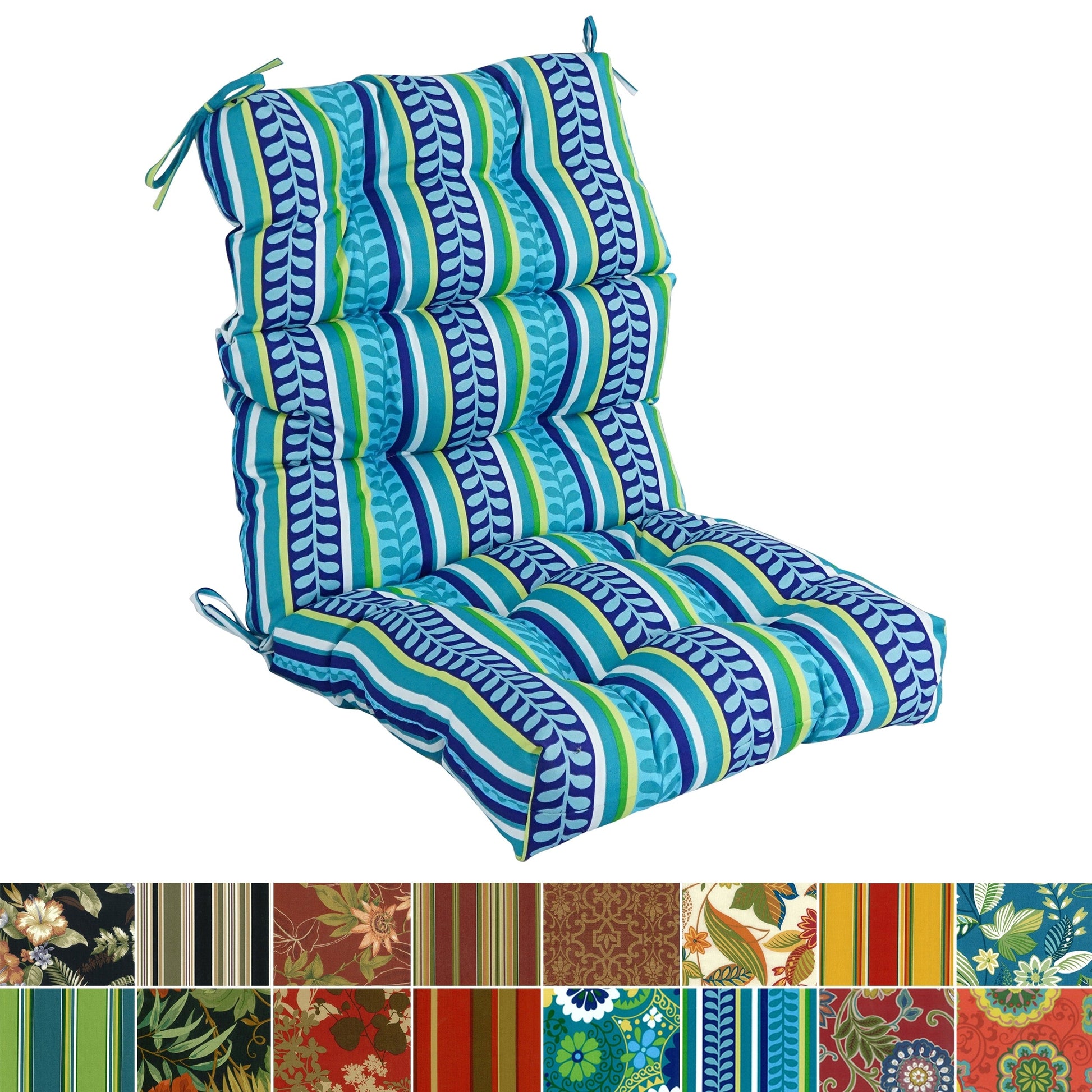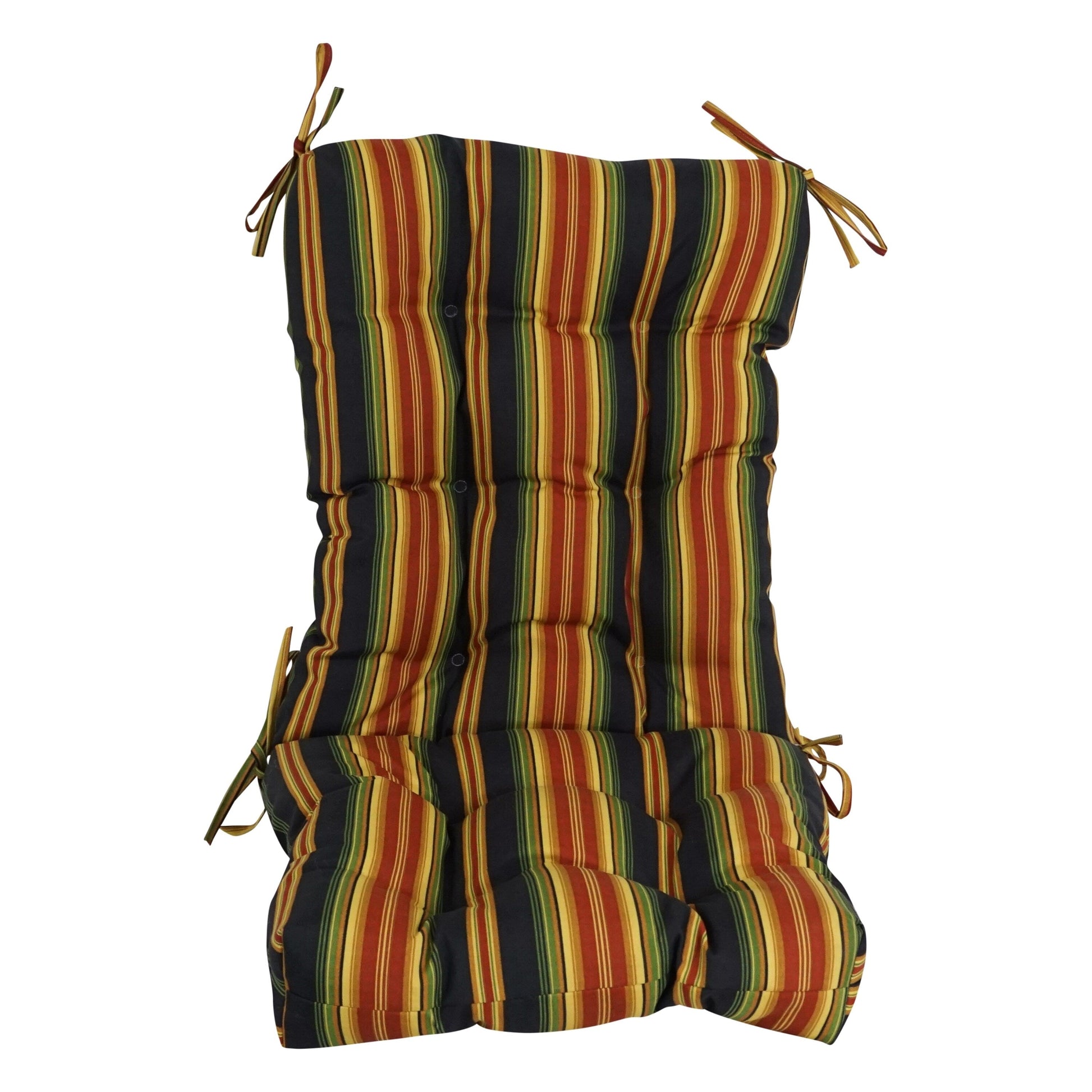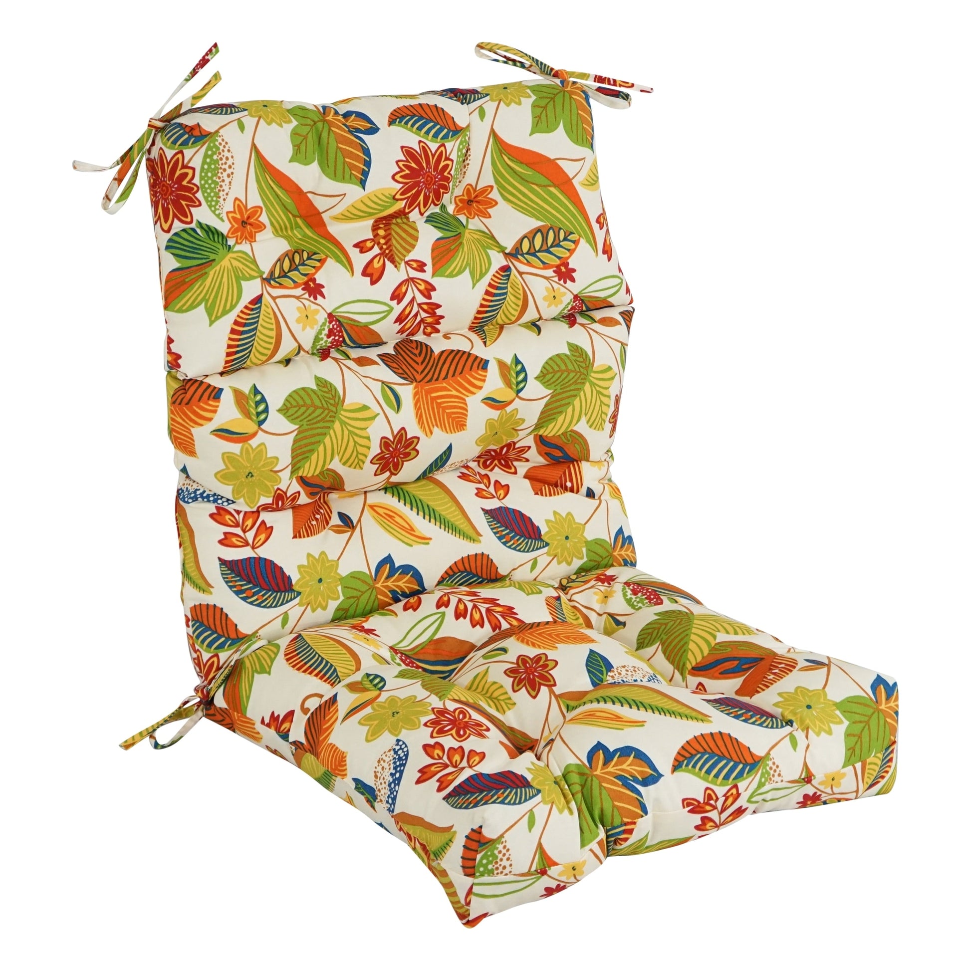 Add a touch of comfort and splash of color to your outdoor patio furnishings with this seat/back chair cushion. Crafted of durable, UV-resistant, and fade-resistant spun polyester outdoor fabric, these cushions include a classic tufted design for ample cushioned loft. This cushion can be easily secured to chairs using the attached fabric ties and is available is three sizes to allow a snug fit to a variety of patio and garden chairs. Available in a wide variety of fabric patterns ranging from the timeless to the trendy, it is easy to select an color option that is a perfect match for your existing outdoor style.