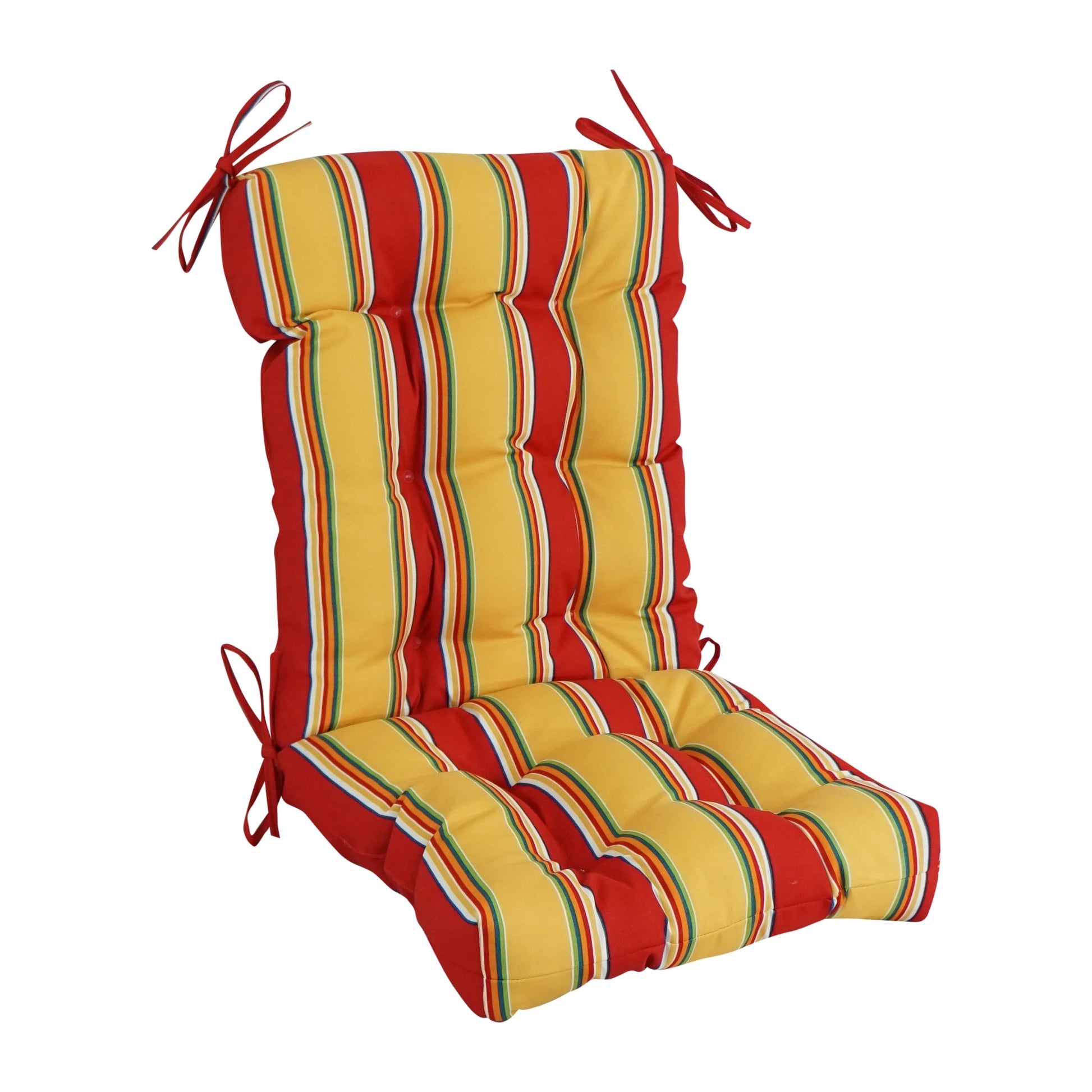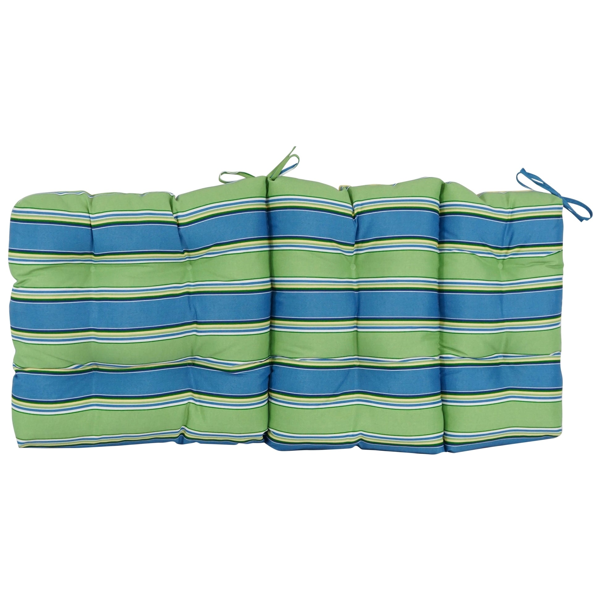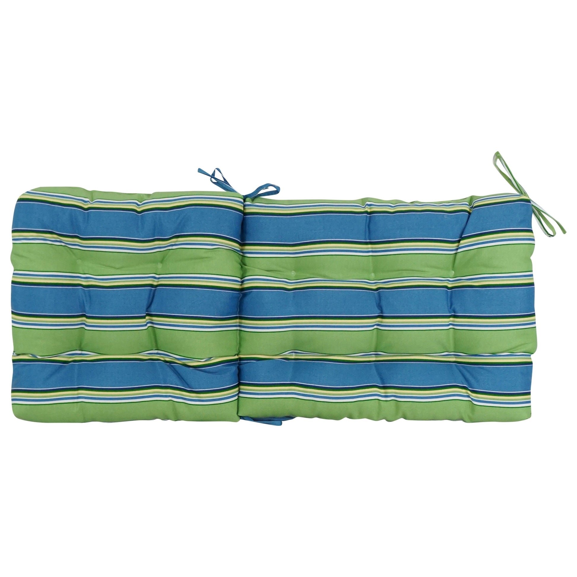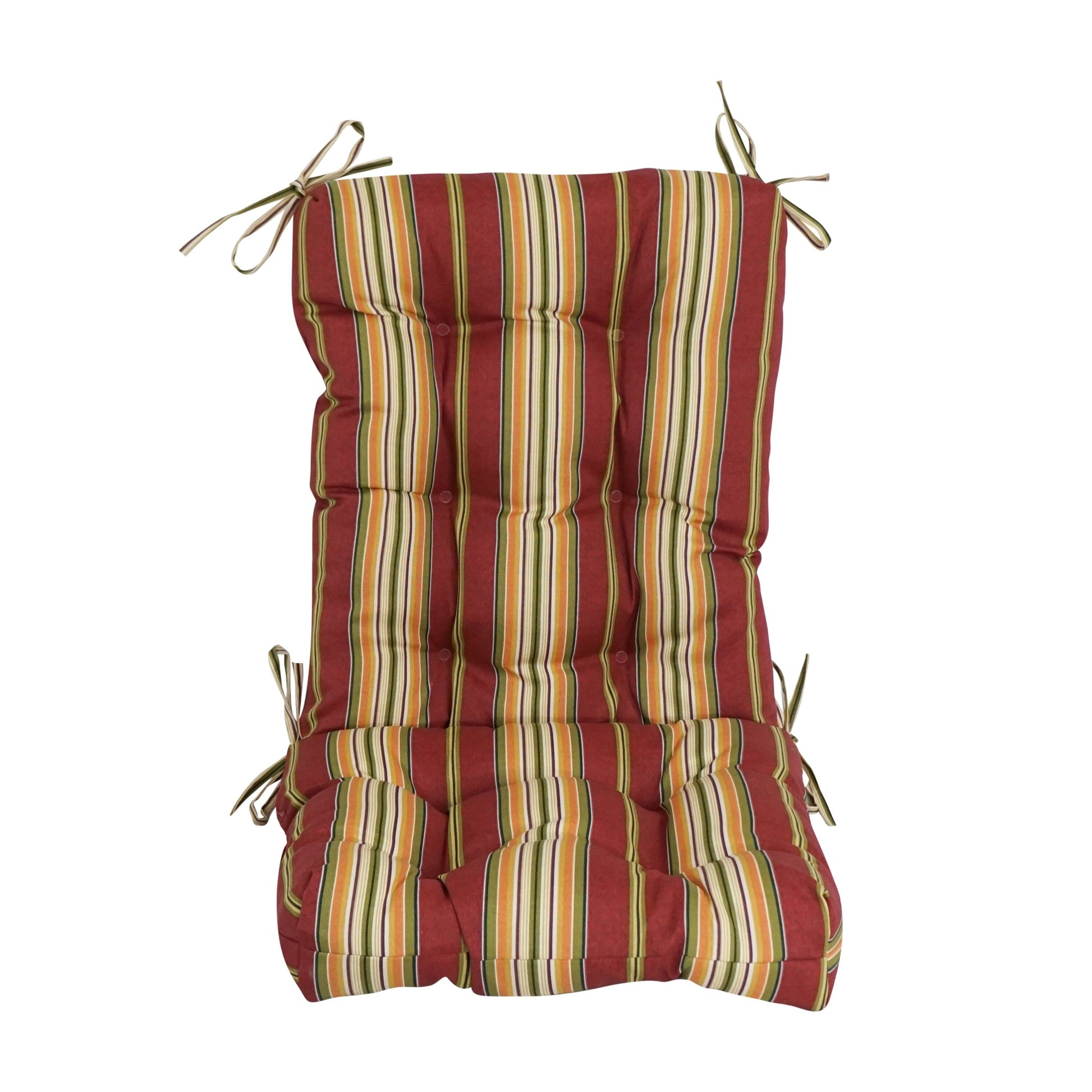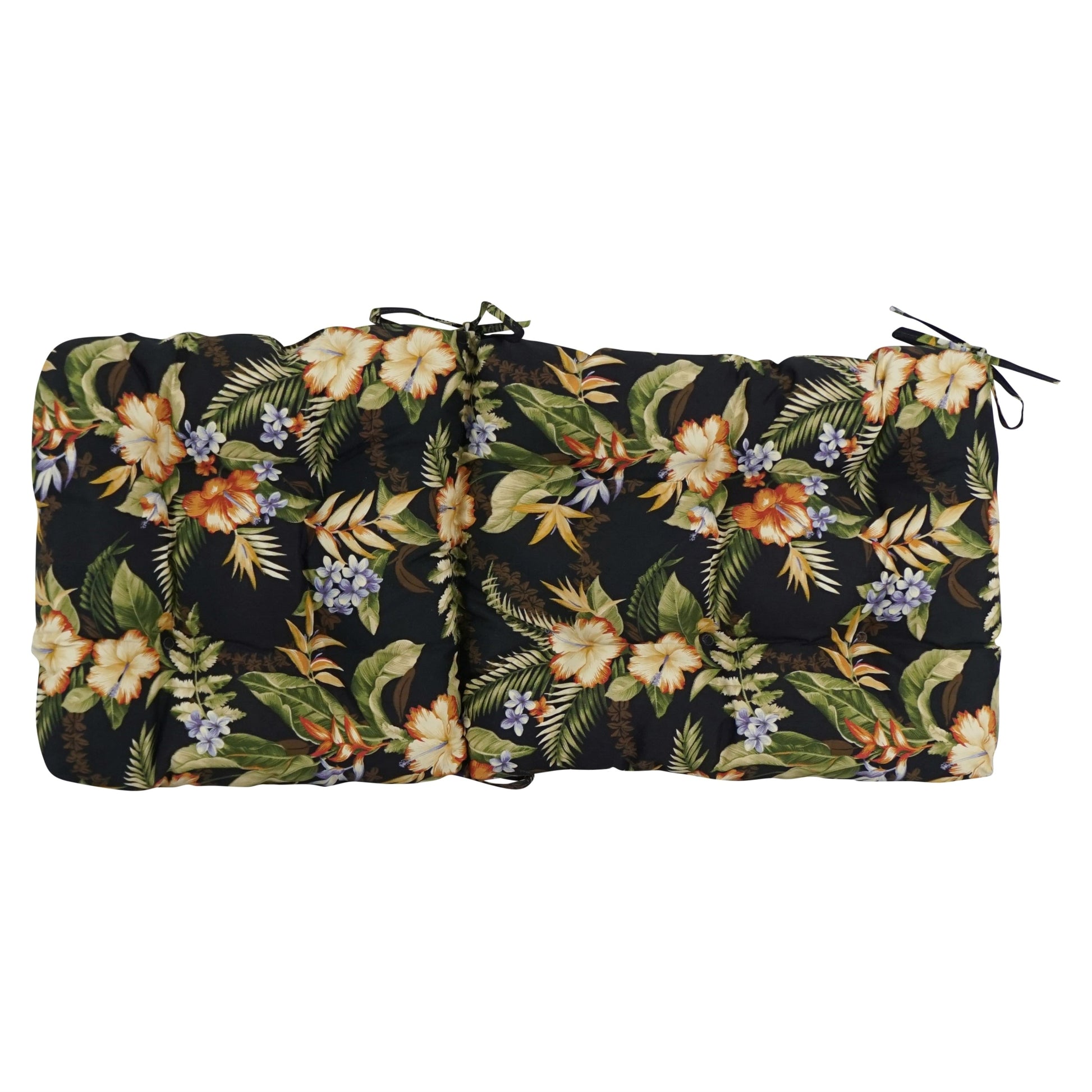 Add a touch of comfort and splash of color to your outdoor patio furnishings with this seat/back chair cushion. Crafted of durable, UV-resistant, and fade-resistant spun polyester outdoor fabric, these cushions include a classic tufted design for ample cushioned loft. This cushion can be easily secured to chairs using the attached fabric ties and is available is three sizes to allow a snug fit to a variety of patio and garden chairs. Available in a wide variety of fabric patterns ranging from the timeless to the trendy, it is easy to select an color option that is a perfect match for your existing outdoor style.