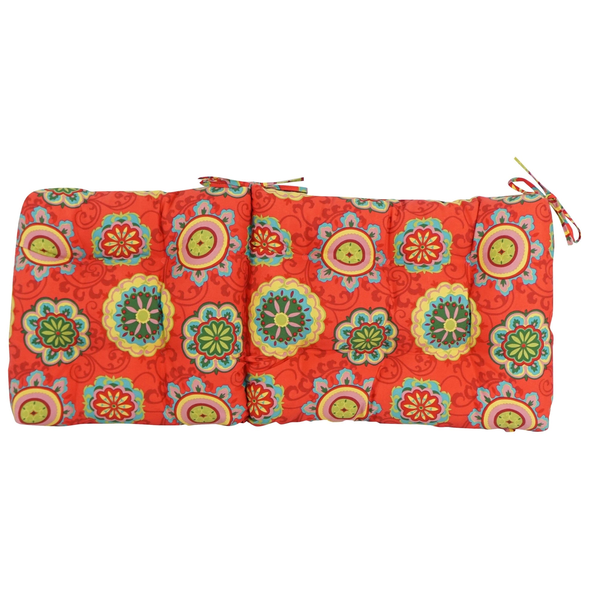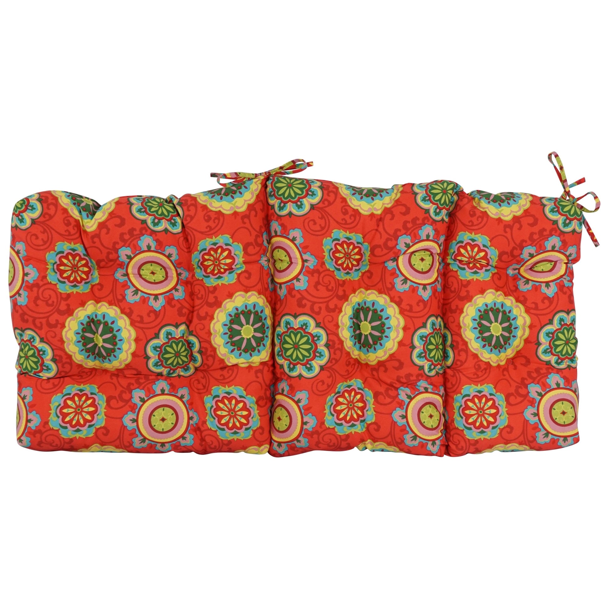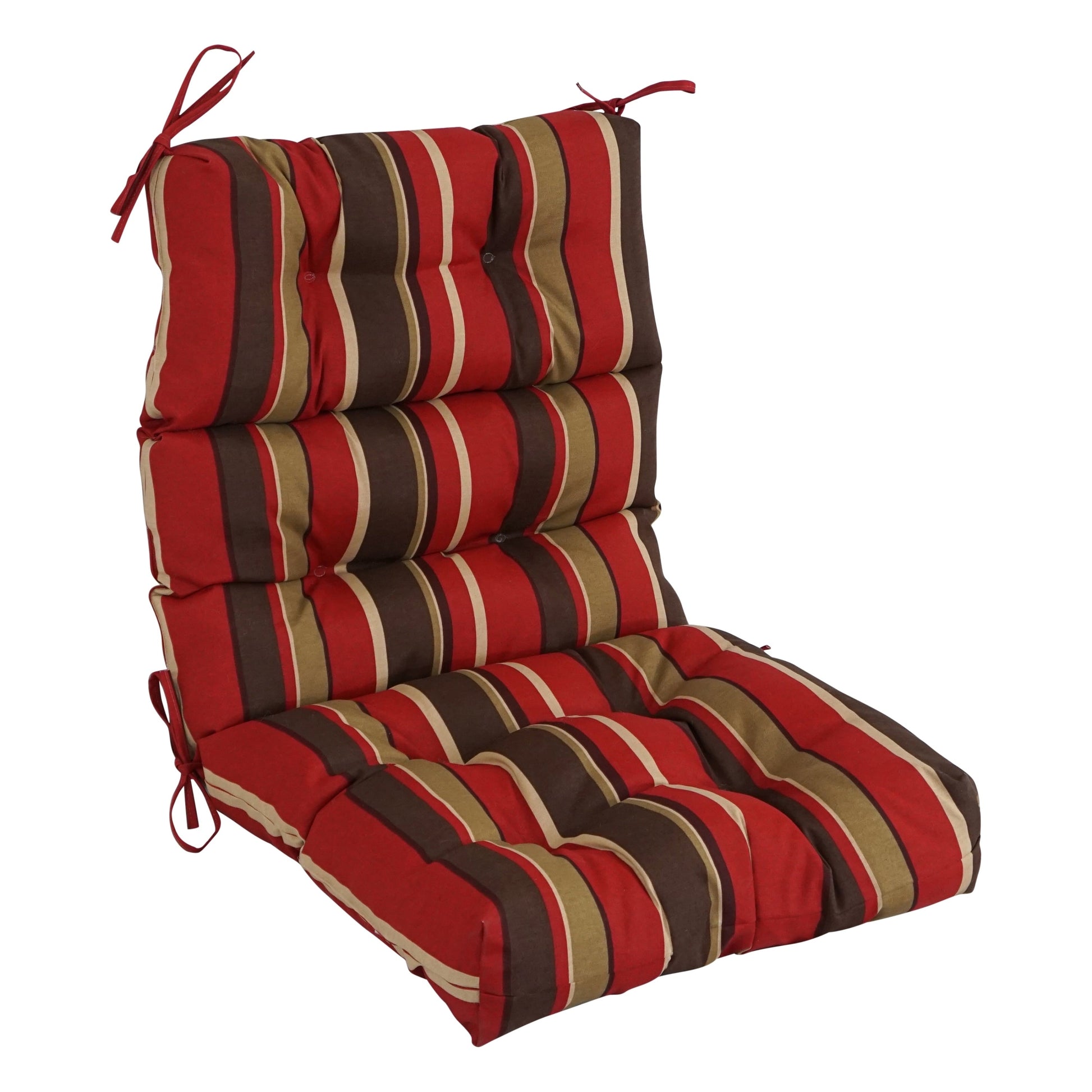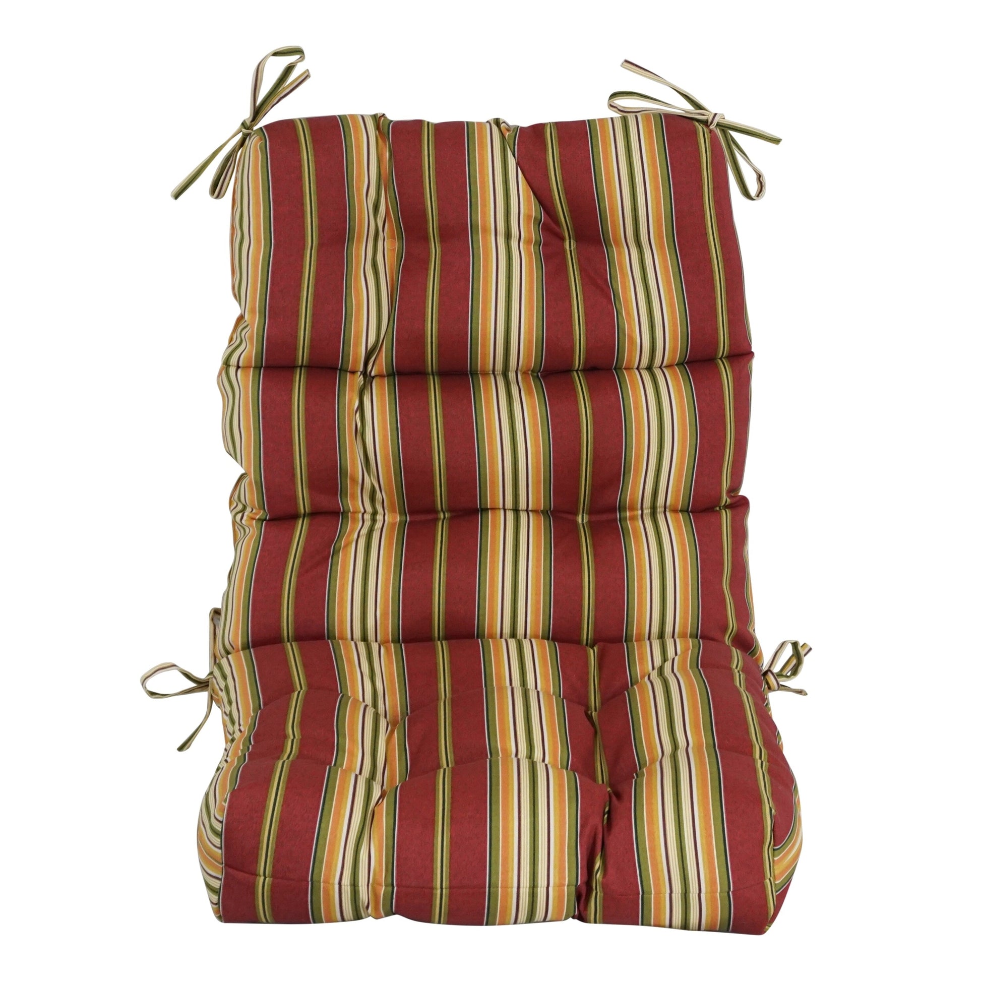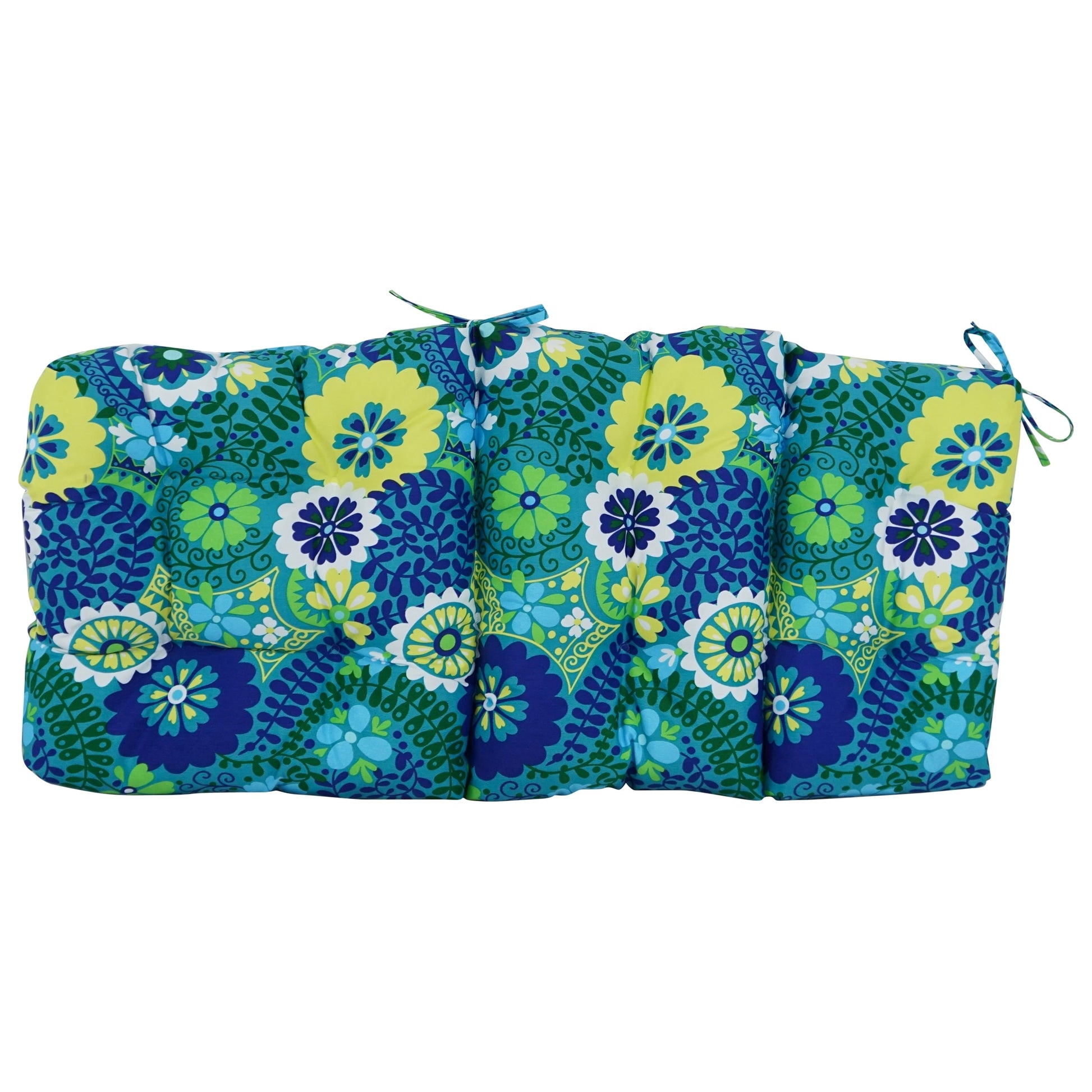 Add a touch of comfort and splash of color to your outdoor patio furnishings with this seat/back chair cushion. Crafted of durable, UV-resistant, and fade-resistant spun polyester outdoor fabric, these cushions include a classic tufted design for ample cushioned loft. This cushion can be easily secured to chairs using the attached fabric ties and is available is three sizes to allow a snug fit to a variety of patio and garden chairs. Available in a wide variety of fabric patterns ranging from the timeless to the trendy, it is easy to select an color option that is a perfect match for your existing outdoor style.