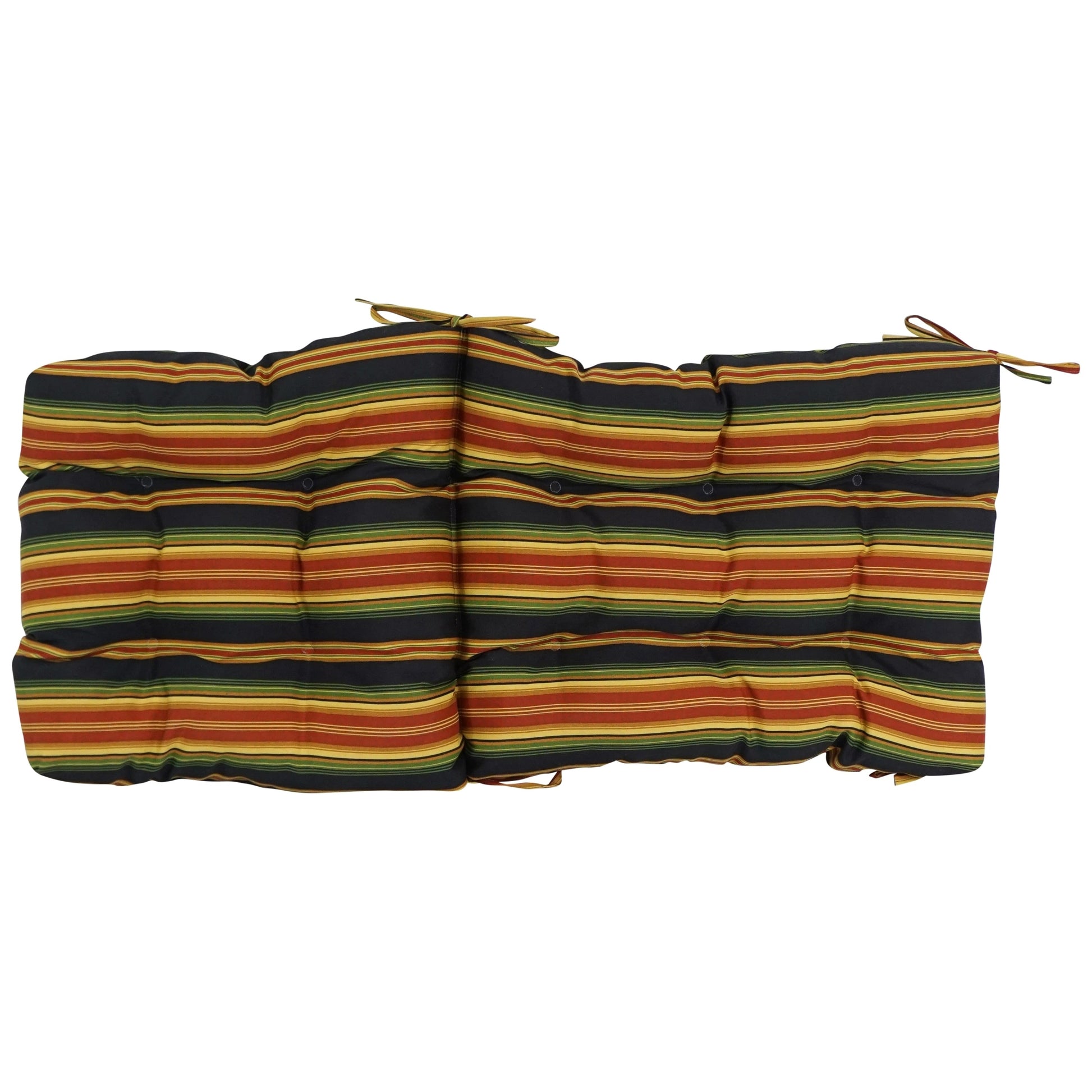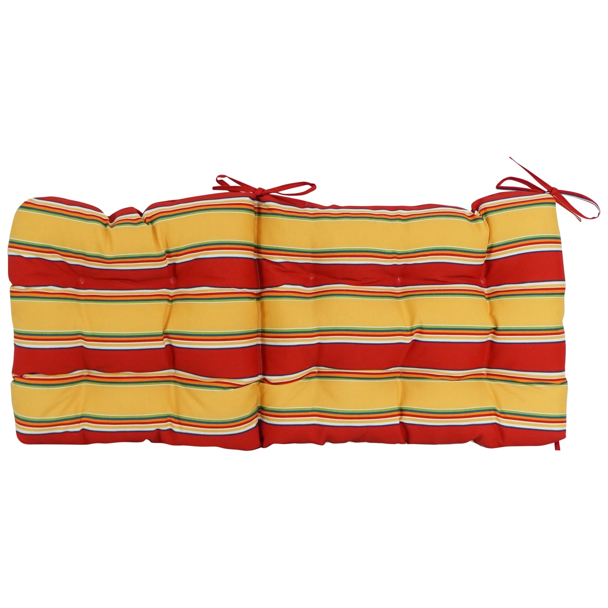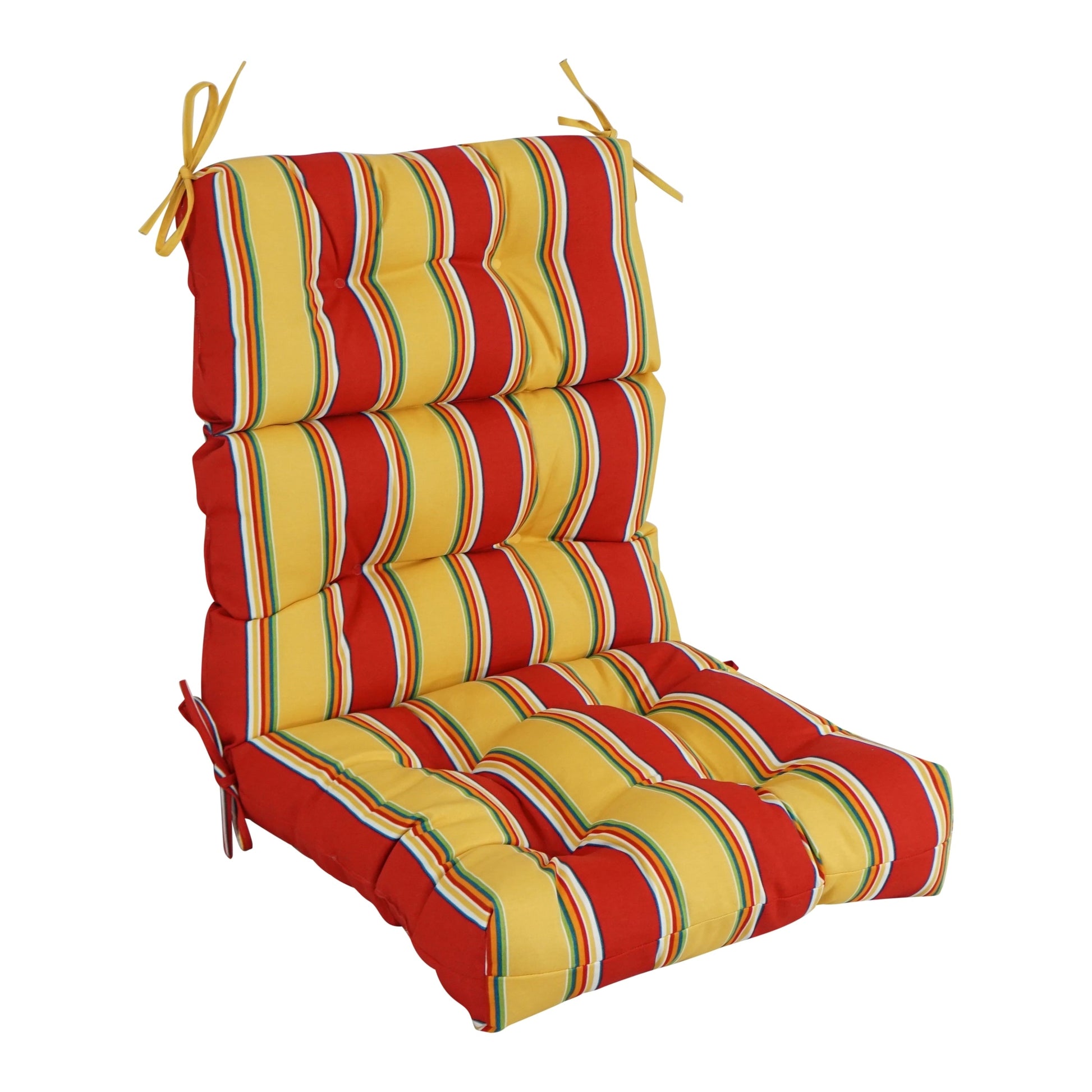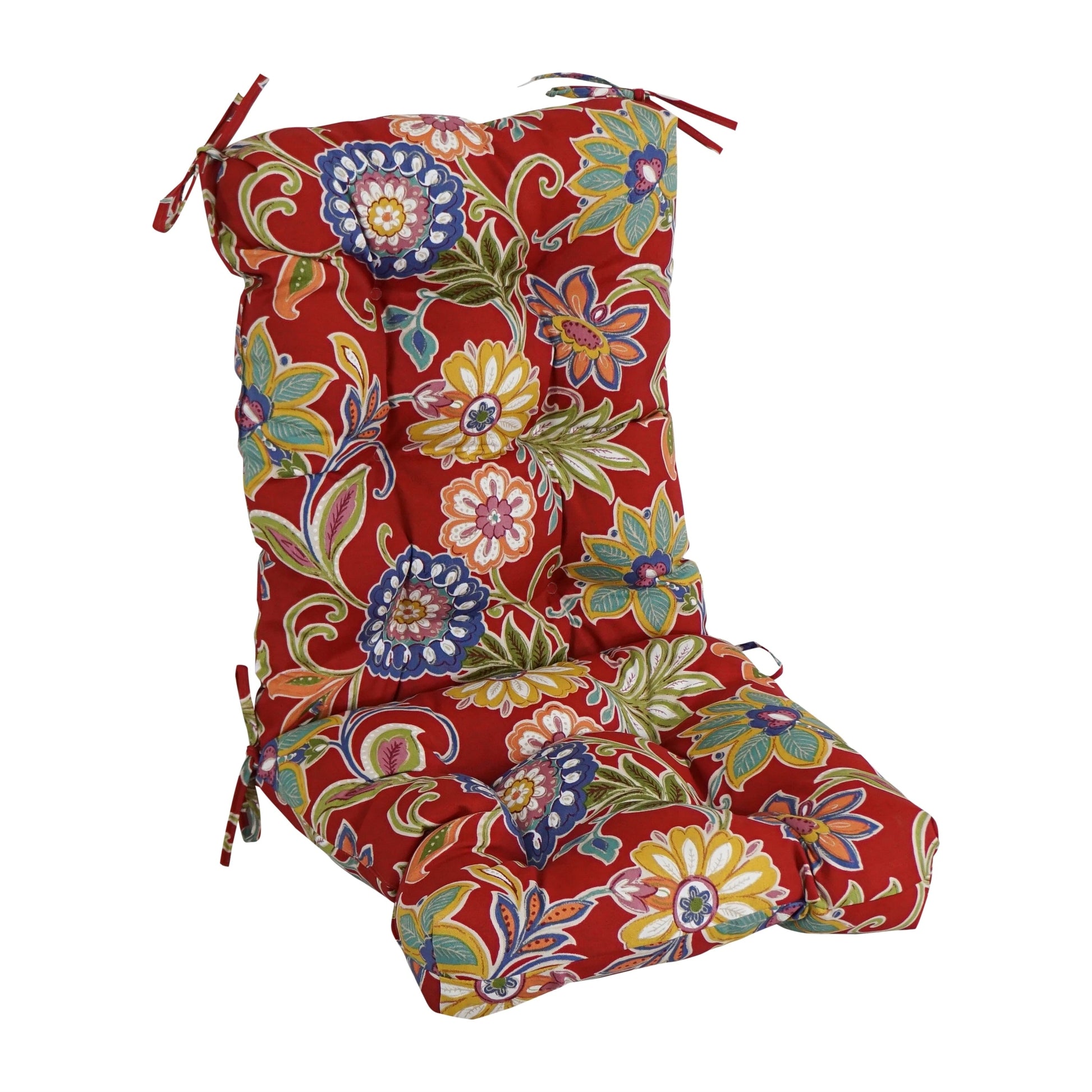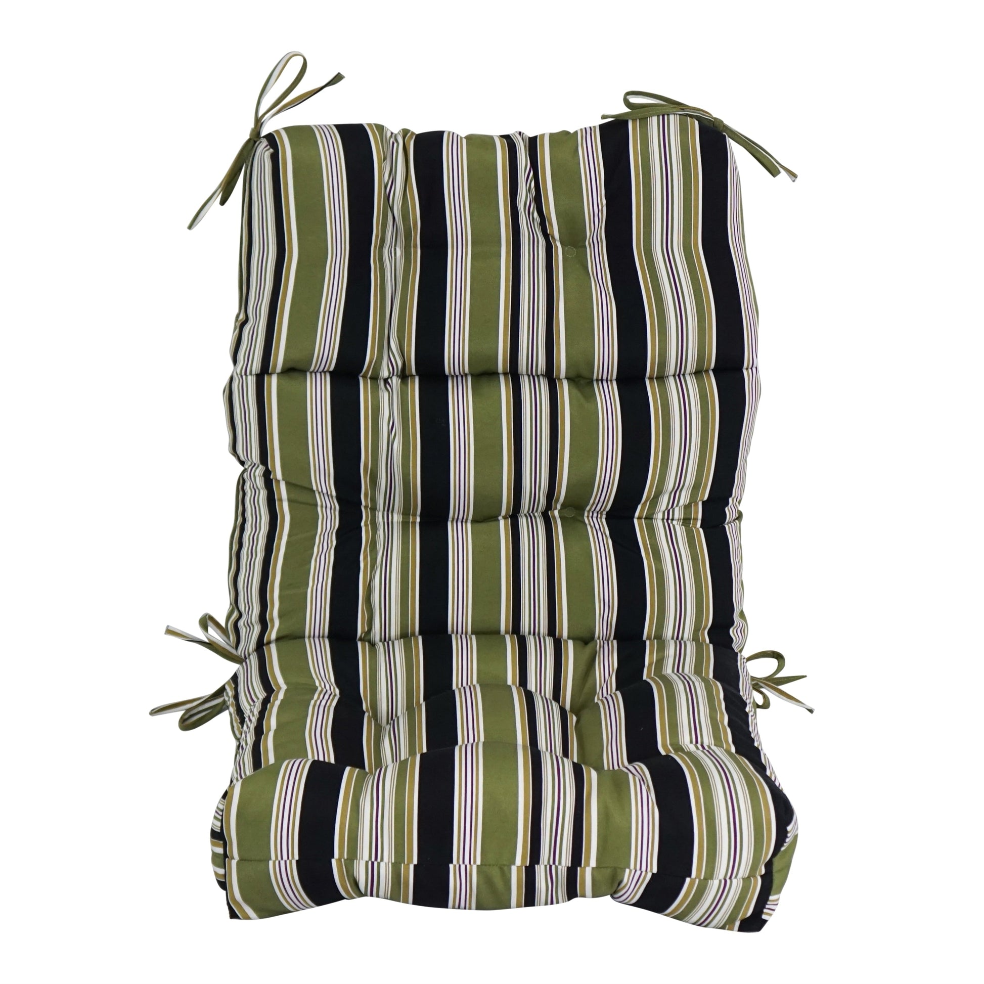 Add a touch of comfort and splash of color to your outdoor patio furnishings with this seat/back chair cushion. Crafted of durable, UV-resistant, and fade-resistant spun polyester outdoor fabric, these cushions include a classic tufted design for ample cushioned loft. This cushion can be easily secured to chairs using the attached fabric ties and is available is three sizes to allow a snug fit to a variety of patio and garden chairs. Available in a wide variety of fabric patterns ranging from the timeless to the trendy, it is easy to select an color option that is a perfect match for your existing outdoor style.