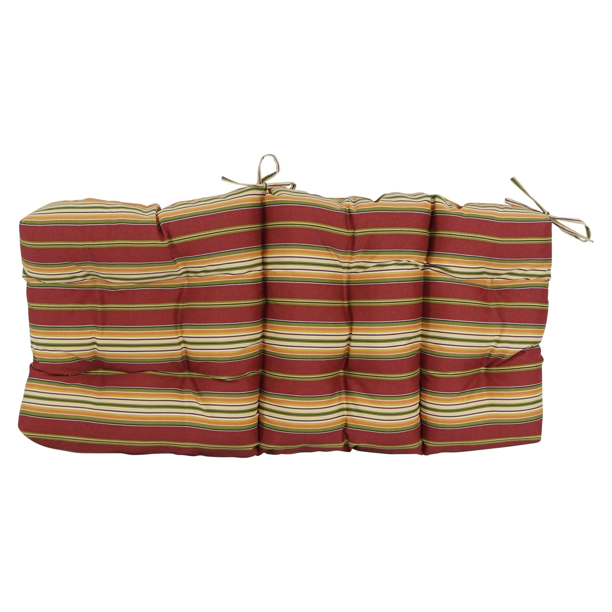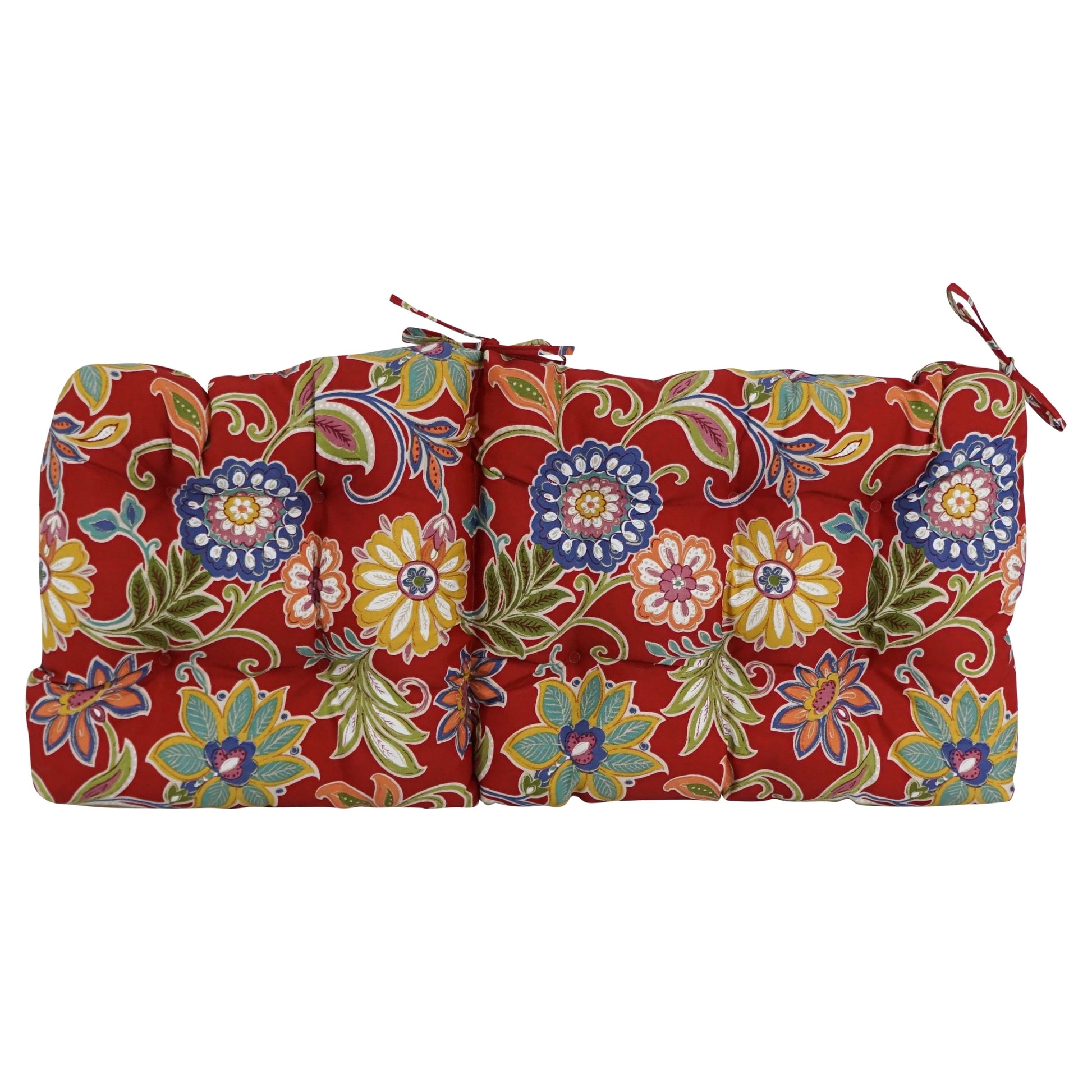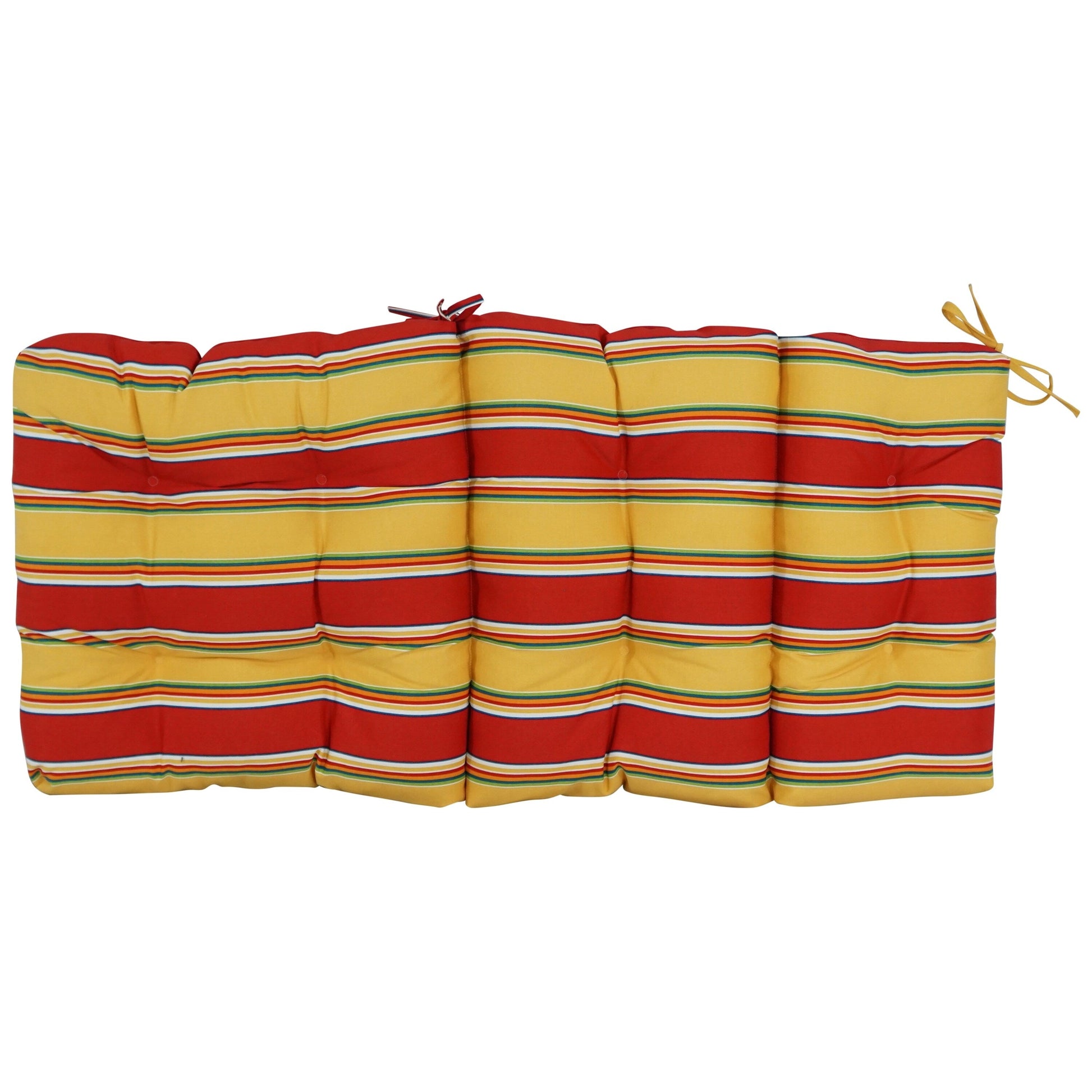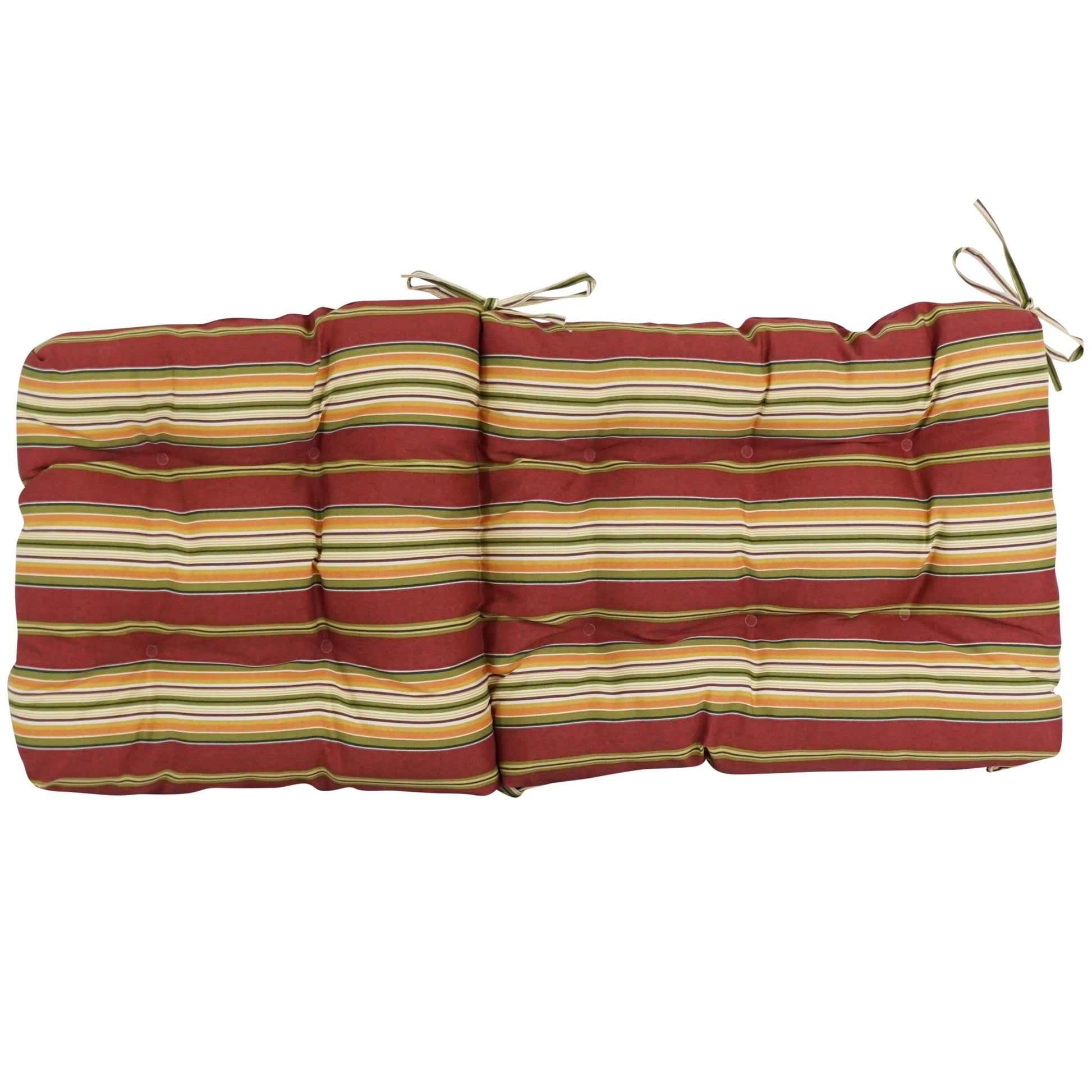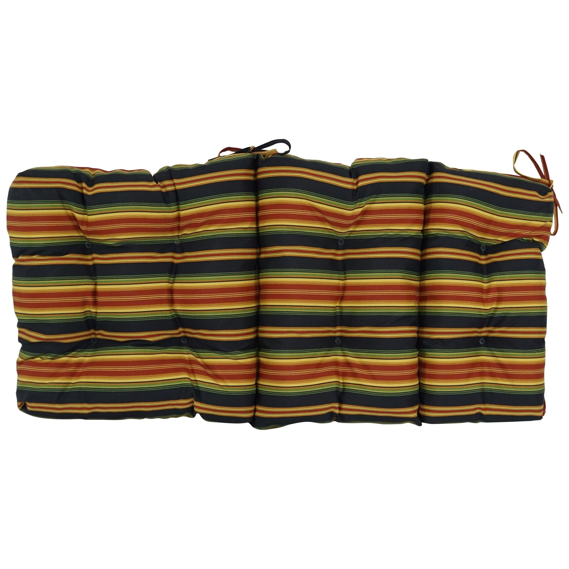 Add a touch of comfort and splash of color to your outdoor patio furnishings with this seat/back chair cushion. Crafted of durable, UV-resistant, and fade-resistant spun polyester outdoor fabric, these cushions include a classic tufted design for ample cushioned loft. This cushion can be easily secured to chairs using the attached fabric ties and is available is three sizes to allow a snug fit to a variety of patio and garden chairs. Available in a wide variety of fabric patterns ranging from the timeless to the trendy, it is easy to select an color option that is a perfect match for your existing outdoor style.