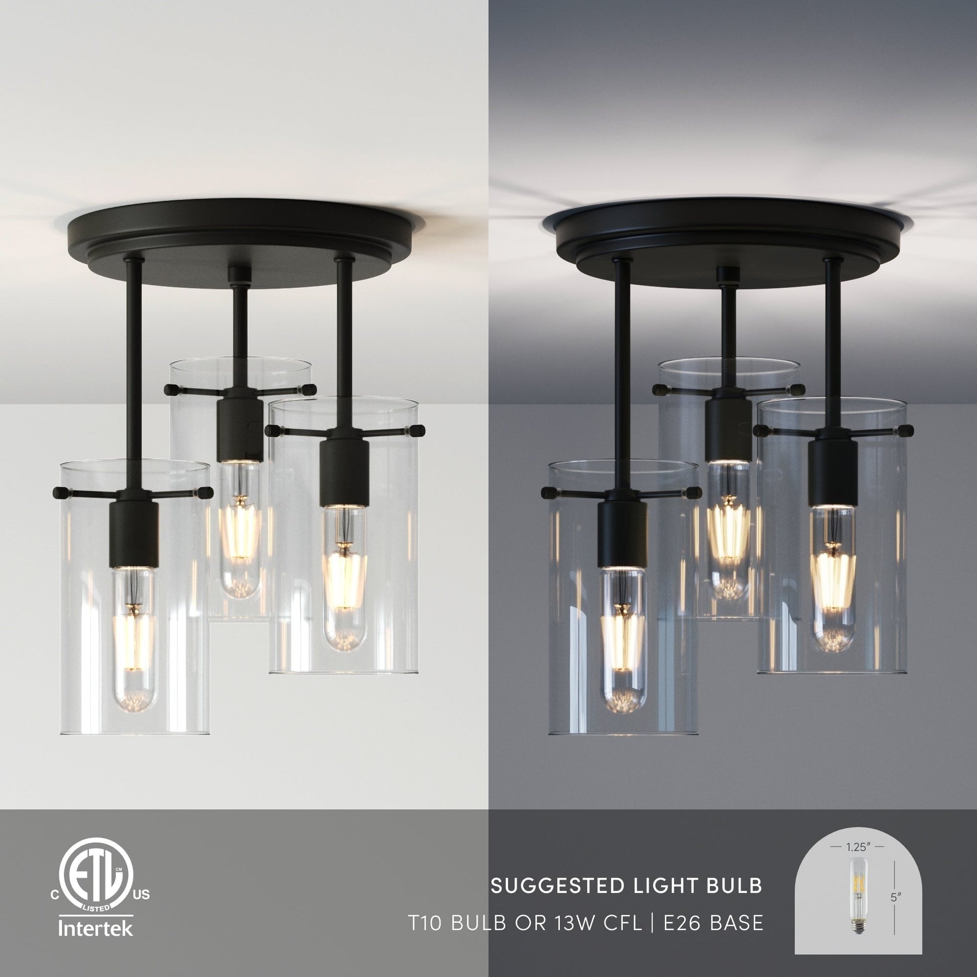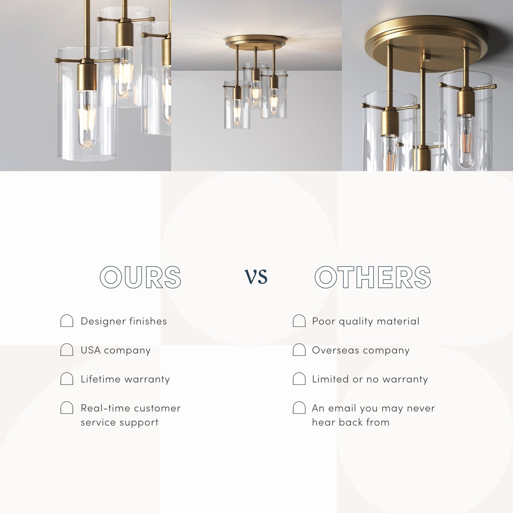 Nathan James Ophelia Semi Flush Mount Ceiling 3-Light Fixture with Glass Shade