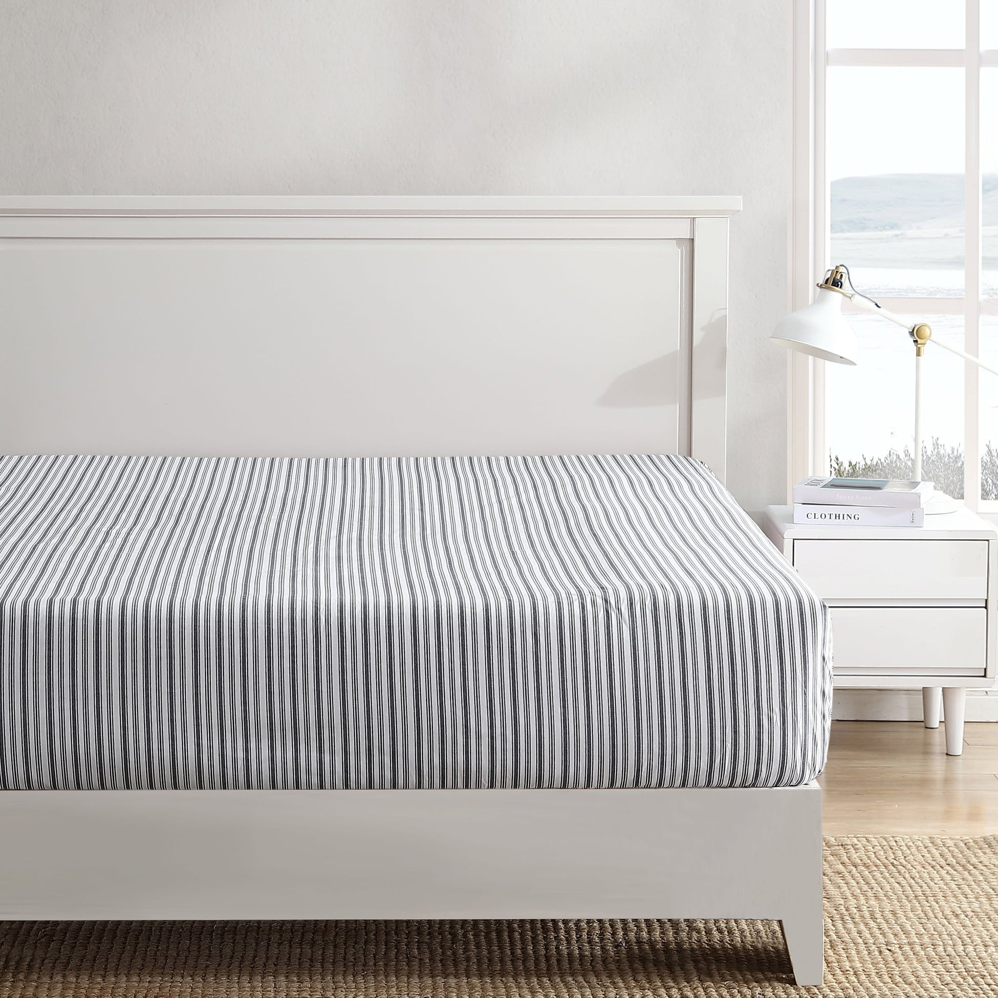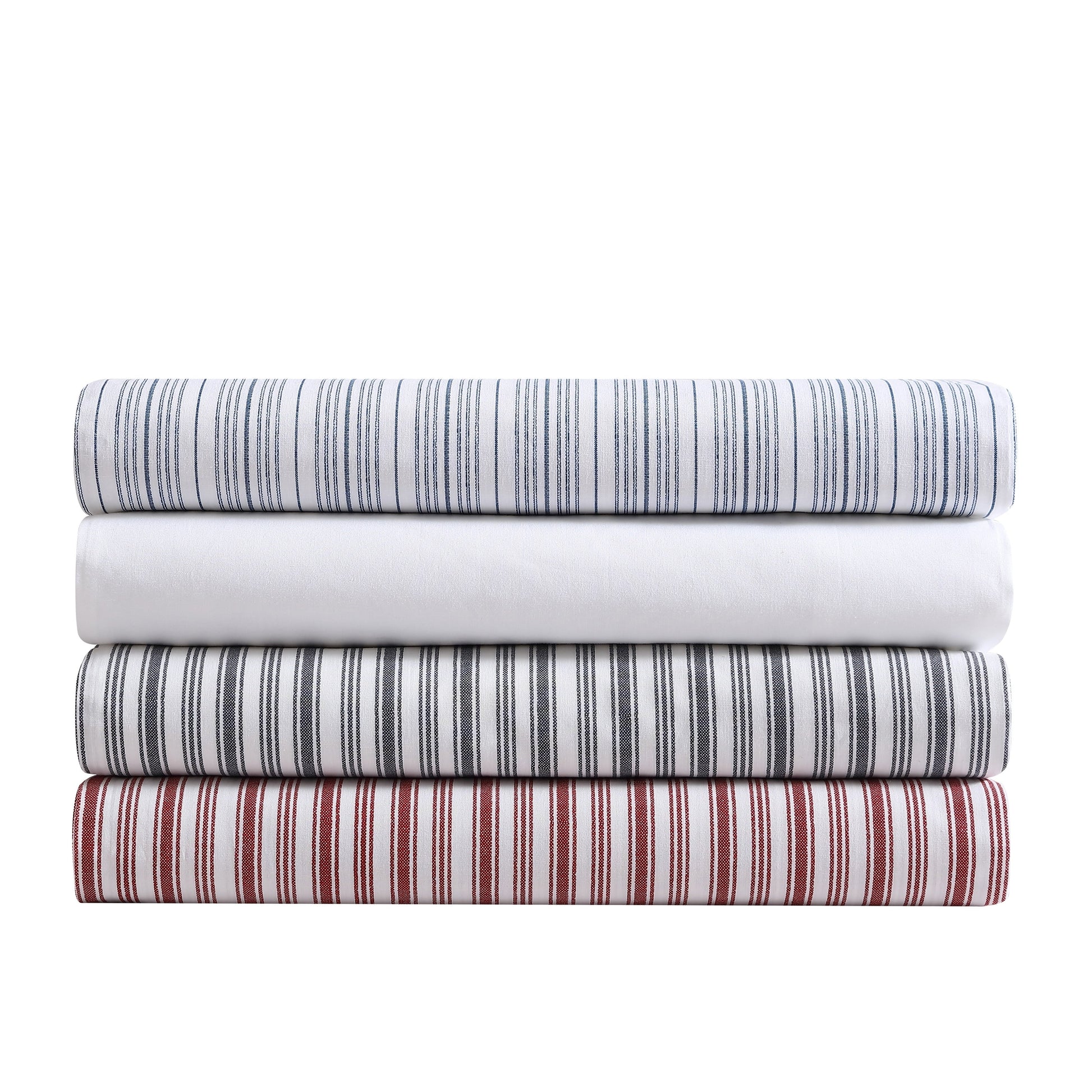 Tired of buying a sheet set and not use the flat sheet that you also paid for? Nautica is introducing an open stock fitted sheet. Here you can customize your purchase to buy only the items needed for that perfect night's sleep. The fitted sheet includes a 4 way fully elastic all around to keep in place, which fits mattress up to 18' (up to 15' for twin size). Choose between stylish stripes in various colors or solid white. Love your pattern of choice? Nautica also has made it available in other product types including pillowcase pairs, sheet sets and even a duvet cover- all sold separately. The fitted sheet is constructed of 100% cotton and made with a percale weave for a crisp feel. Fitted sheets are machine washable for easy care.