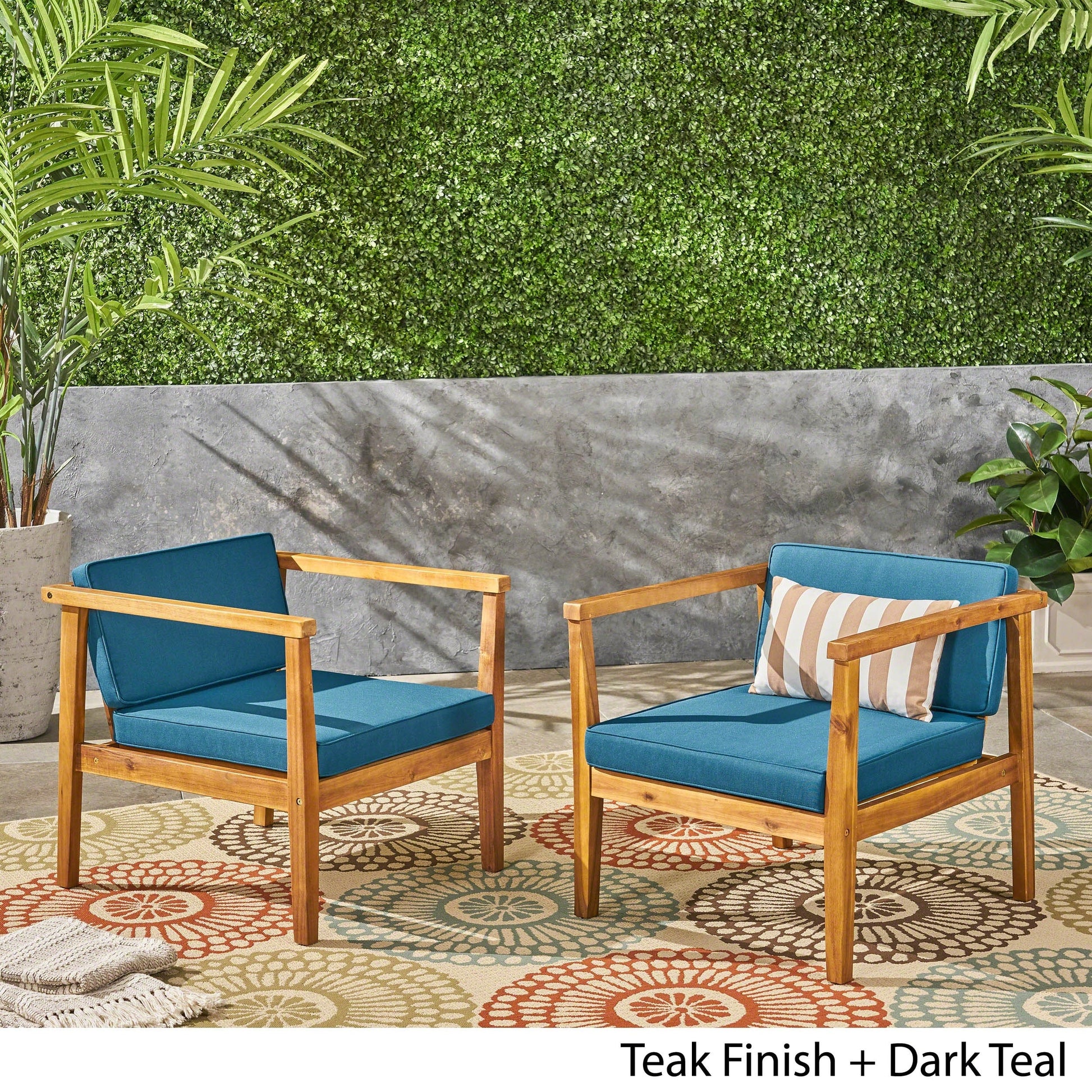 Newbury Outdoor Acacia Wood Club Chairs with Cushions (Set of 2) by Christopher Knight Home