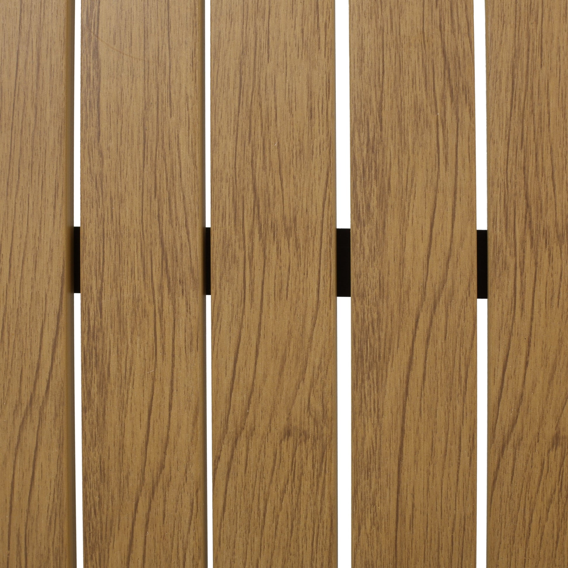 FAUX WOOD TABLETOP: This wood alternative is engineered from real wood, heat, pressure, and recycled plastic, giving it a low-maintenance yet stunning appearance. Our table uses this material to give the appearance of a beautiful wood look without the high upkeep.