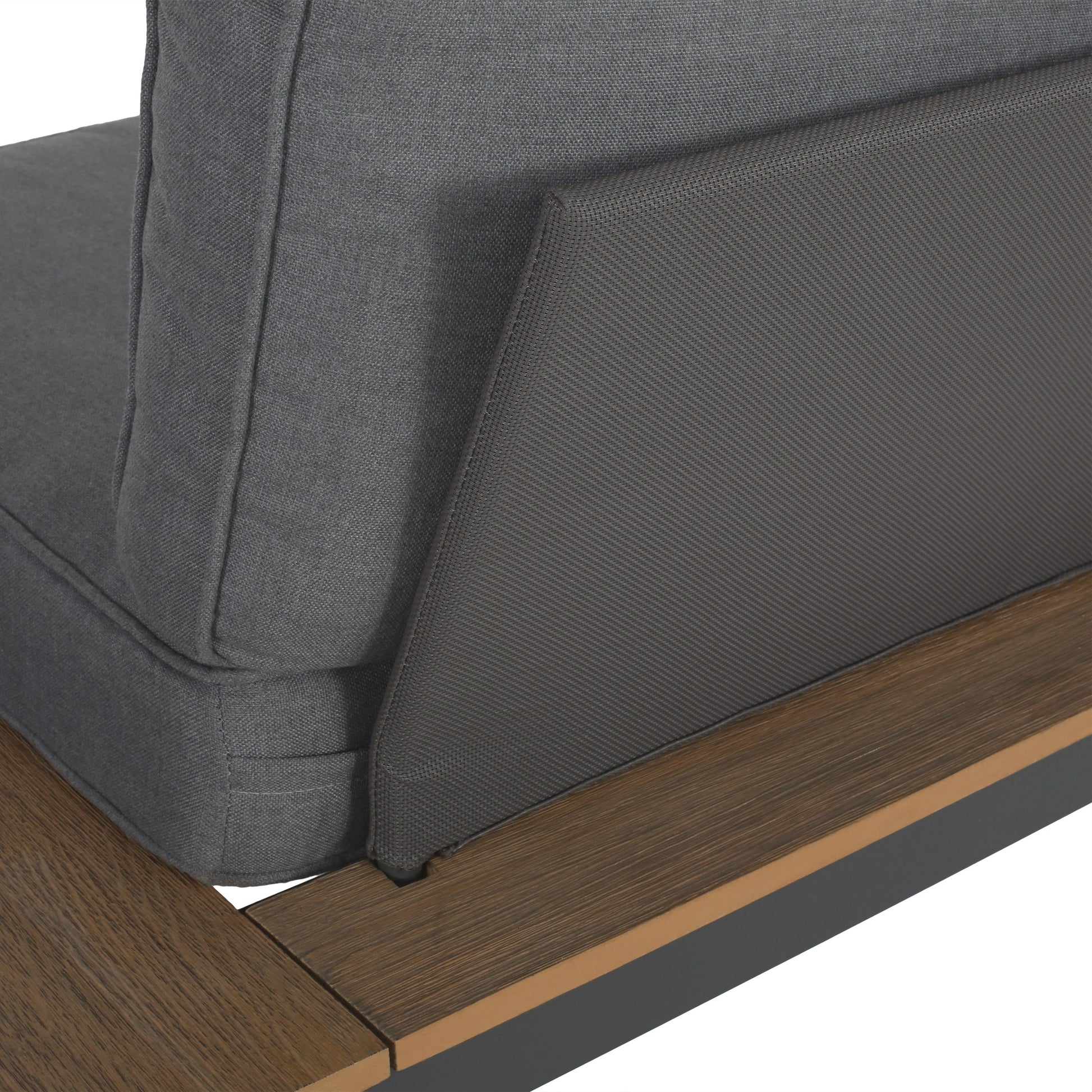Style your backyard or patio space with a gorgeous mid-century modern sectional sofa set that will instantly transform your decor. Featuring faux wood accents and a smooth wooden tabletop, this set offers convenient space to set your items such as a refreshing drink or a bowl of snacks. Not only does this set bring unparalleled style to your outdoor space but it also offers plush water-resistant cushions that provide ultimate comfort for you and your guests, allowing you to enjoy summer to the fullest.