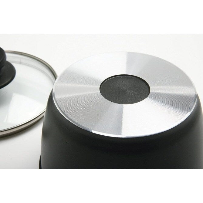 Simmer, boil, and stew your favorite dishes with this versatile, multi-purpose mini pot! Made of durable, heat responsive, commercial quality cast aluminum, this pot features a thick 5mm base for even heat distribution and more efficient cooking. Ideal for making sauces, boiling small portions of pasta or rice, or heating soups and stews, this pot includes a nonstick finish to prevent food from sticking, as well as a tempered glass lid to seal in heat or strain your food. Features a rounded interior for easy stirring and beating. Holds 1qt/4c/1.9L. Hand washing recommended.