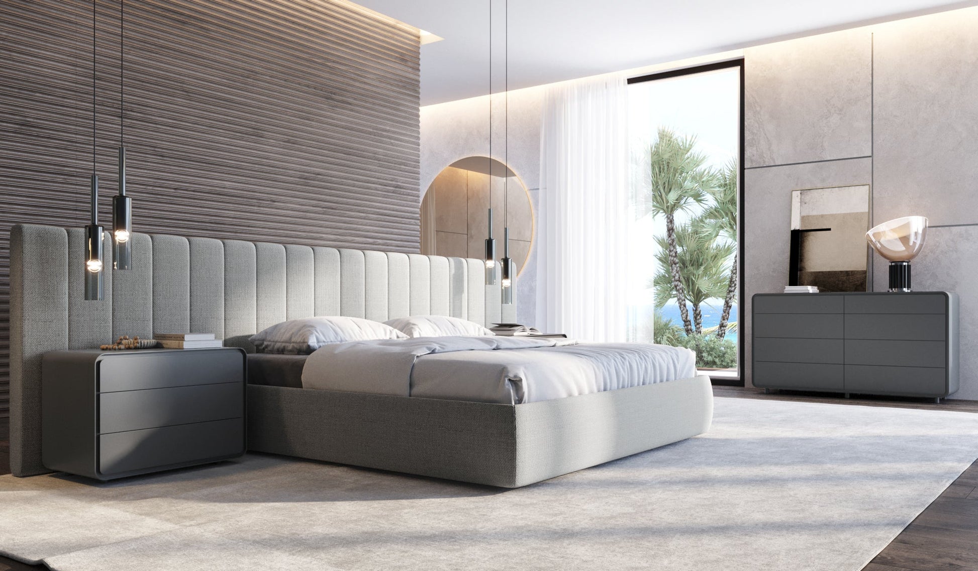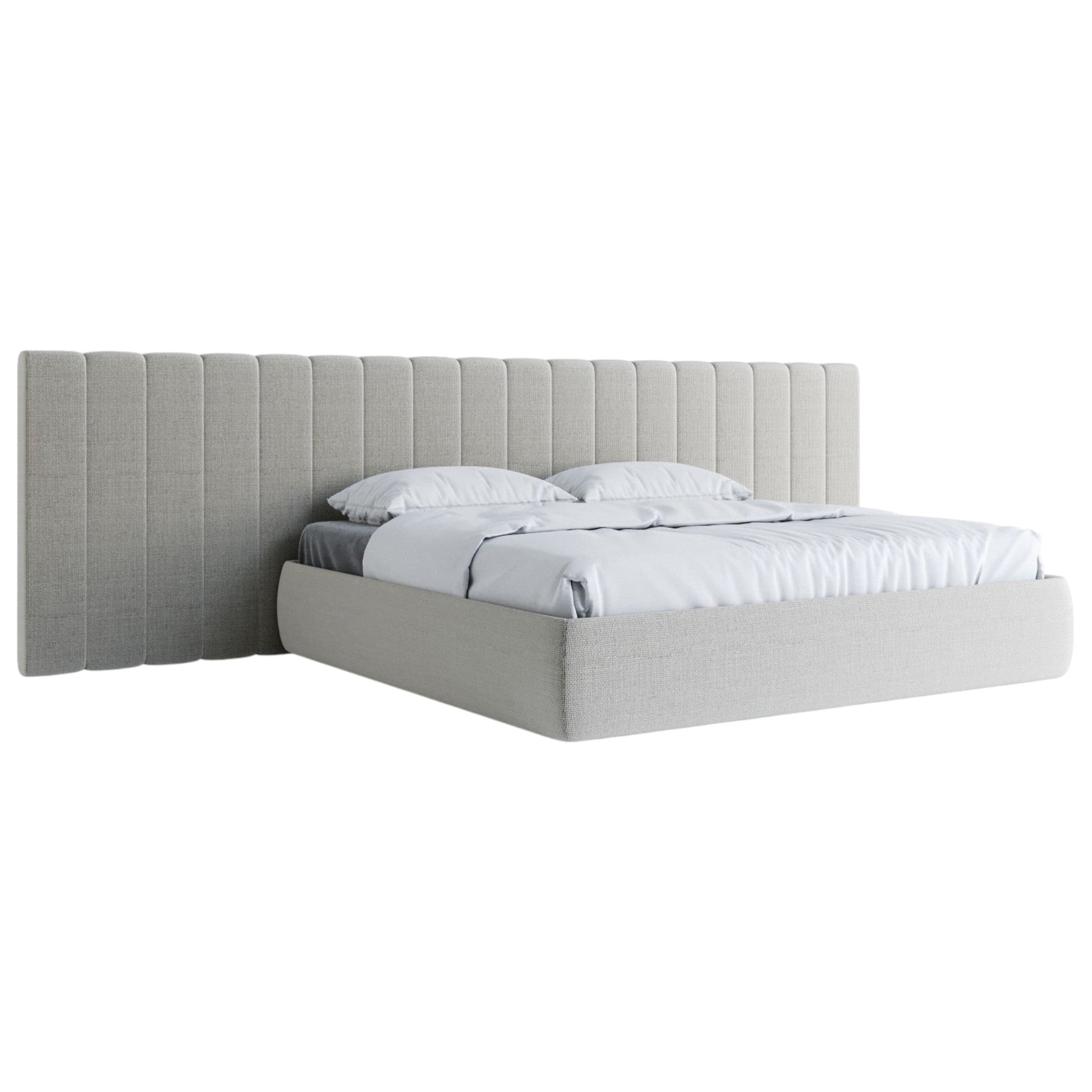 [description] Le lit king size Nuoro incarne la quintessence du design relaxant. Ce lit est doté d'une tête de lit extra-large et d'un cadre entièrement recouvert d'un tissu luxueux qui apporte une touche chaleureuse à toute chambre contemporaine. Associez-le à des tables de chevet, un tapis, du linge de lit et votre matelas préféré pour créer la chambre de vos rêves.
