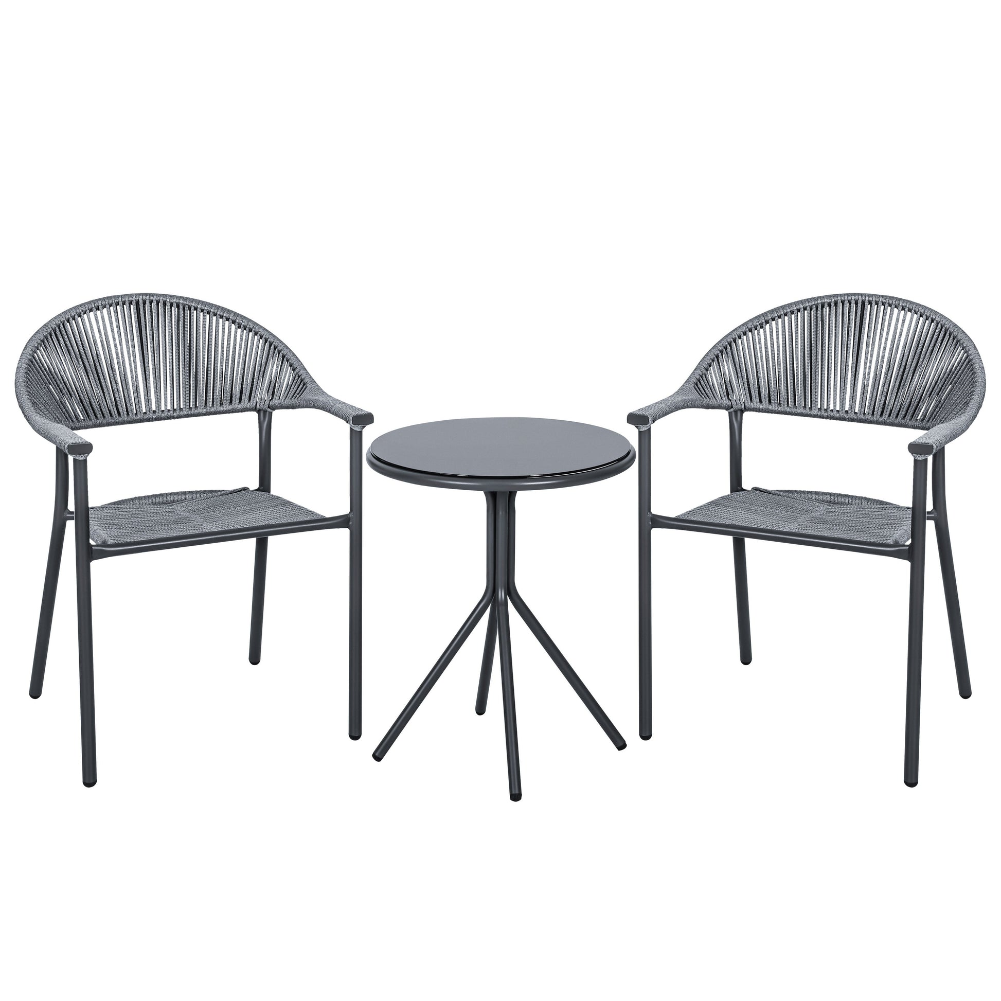 NUU GARDEN 3-piece Patio Rope Wicker Bistro Set