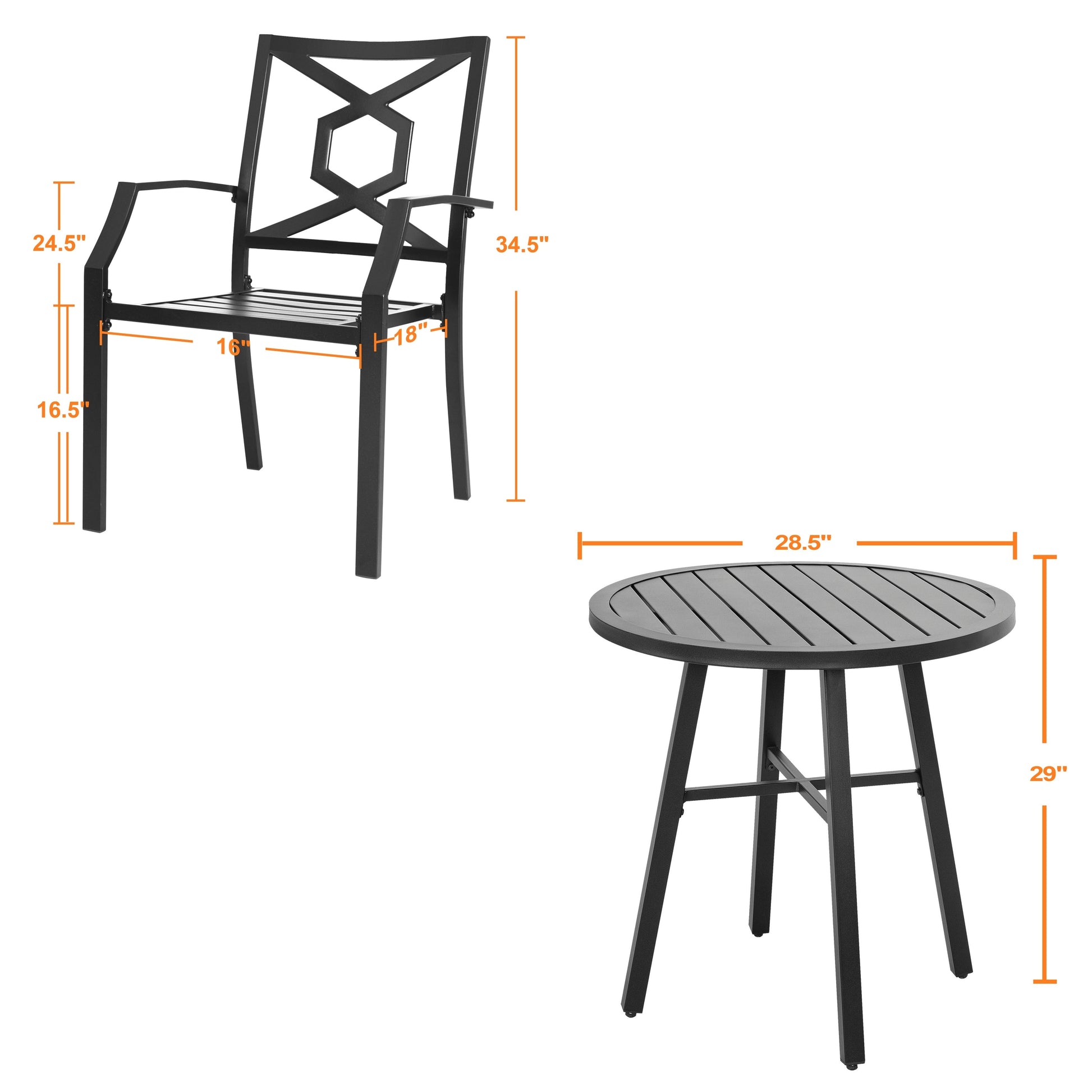 - Elegant Design: The black powder-coated finish of this outdoor iron chair set showcases a distinctive design for an added touch of sophistication to your outdoor decor.