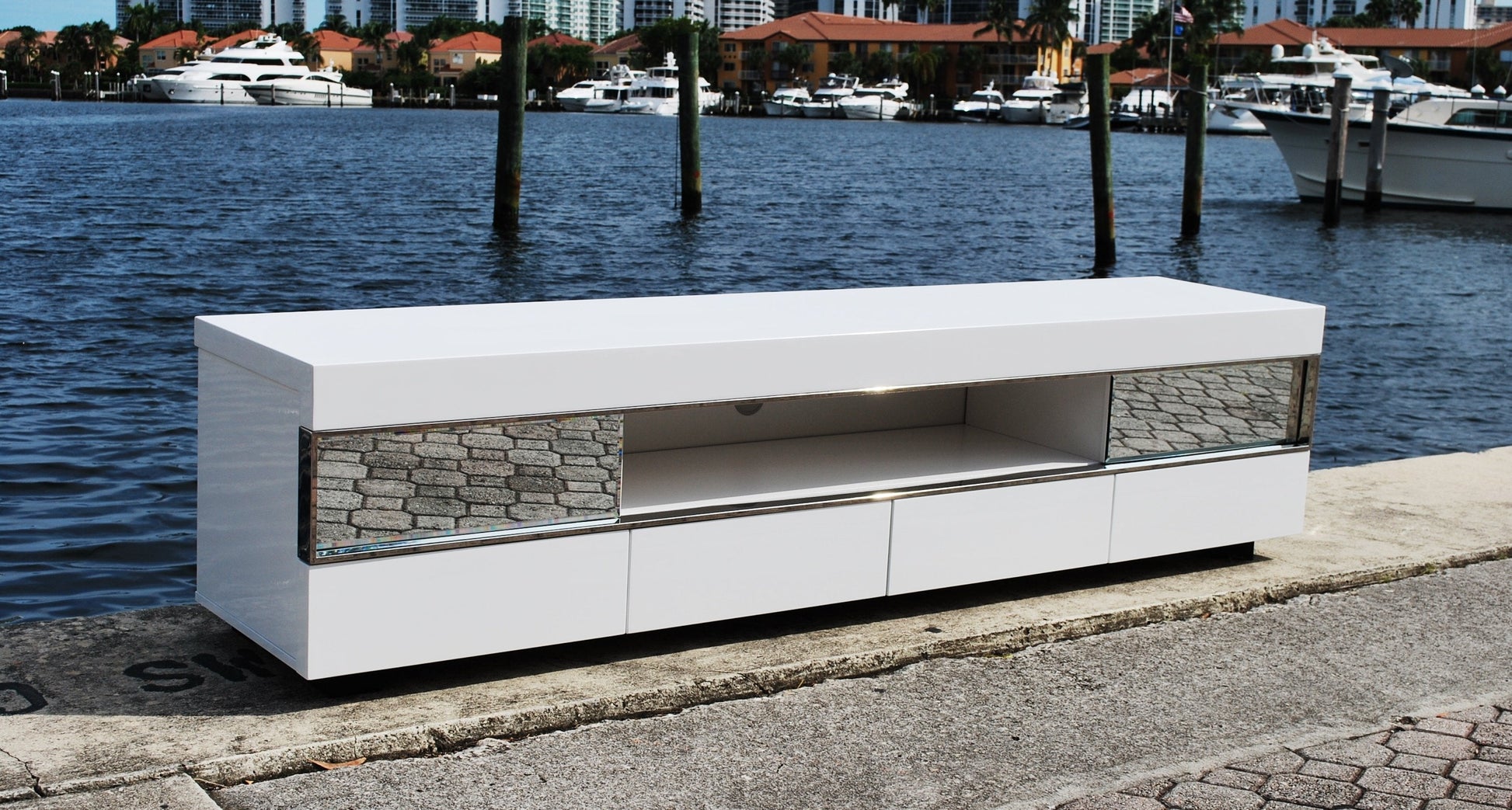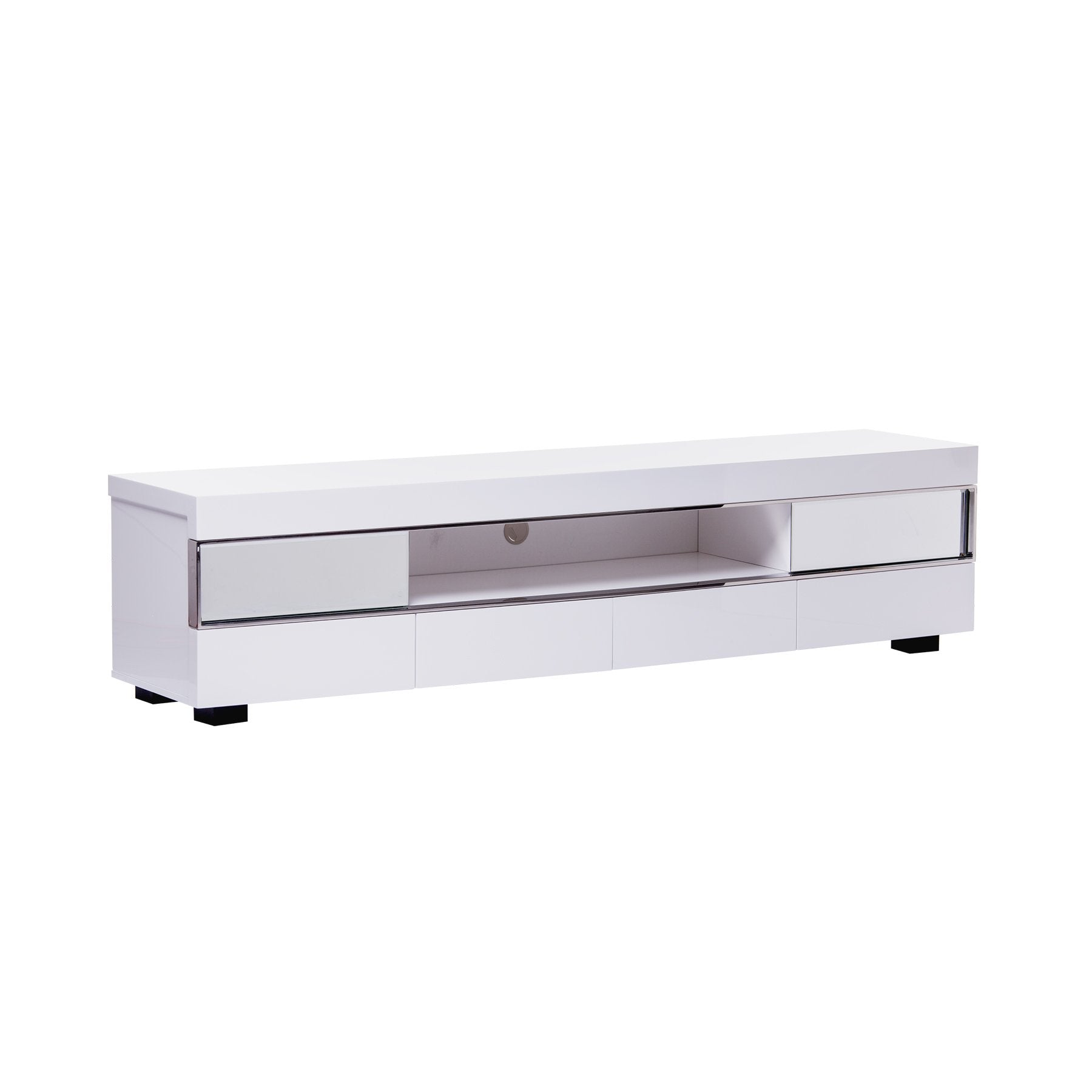 [description]Nuvola est un meuble TV au design sophistiqué qui allie différents matériaux et textures. Ce meuble est doté de tiroirs avec façades laquées blanc brillant et miroir, d'un grand espace pour le décodeur et de finitions en acier inoxydable poli. Idéal pour les salons où le blanc domine, il crée un espace moderne et épuré.[/description]