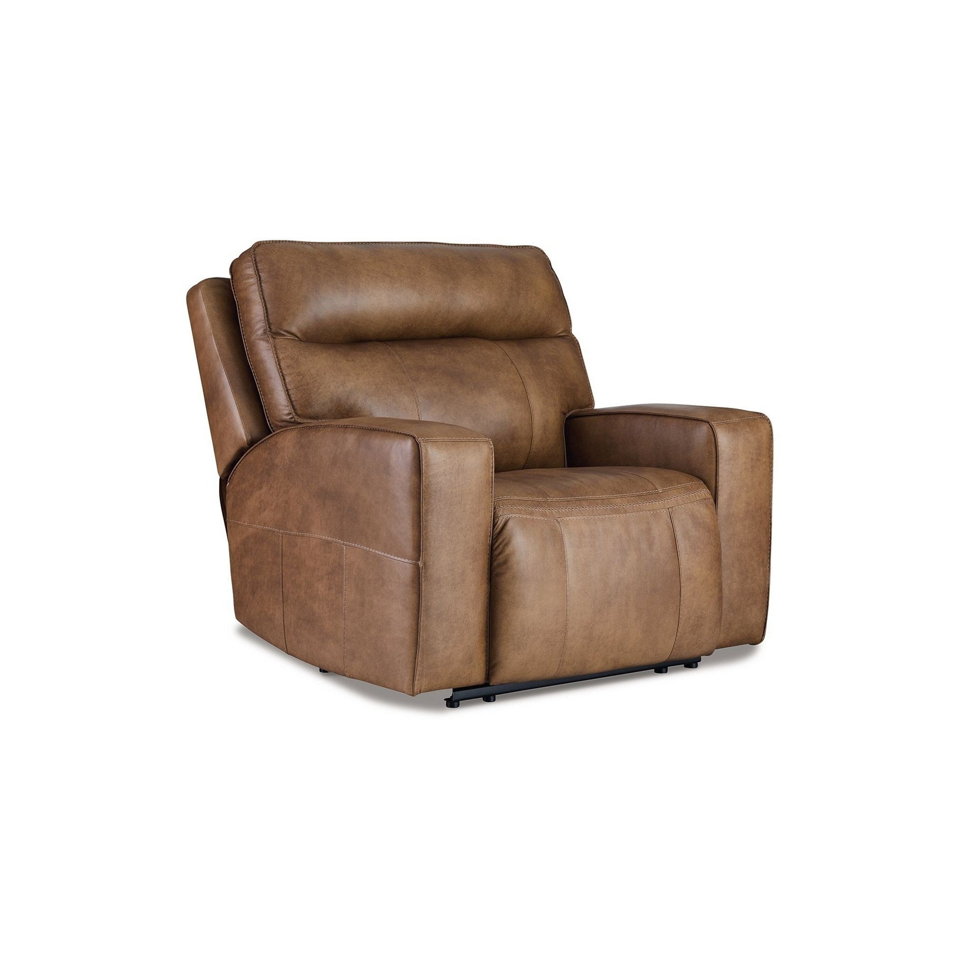 - Caramel brown top grain leather upholstery for rich, natural texture