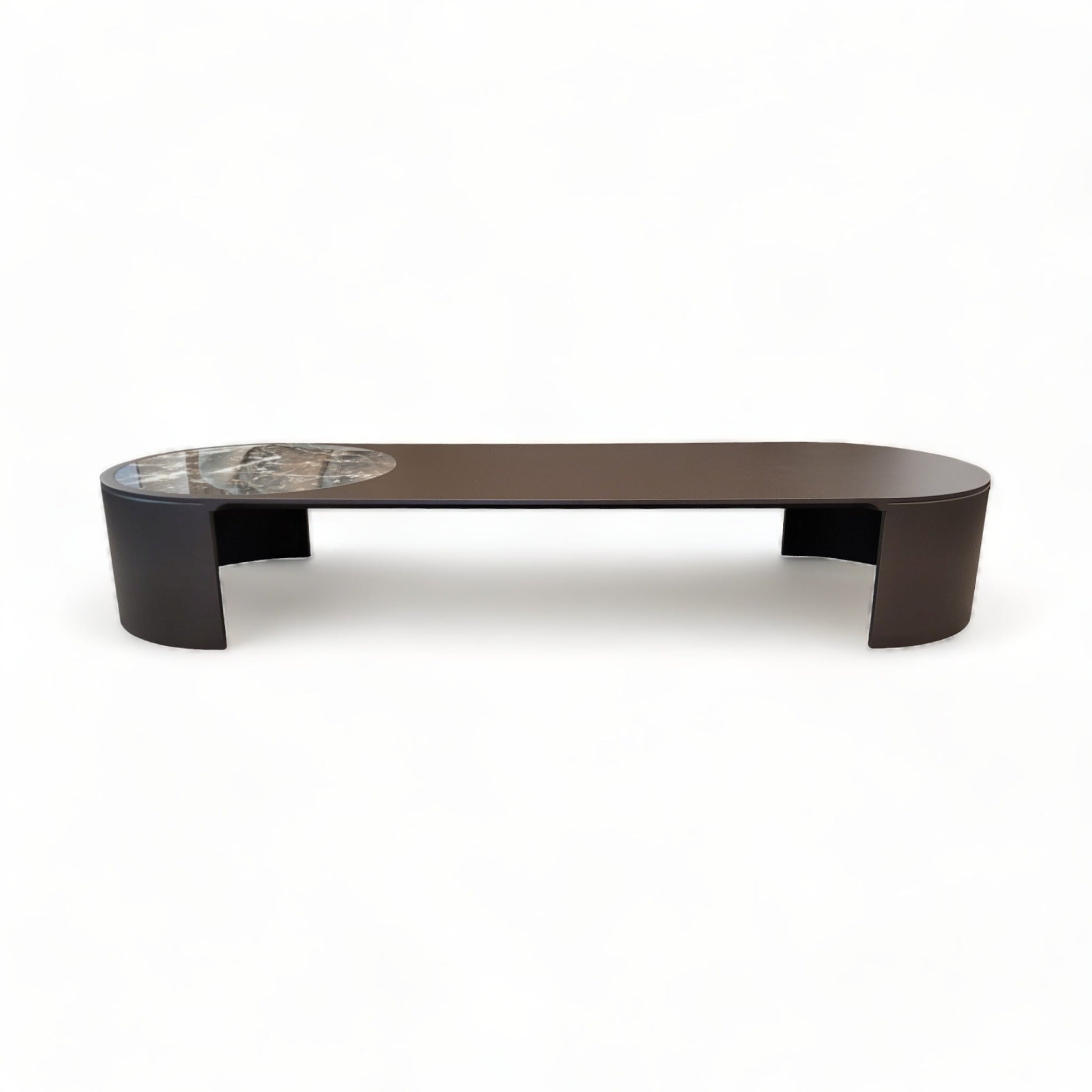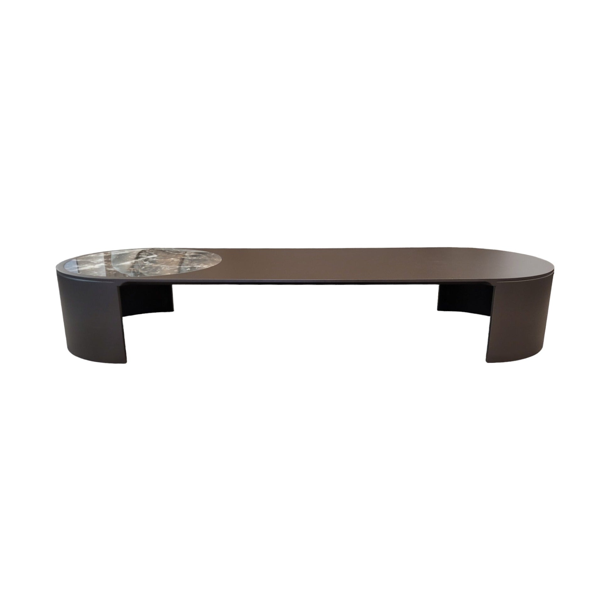 moderne et polyvalent laqué en laque métallique mate Cappuccino forme géométrique oblongue incrustation de plateau rond en céramique |