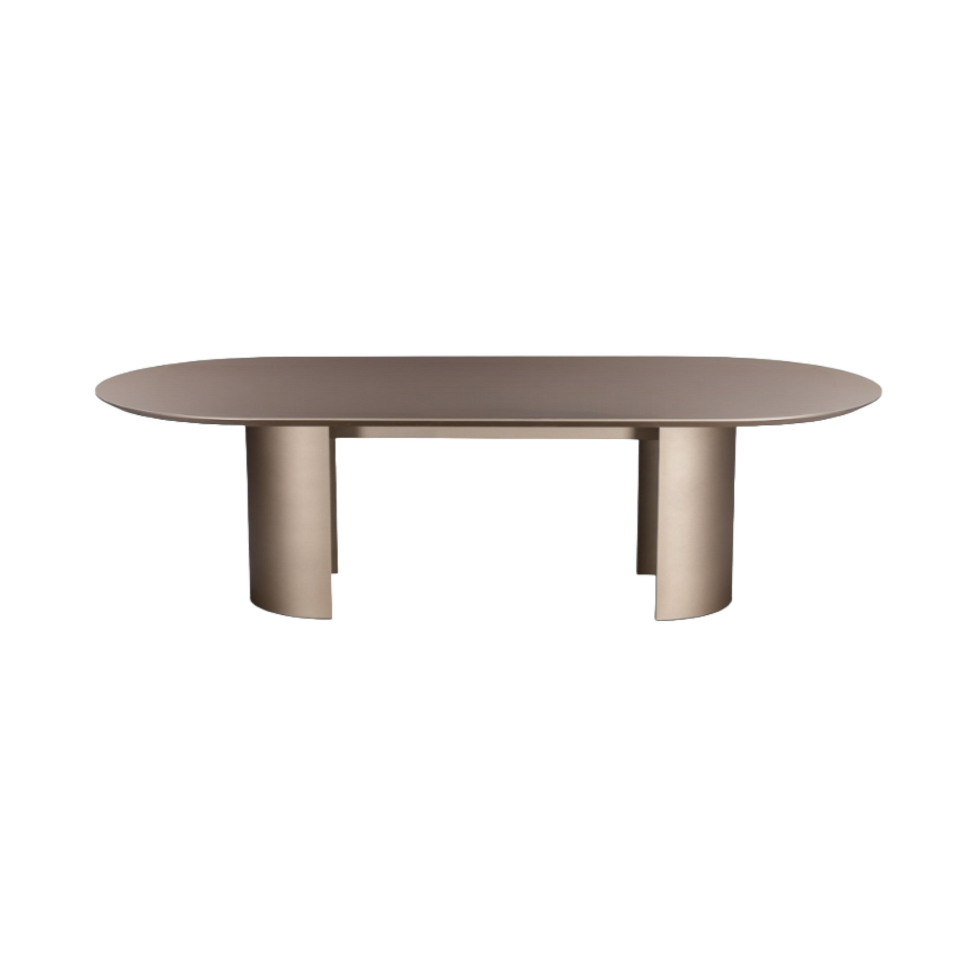 contemporain et élégant sommet de forme oblongue laque métallique mate urano plateau en verre coloré Base en laque métallisée mate il peut accueillir jusqu'à 10 personnes |