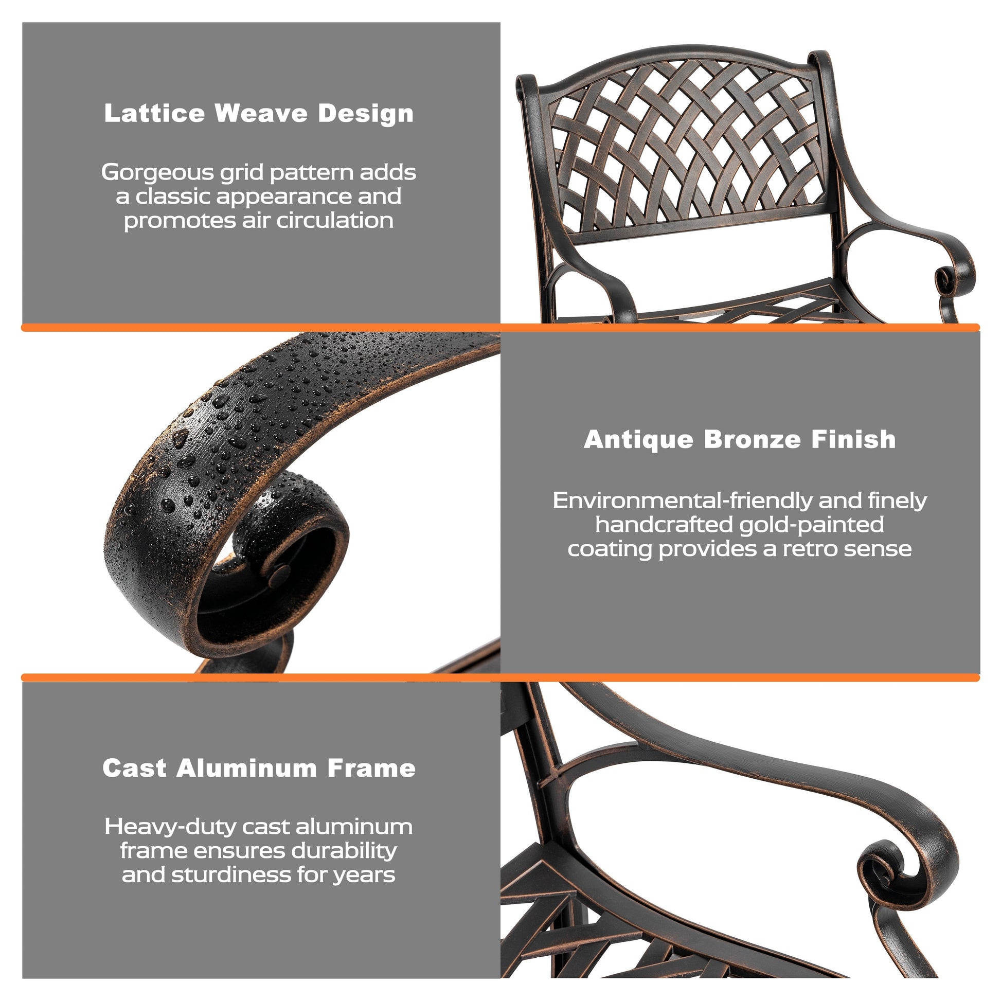 - Durable Cast Aluminum: Solid, rust, and corrosion resistant, cast aluminum effectively copes with a variety of outdoor environments and still maintains its original shape and performance in all areas.