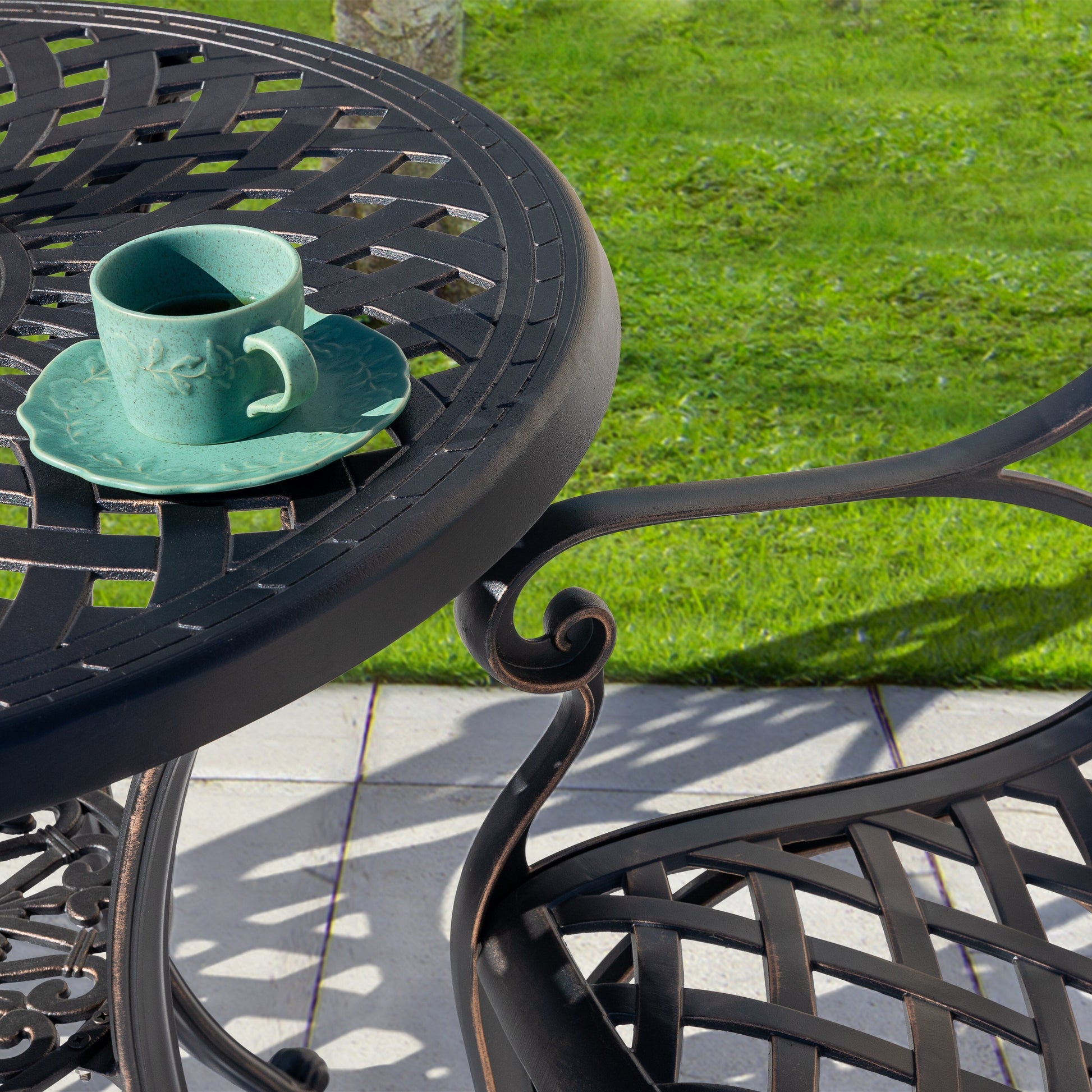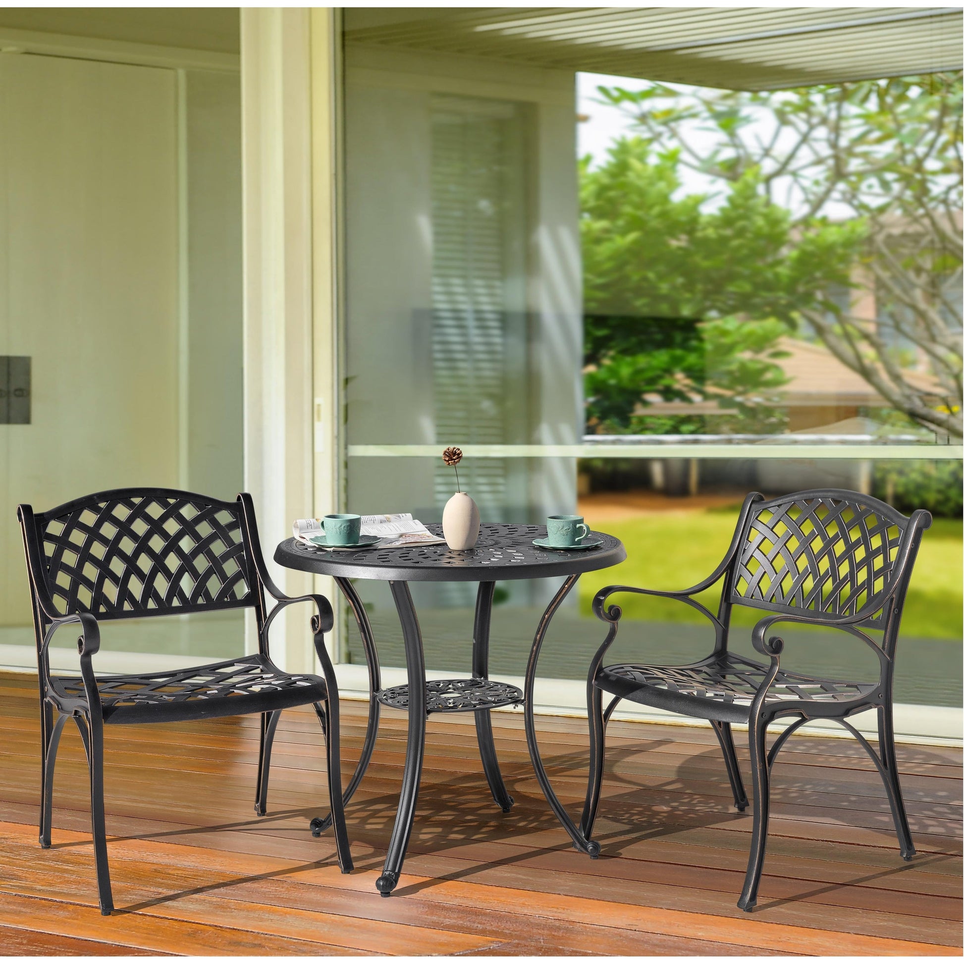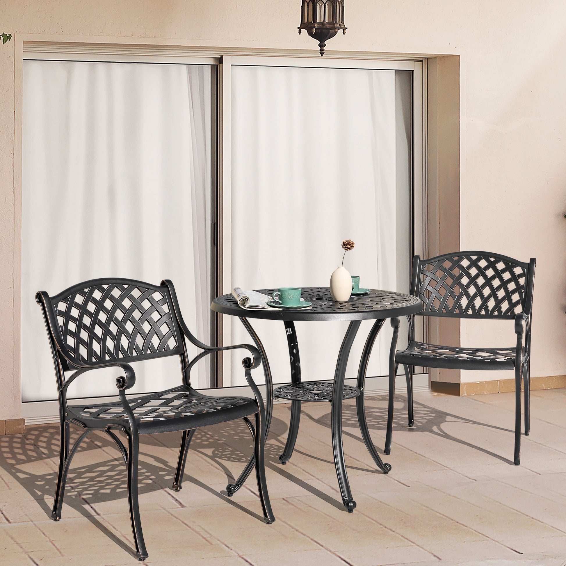 Outdoor 2-Person Cast Aluminum Bistro Set with Umbrella Hole