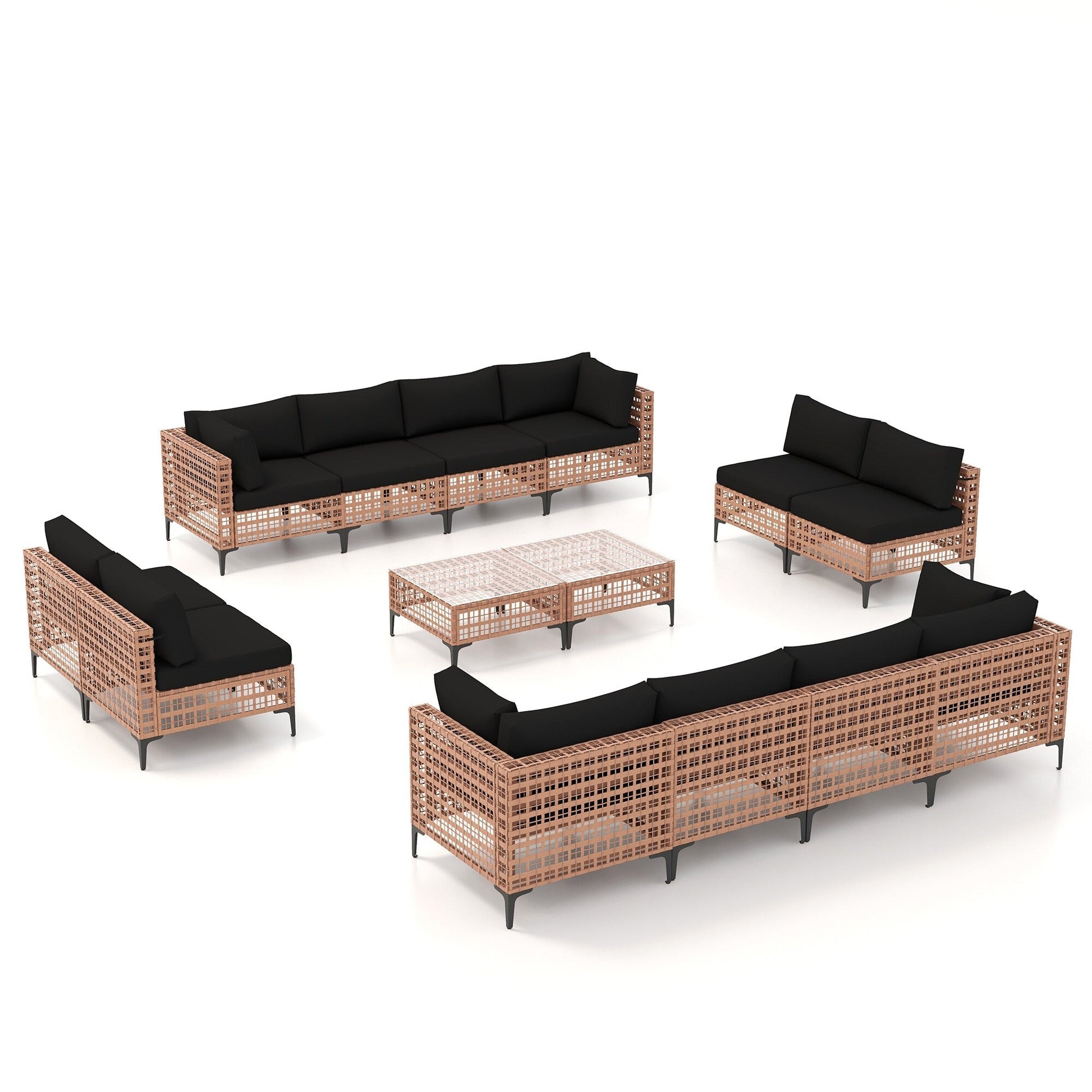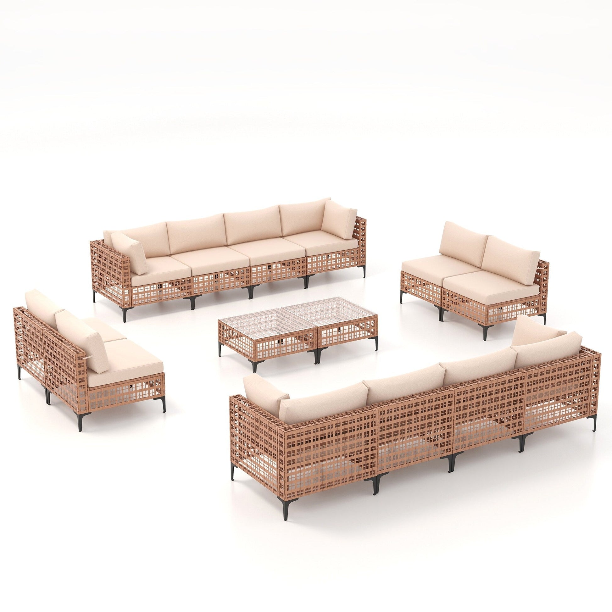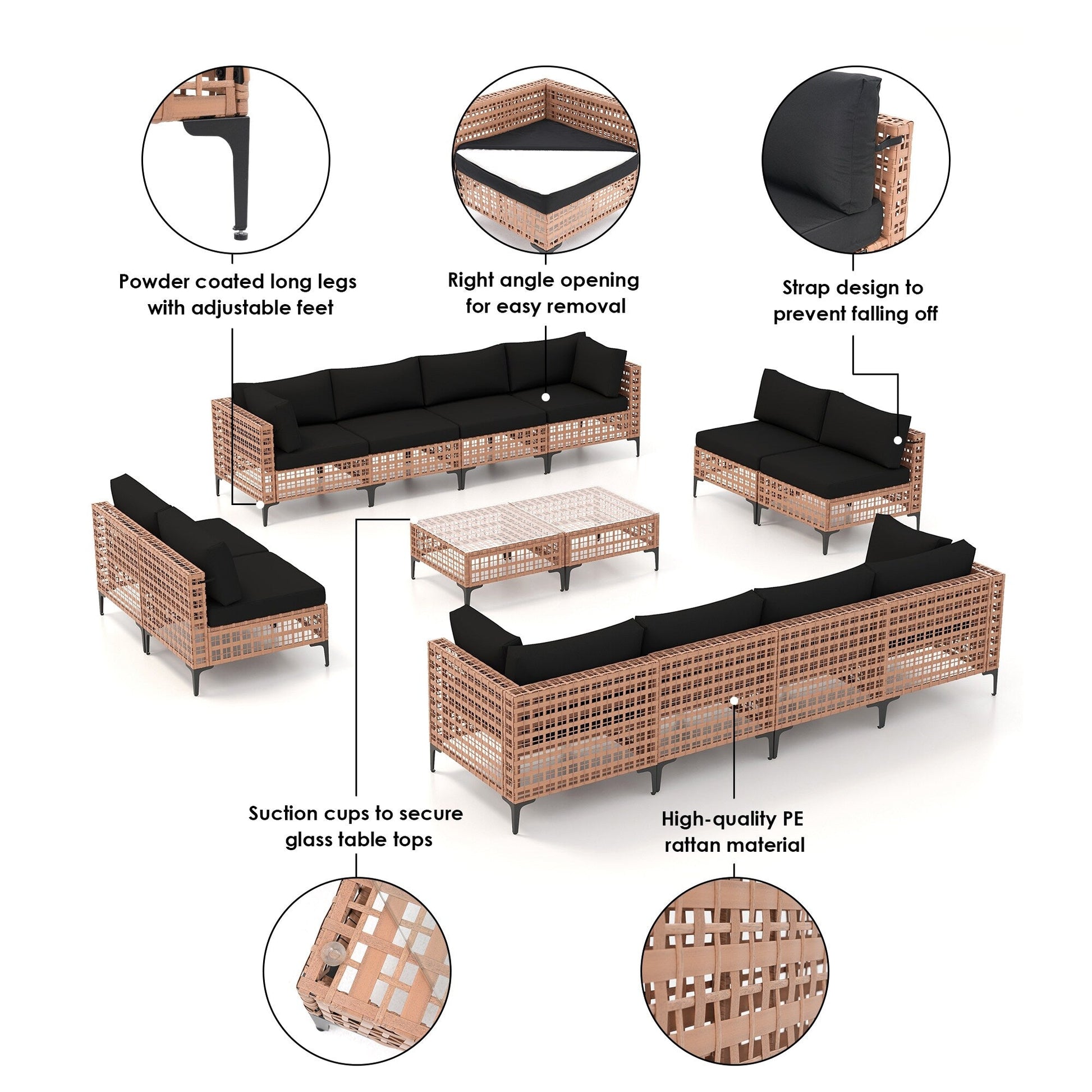 Glass coffee table: The coffee table is made of rattan base + tempered glass countertop, which combines beauty and practicality.