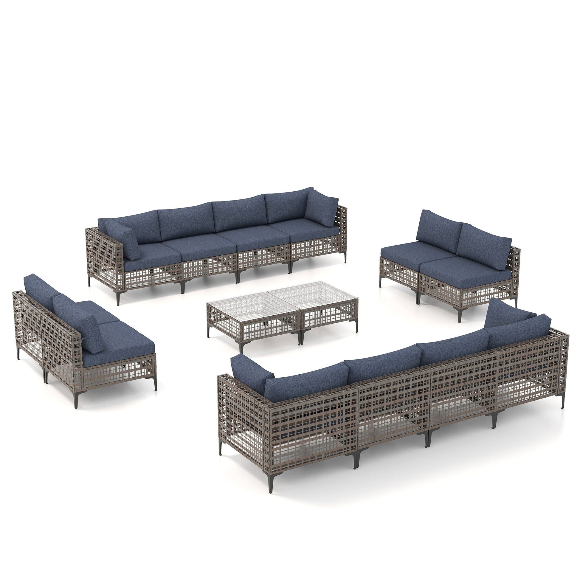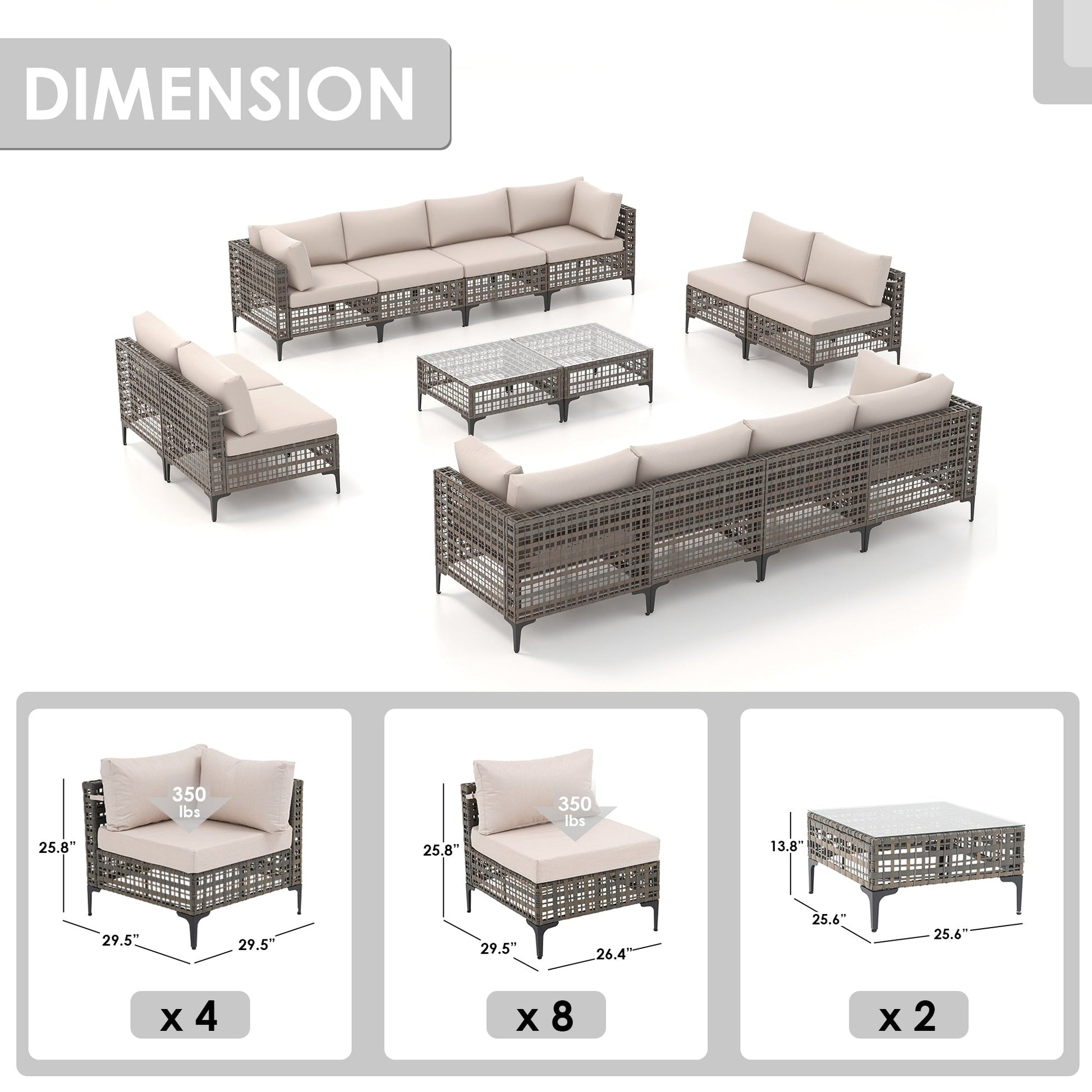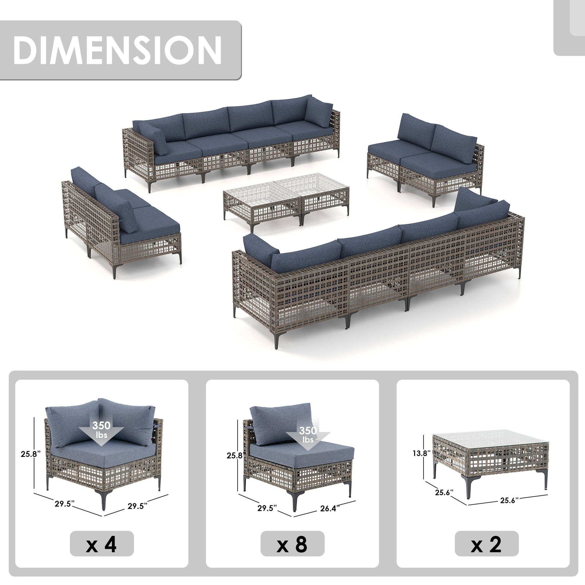 Glass coffee table: The coffee table is made of rattan base + tempered glass countertop, which combines beauty and practicality.