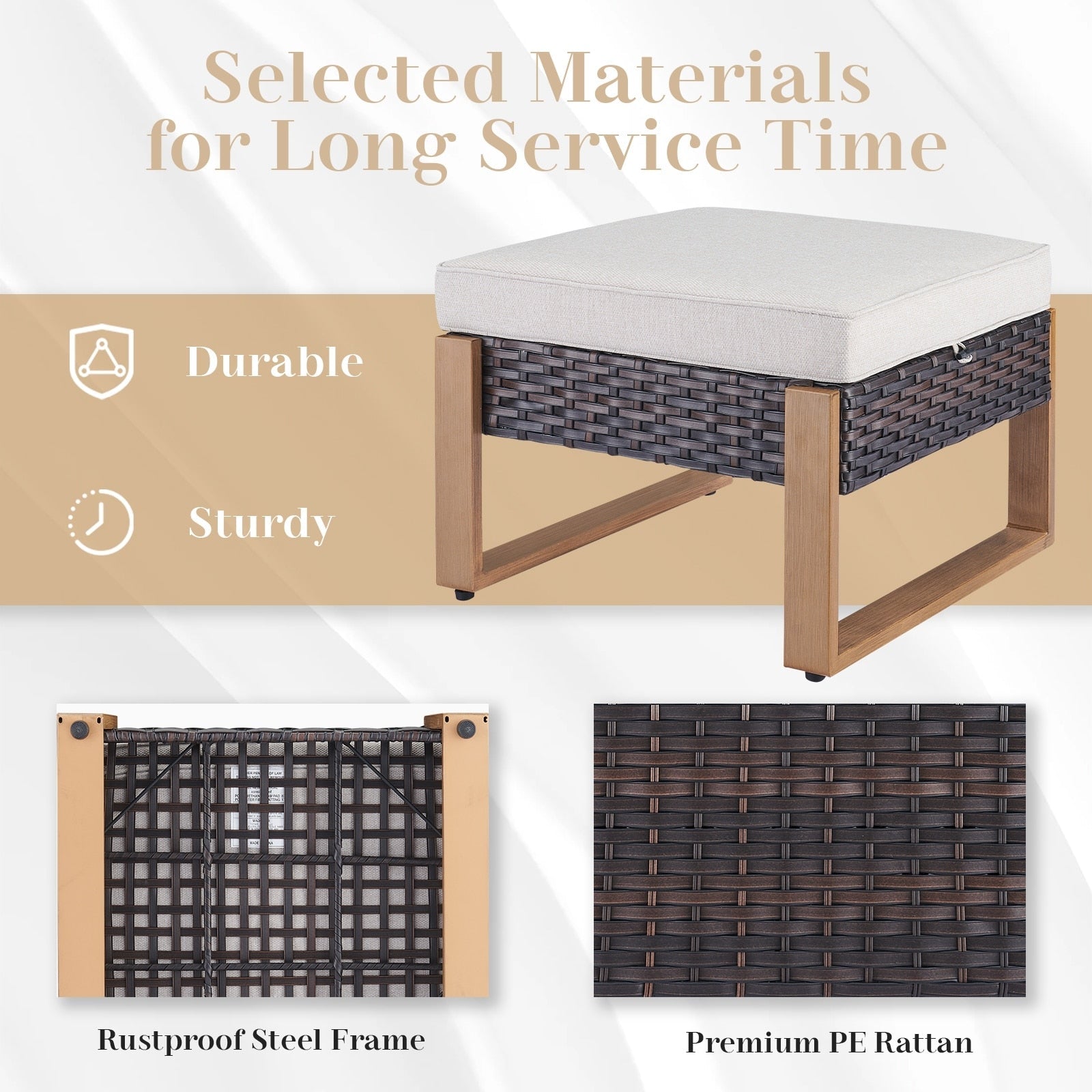 Consider creating a personal paradise right in your own backyard or corridor. The wicker patio chair with cushions is so relaxing you'll never want to leave. A variety of attractive color schemes is sure to match your current patio furniture and home, creating a seamless transition between indoor and outdoor living. The comfortable, luxurious atmosphere, elegant romance, and thick sponge bag, give a person a strong visual effect and satisfaction. The backrest is full of wrapping that will make you feel very comfortable and can dispel your tiredness. All materials are weather-resistant and easy to clean. Upgrade your outdoor space with these cushioned deep-seating lounge chairs for your next party or gathering.