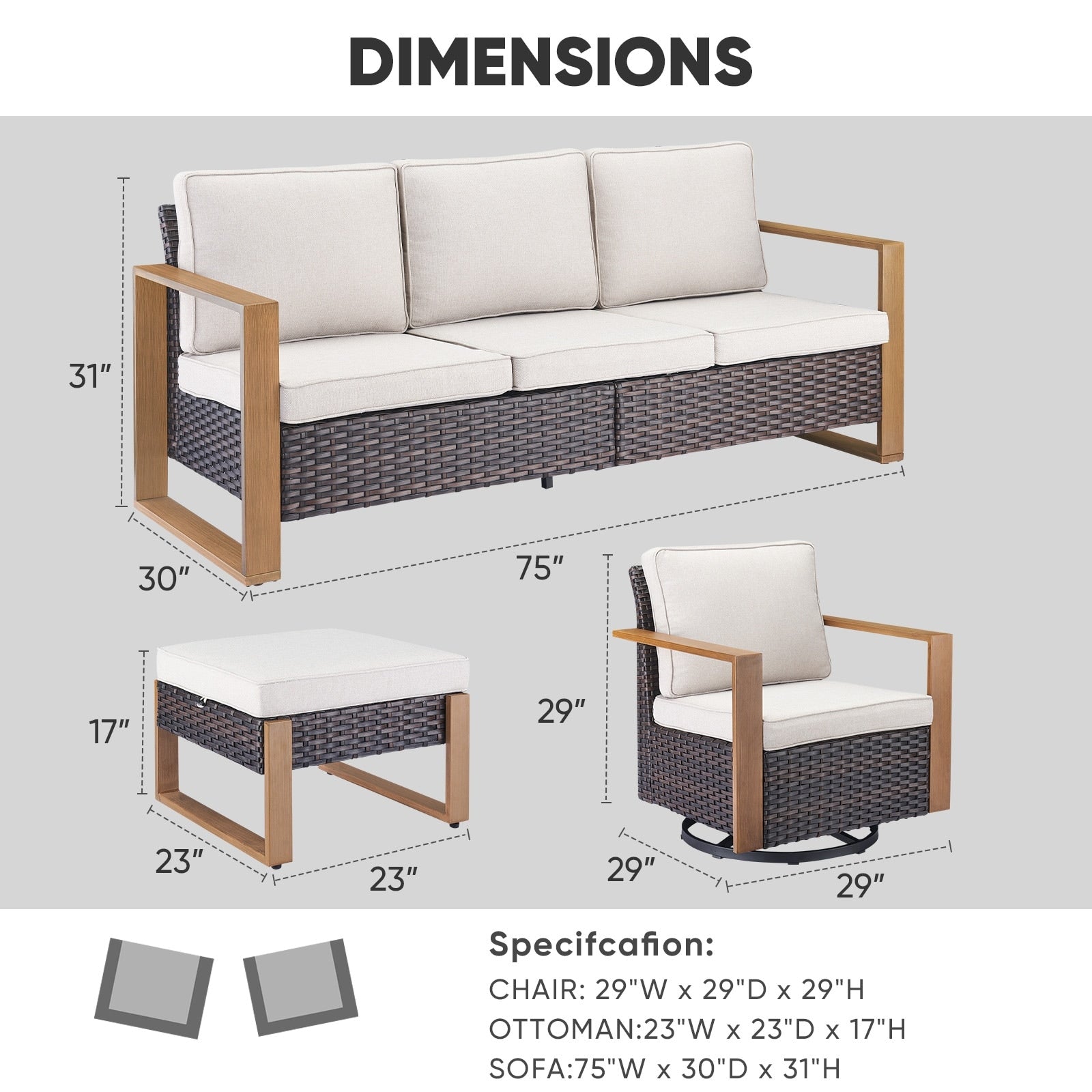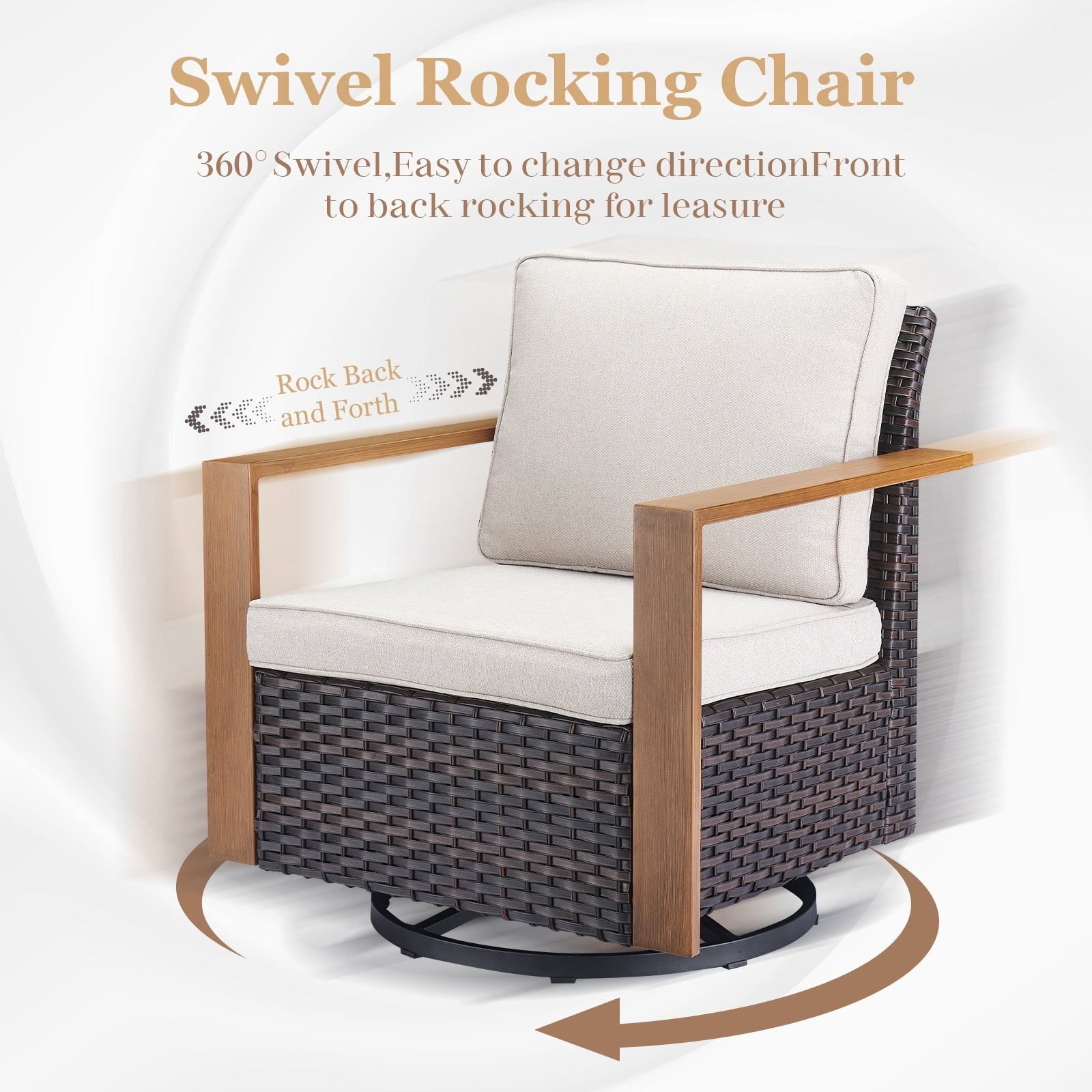 Outdoor Sectional Sofa with Swivel Rocking Chairs - Brown