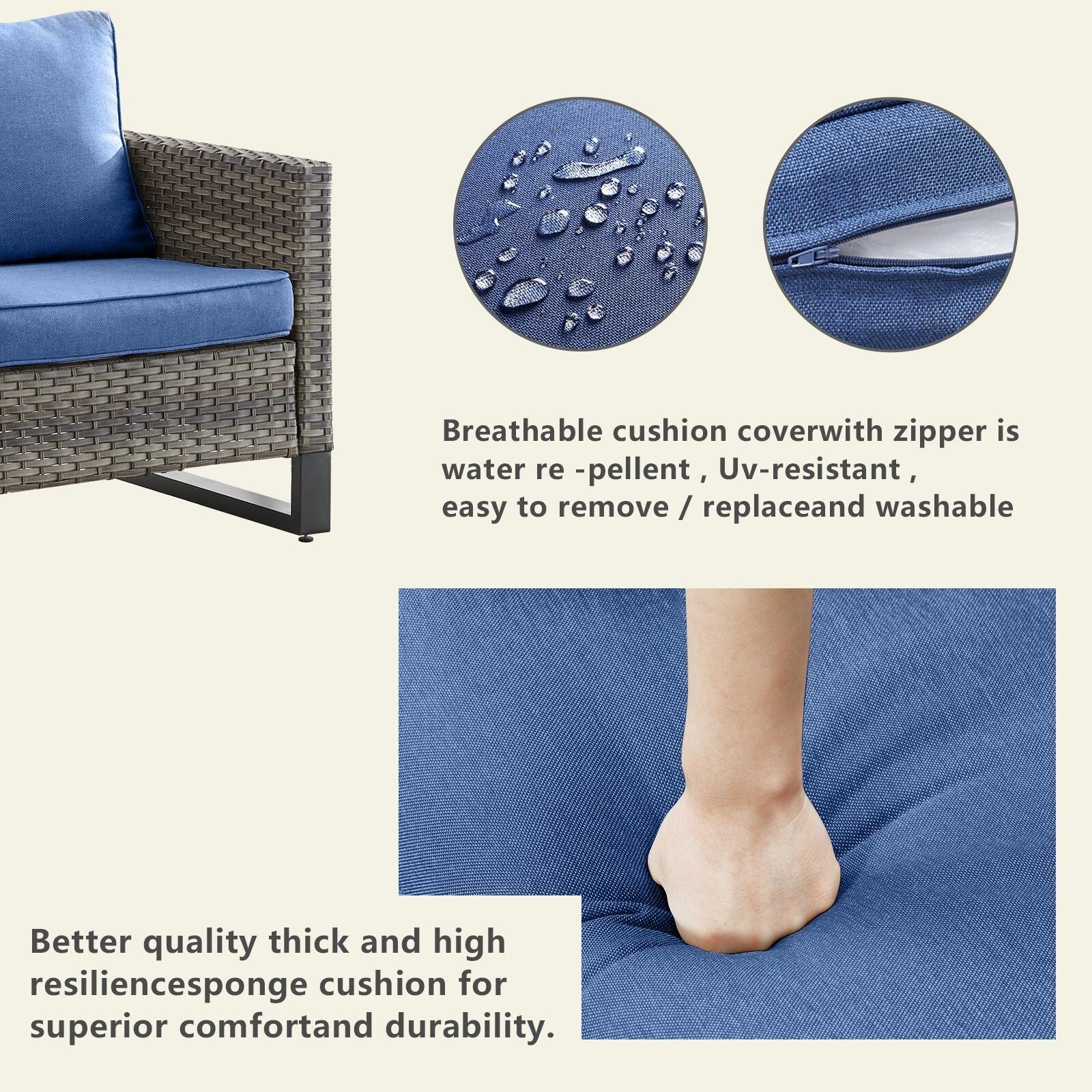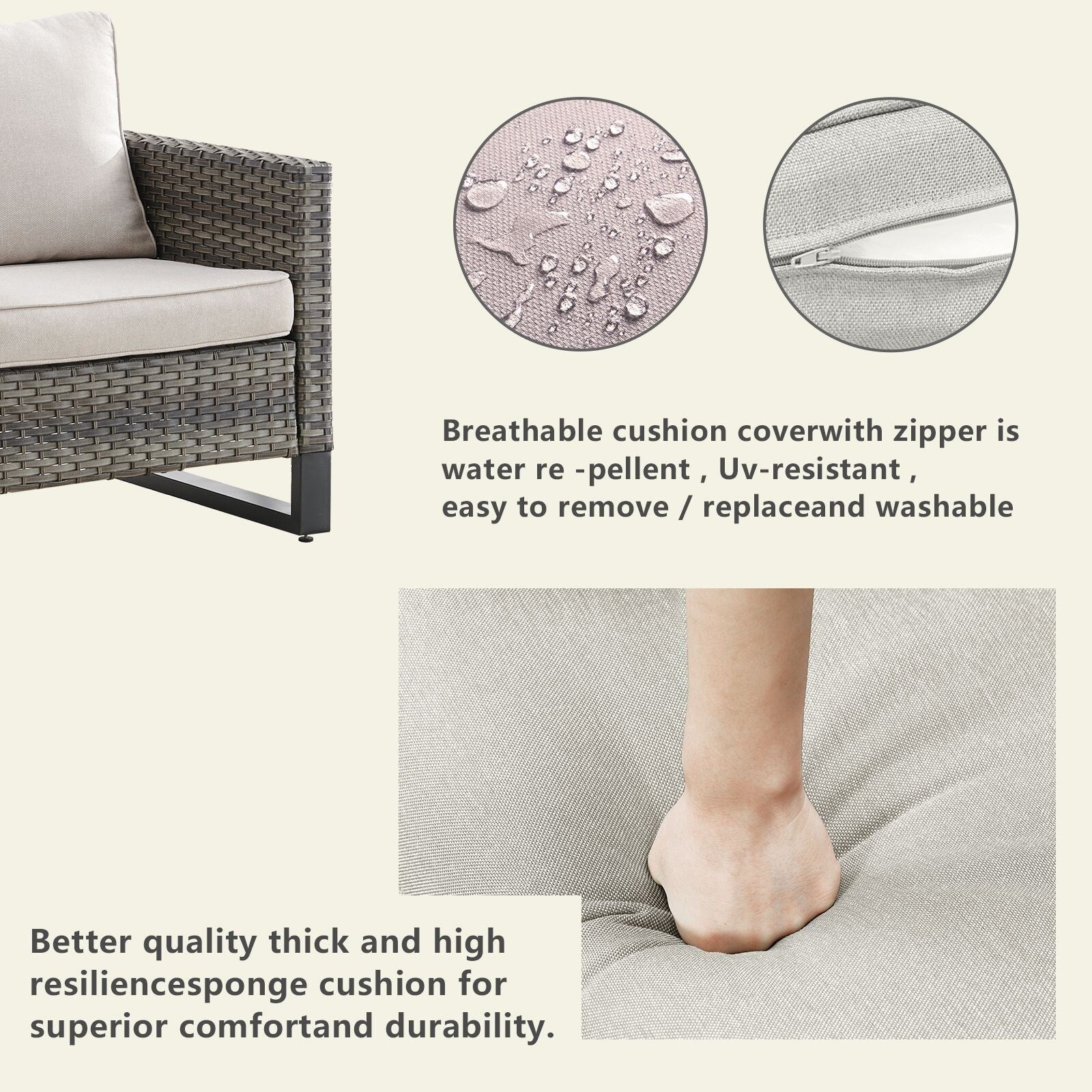 - Weather Resistant Durable: Hand woven UV resistant PE wicker rattan designed for all weather resistant and wear resistant. Coated steel frame ensures strong support and durability. Cushion covers made of UV-resistant,wear-resistant and good ventilation yarn dyed woven fabric,no color fading for long time.Fi