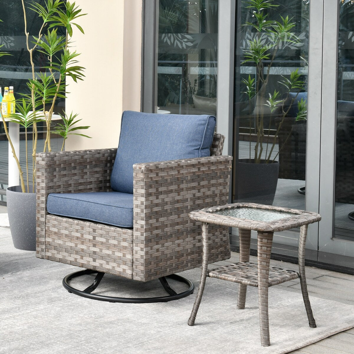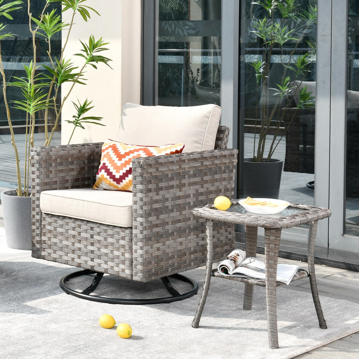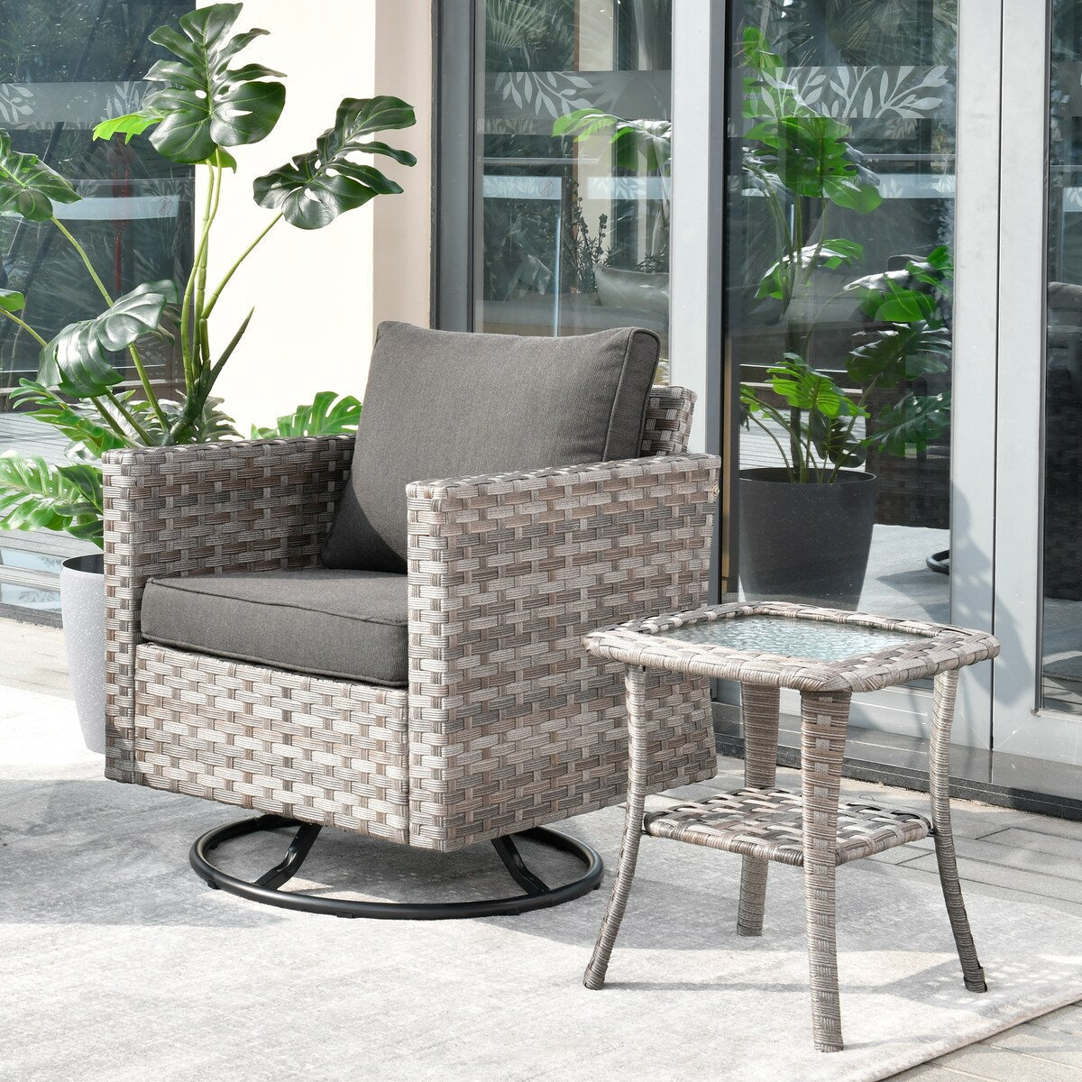 OVIOS 2-piece Swivel Rocking Wicker Chair Side Table Conversation Set
