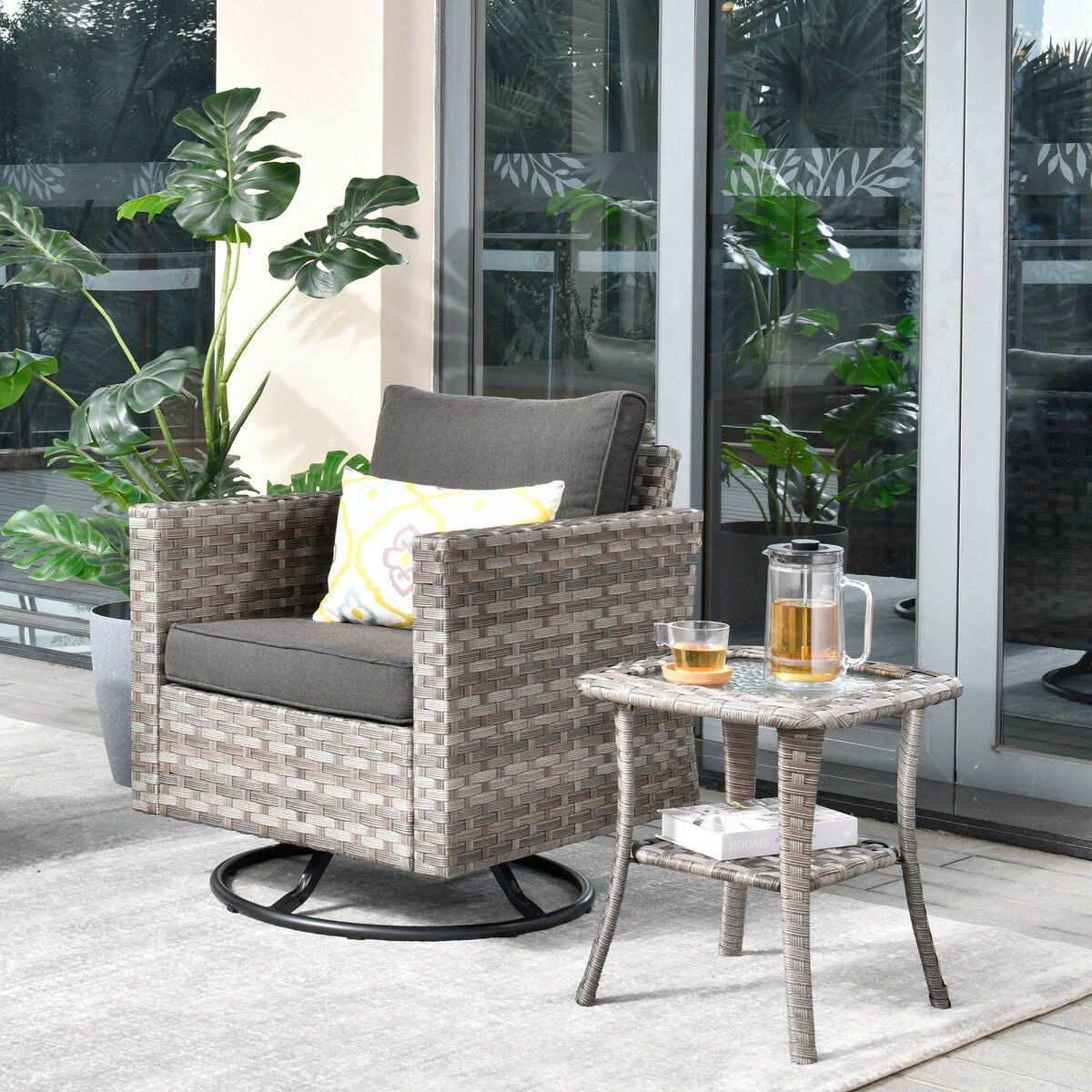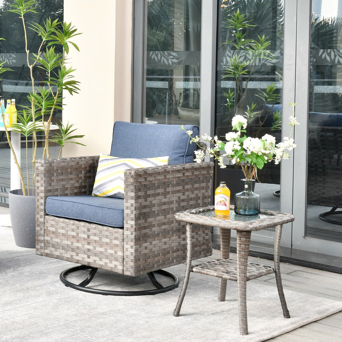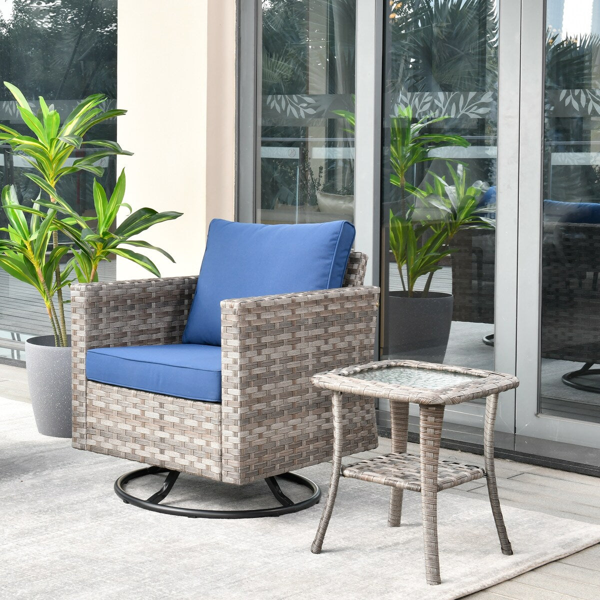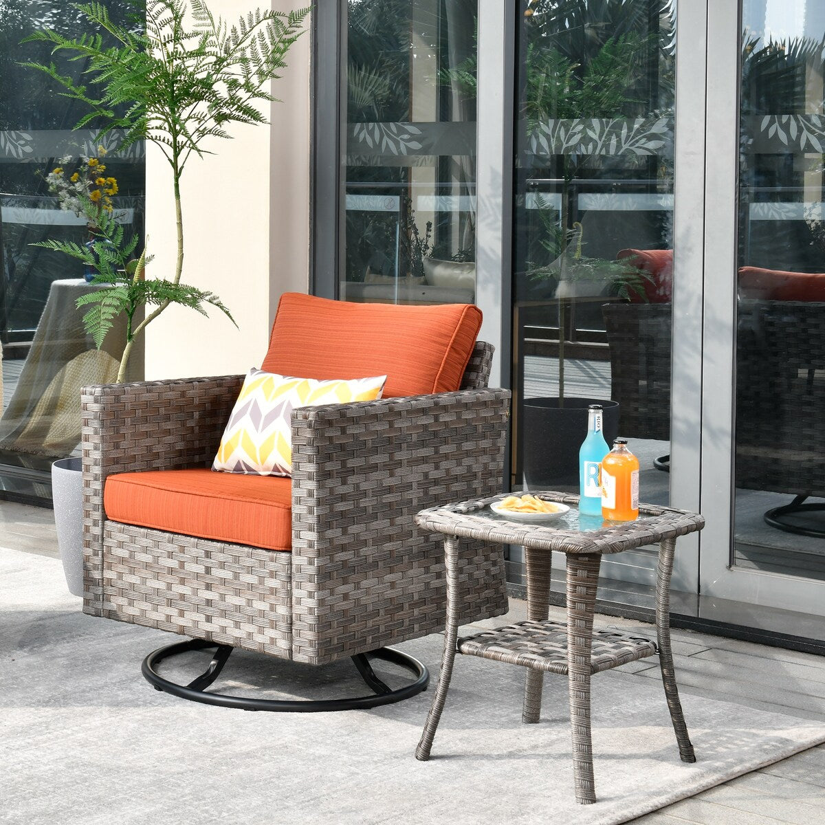 OVIOS 2-piece Swivel Rocking Wicker Chair Side Table Conversation Set